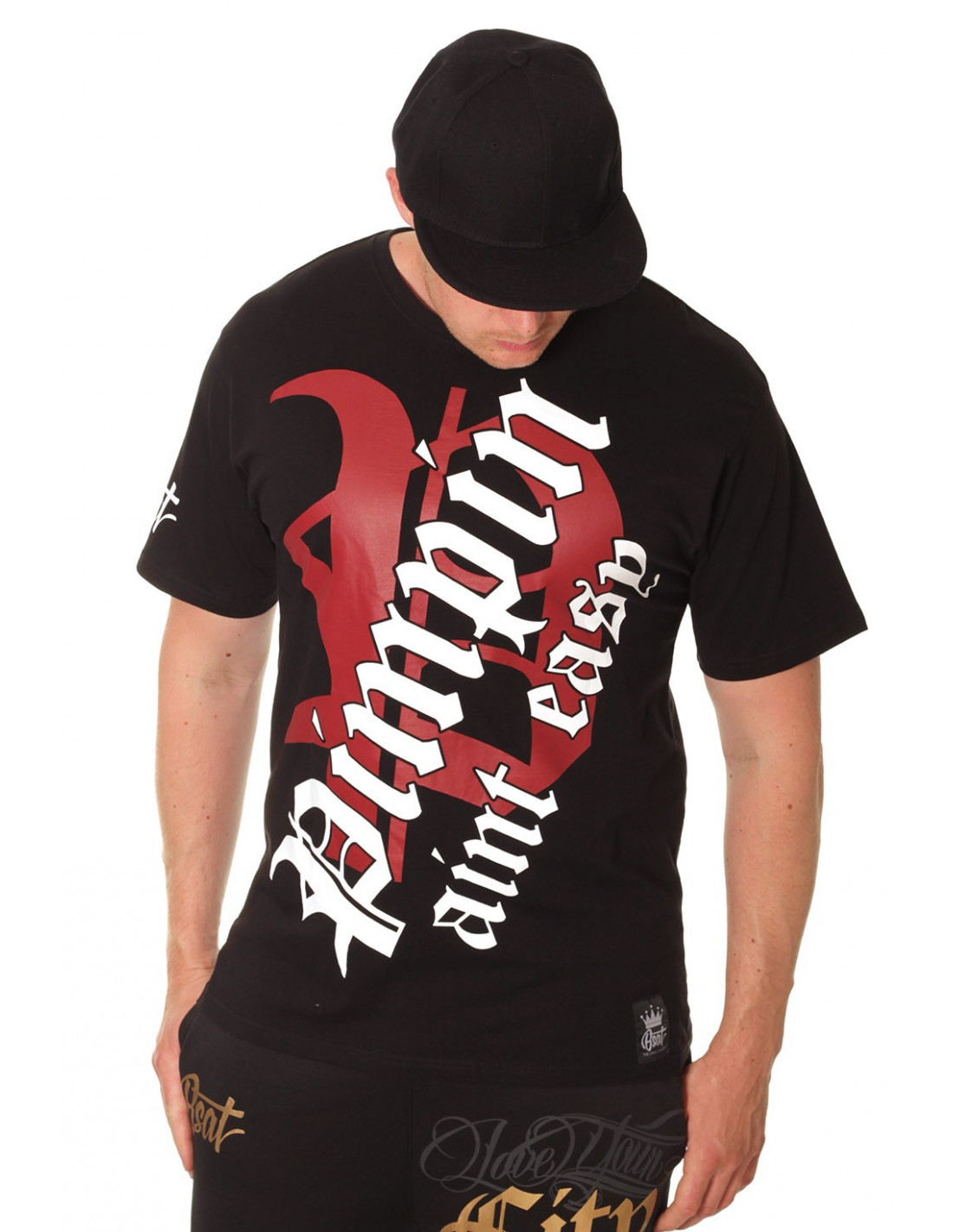 Pimpin ain't easy' T-Shirten er fra BSAT's Compton linje. Udtrykket er skrevet med kunstnerisk stærk skrift på forsiden. Det stammer fra en af hiphoppens helt store rappere, nemlig amerikaneren Ice-T (1987). Ryggen er dekoreret med brandlogo og tallet 99. 99 leder tankerne hen på kunstneren JAY Z og 3.Single fra The Black Album, som hedder '99Problems'. BSAT og brandets designer har gjort det igen. T-Shirten er et kongeprodukt.