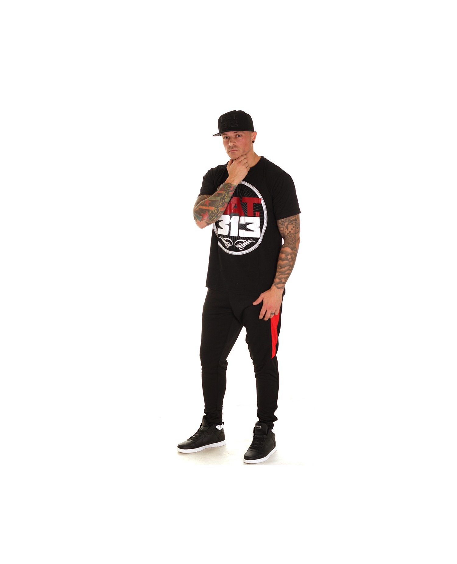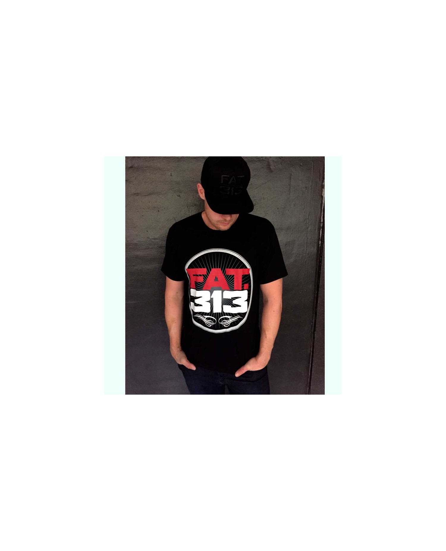 Den sorte Bomber Excellence T-Shirt har et stort rød og hvid branlogo print i et abstrakt stribet race univers. Kraft og styrke er på spil. Henover ryggen fremhæves styrken med et stort hvidt Bomberprint oven over brandnavnet. Et lille broderet tone in tone brandlogo mærker T-Shirten på forsiden. FAT313 er et premium Streetwear Fashion Brand med stærke rødder i det urbane storby liv og med sit helt eget udtryk: FAT313 spænder fra designs med sværvægtstunge brandlogo broderier over afdæmpede designs med hundebrand patches til store broderede FAT313 hunde.