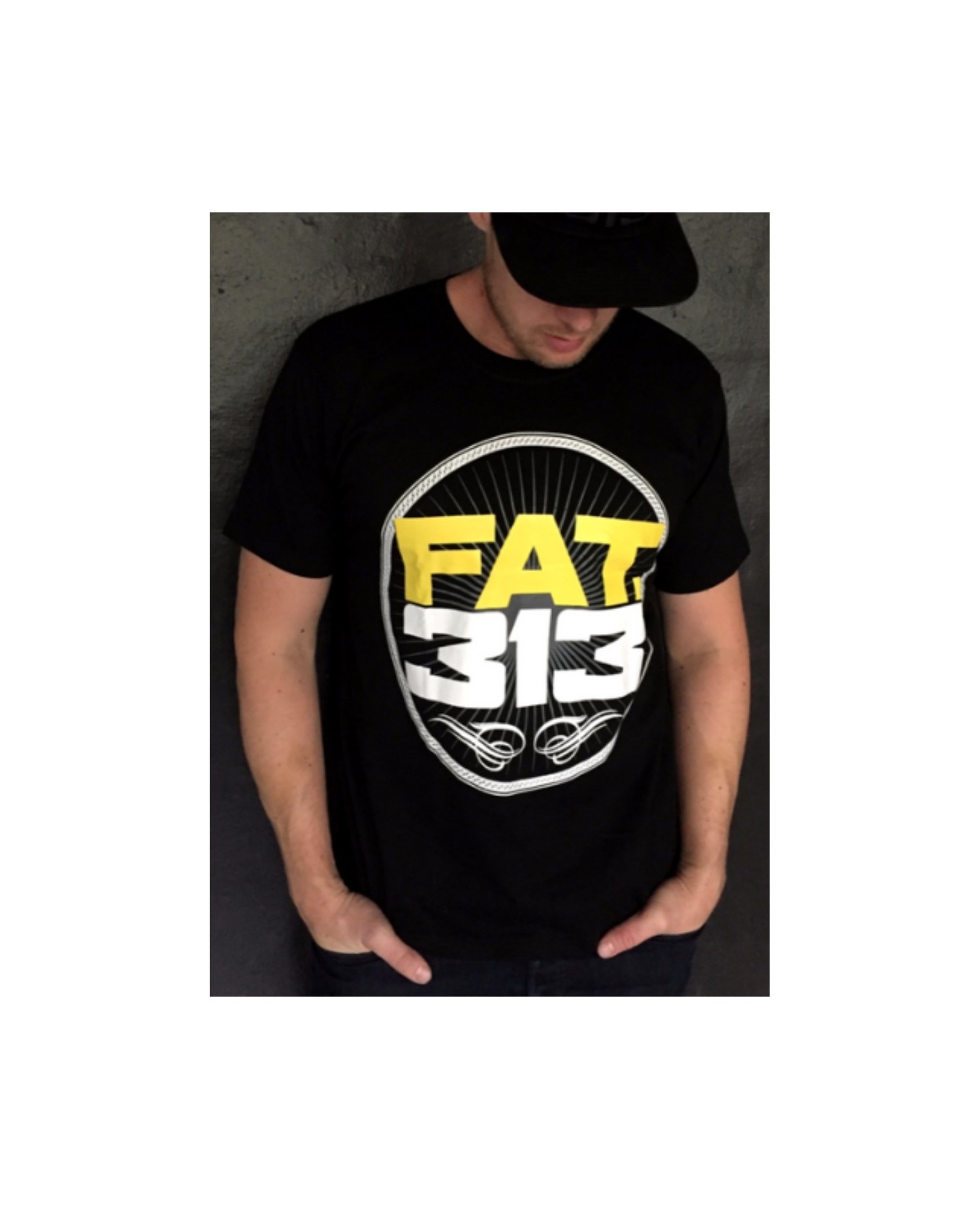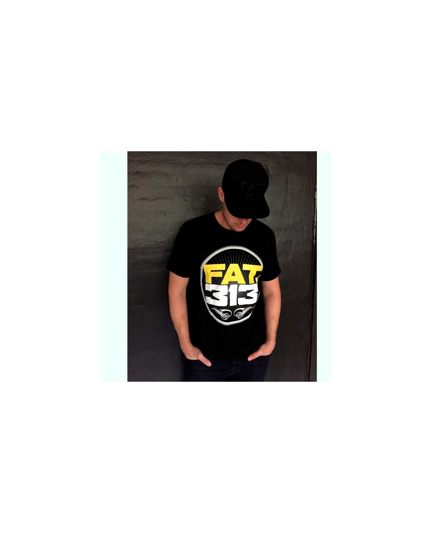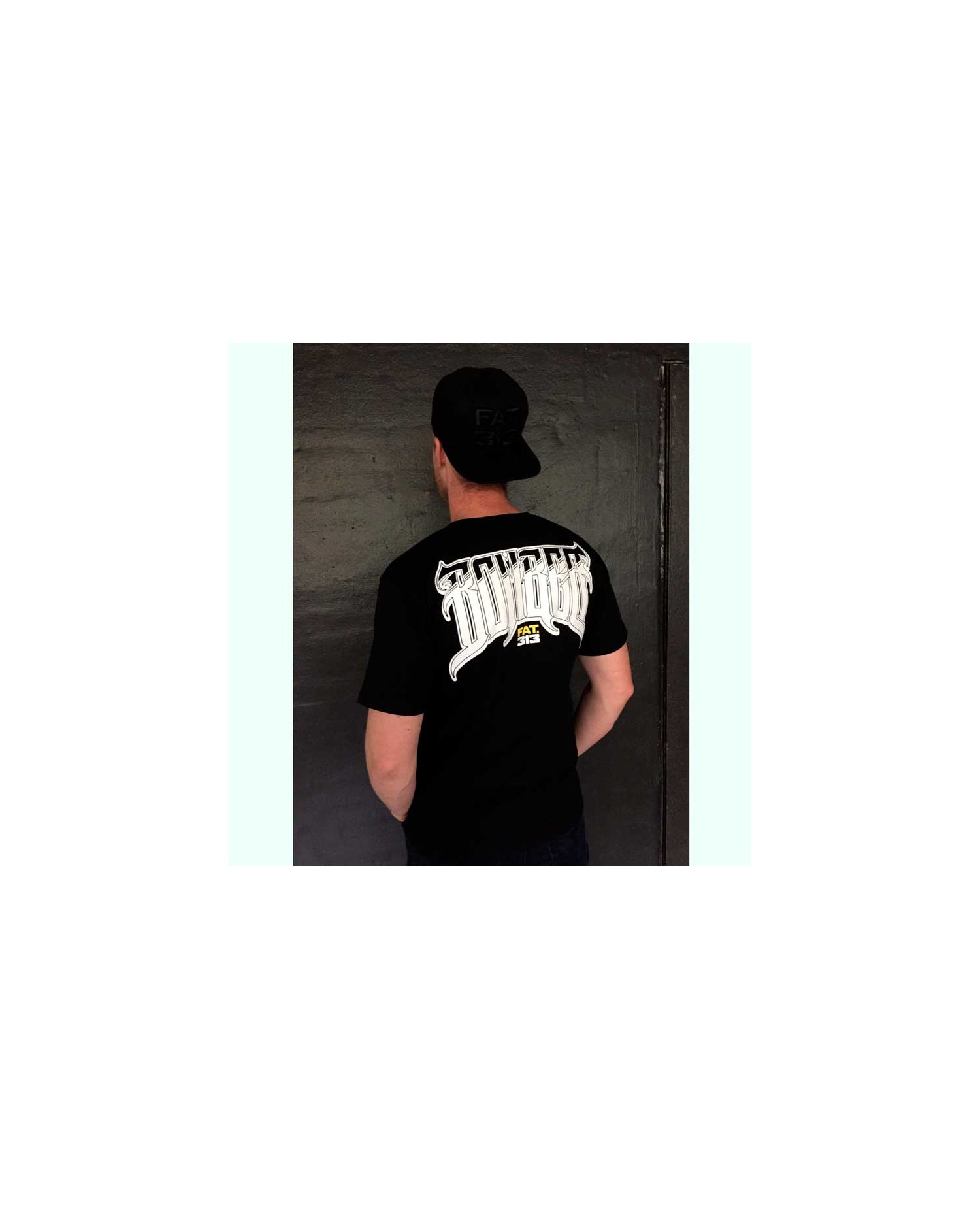 Den sorte Bomber Excellence T-Shirt har et stort gult og hvid branlogo print i et abstrakt stribet race univers. Kraft og styrke er på spil. Henover ryggen fremhæves styrken med et stort hvidt Bomberprint oven over brandnavnet. Et lille broderet tone in tone brandlogo mærker T-Shirten på forsiden. FAT313 er et premium Streetwear Fashion Brand med stærke rødder i det urbane storby liv og med sit helt eget udtryk: FAT313 spænder fra designs med sværvægtstunge brandlogo broderier over afdæmpede designs med hundebrand patches til store broderede FAT313 hunde.