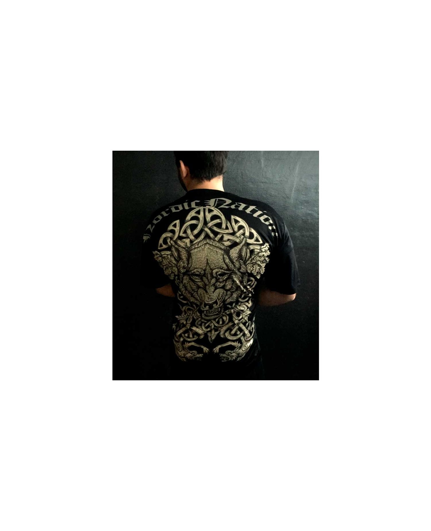 Wow. Den flotteste håndtegnede ulv i et keltisk formsprog dekorerer Nordic Worlds ryggen. Designet står knivskarpt og stærkt. På brystet er stitchet et smukt tone-in-tone sort brandlogo. Den sorte T-Shirt med ulven i en varm efterårsgul farve er rå styrke og skønhed. Nordic Worlds er et tøjmærke, som rykker den maskuline urkraft fra vikingetiden ind i moderne trendy designs. Brandet anvender også keltiske symboler og elementer fra Nordisk Mytologi i deres designs. Nordic Worlds er maskulin, stærk og sporty og T-Shirten er fremstillet i et cool og ultralet polyester materiale, som minder meget om det, de fleste kender fra sportswear.