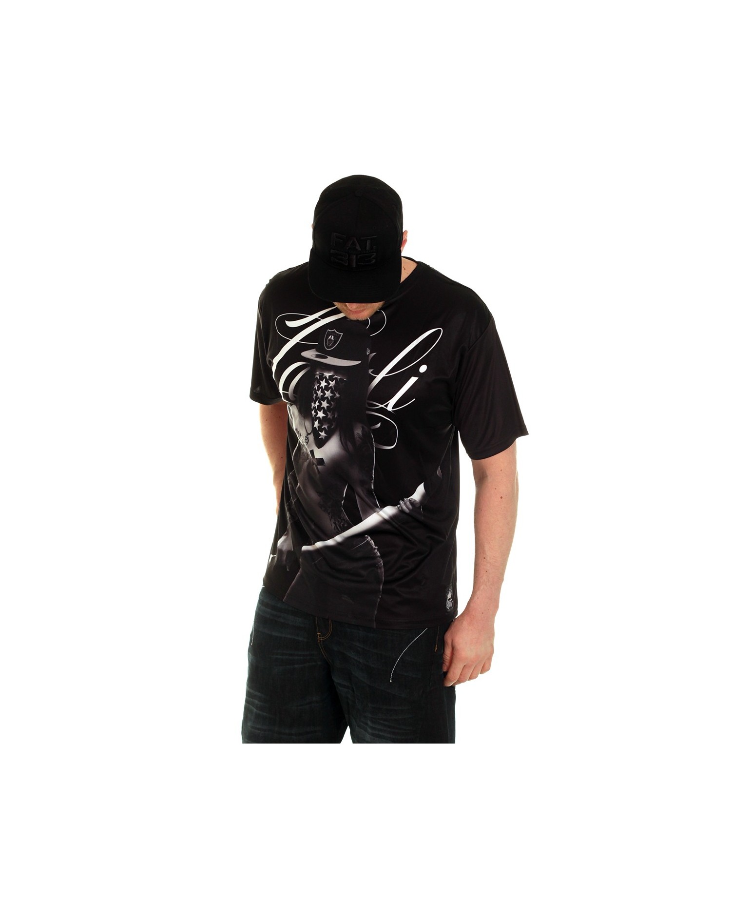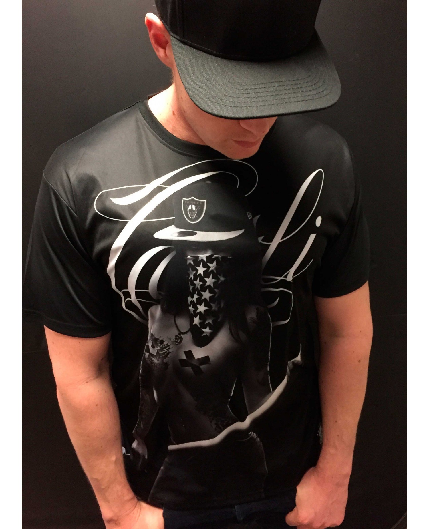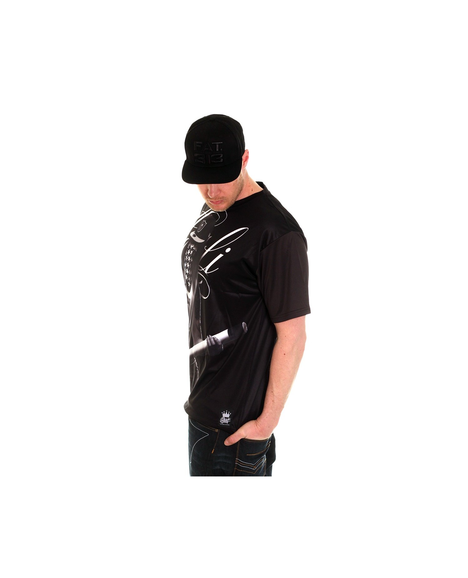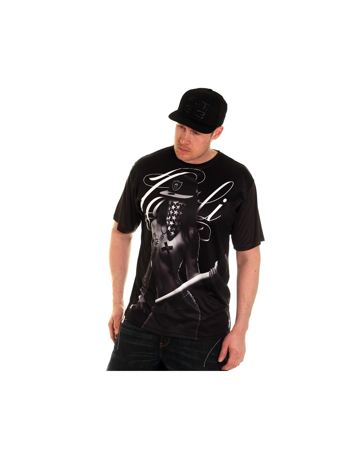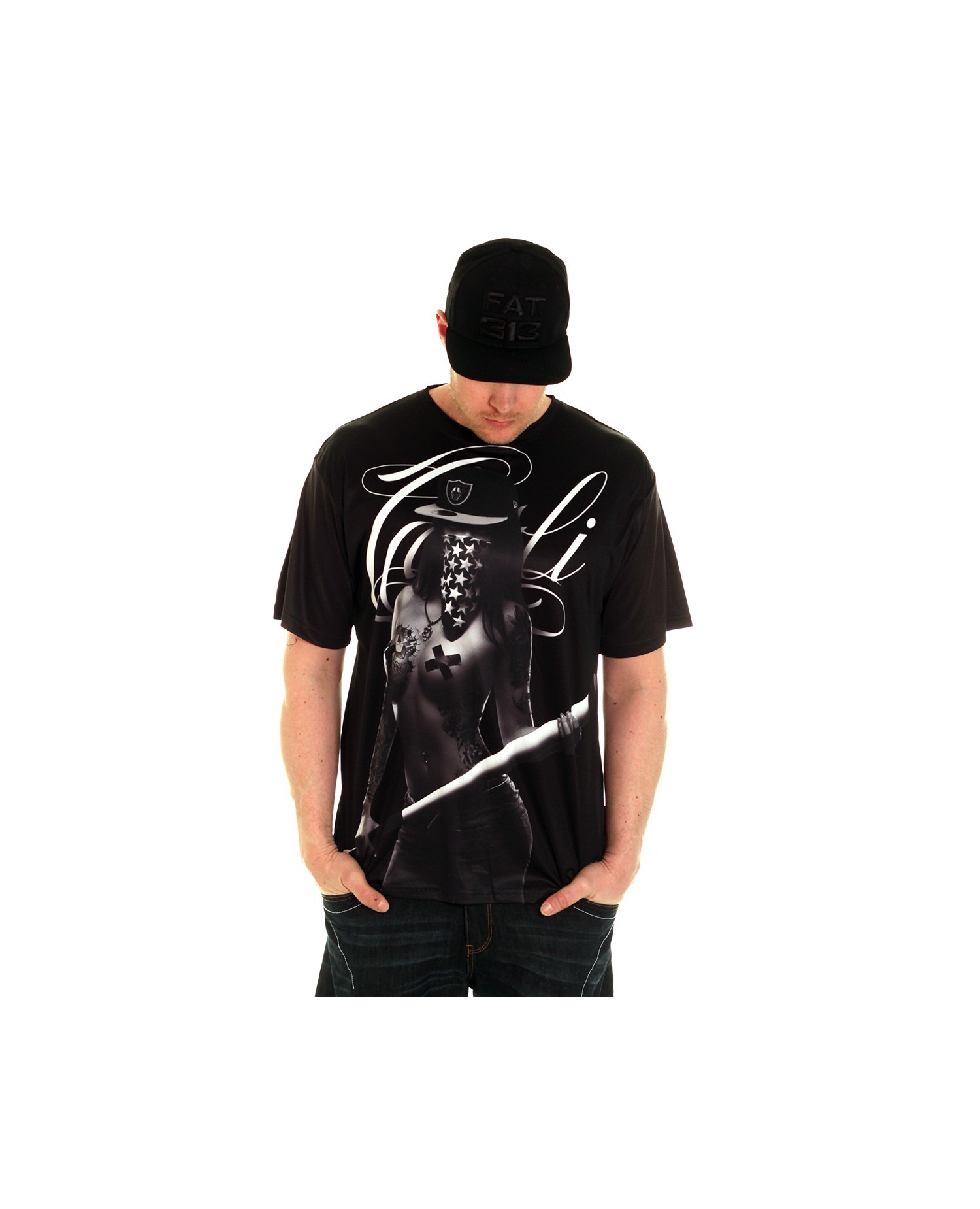 TAK. Vi bøjer os for et nyt mesterværk fra BSAT's designteam. Baseball Chica T-Shirten er fra brandets LA Onda linje, som er kendetegnet ved mange vilde håndtegnede designs. BSAT's La Onda linje har dybe rødder i Chicano kulturen, hvis favoritsymboler er Chicas, skeletter og våben. Og dette Chica Design er vanvittig flot og råt. Placeret oven på håndskreven Cali i hvidt står Chicaen i et dunkelt skær med baseball bat , øjnene tildækket af en sort Cap, munden dækket af en bandana og tatoos på den smukke krop. Chicaen fylder hele forsiden. Bag på er skrevet Cali Swag med kunstnerisk hvid skrift. T-Shirten er produceret i BSAT's luftige, sporty, bløde og meget lette polyester materiale, som de fleste kender fra sportswear. Hvem siger HipHop kunst kun skal høres eller f.eks ses på Walls?. Tag det på, gå med det. Det er et sandt mesterværk. Pasformen er baggy.