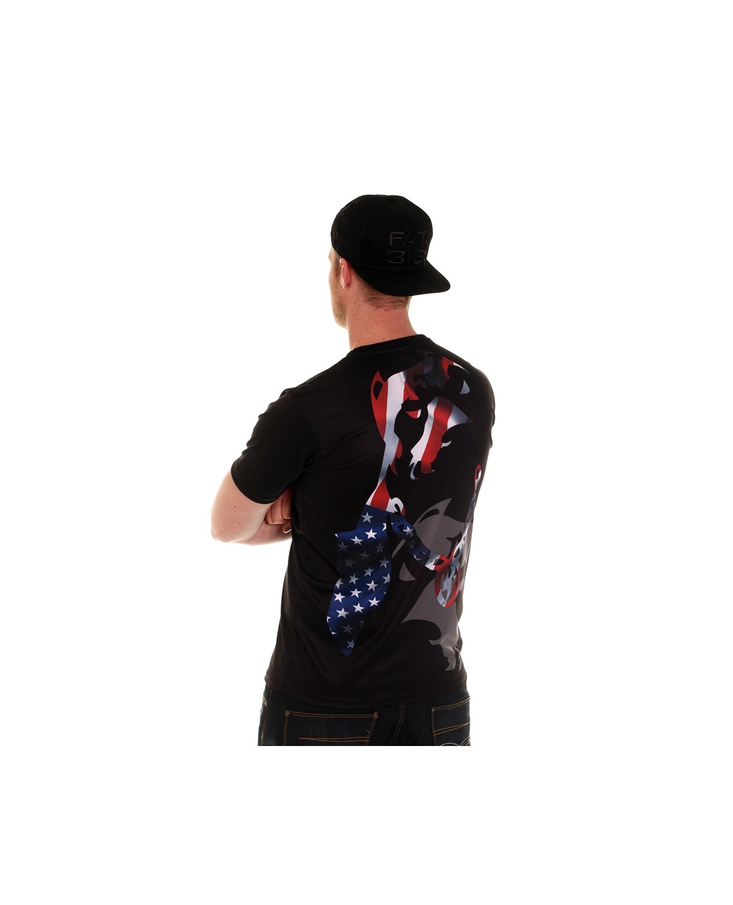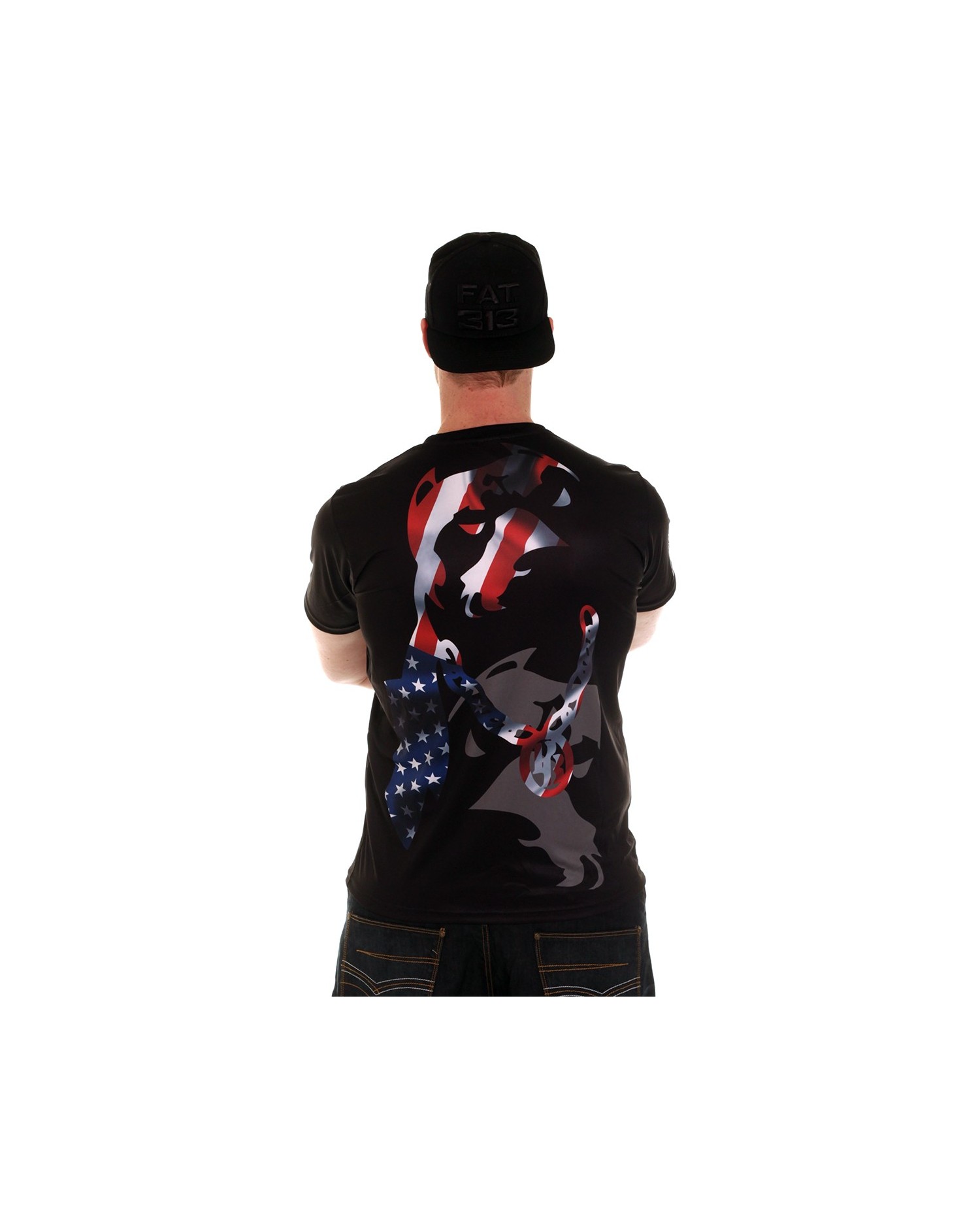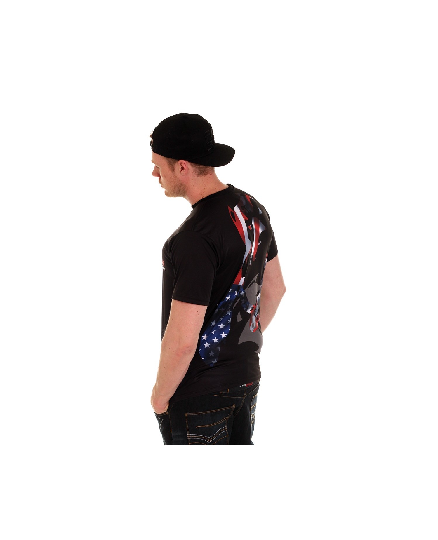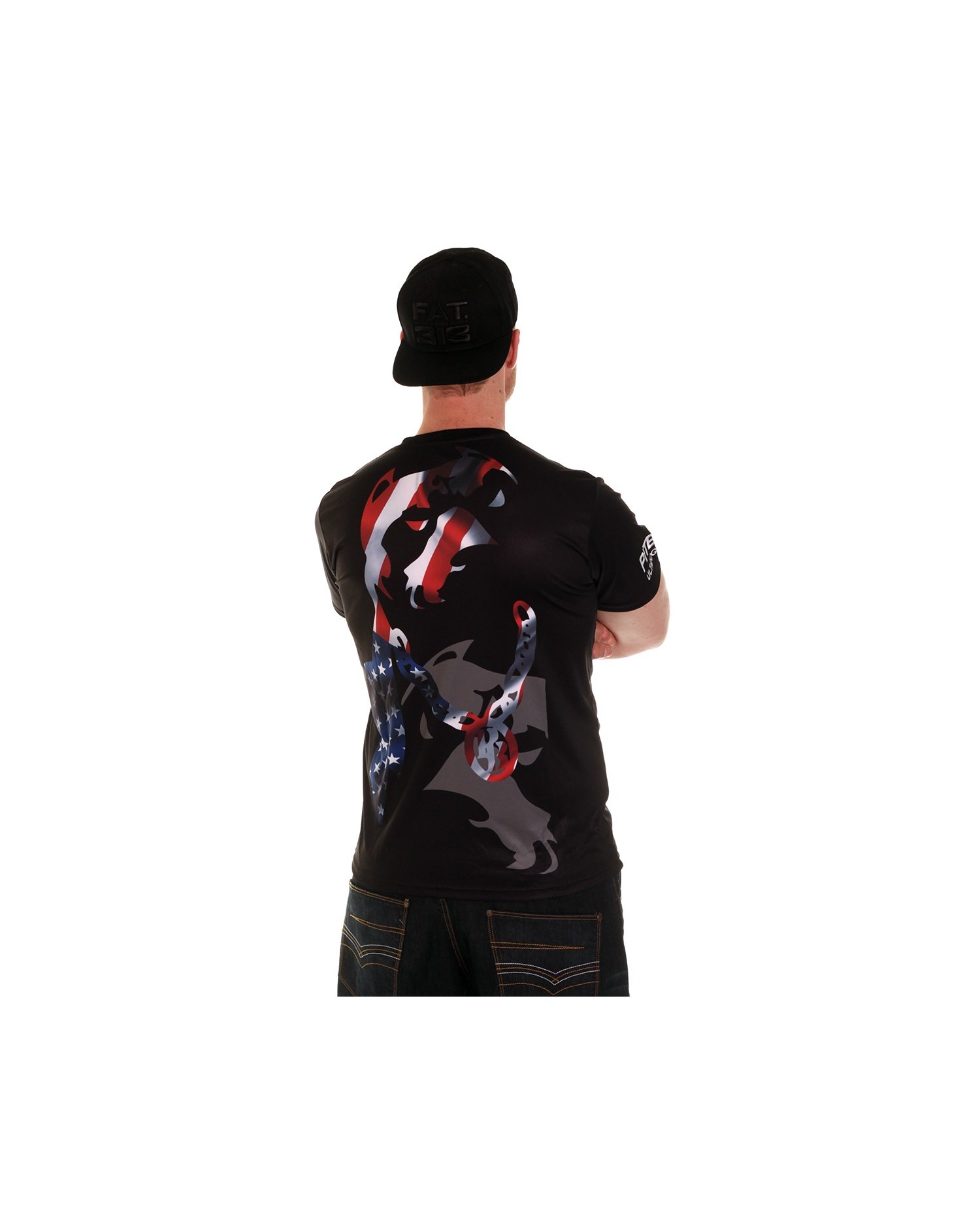 Bum! Så udsender Rebelbrandet Pitbos5.515 nye T-Shirts. Det amerikanske flag smelter sammen med brandlogo hunden og troner på hele ryggen. Det er genialt fundet på. Ud over det store rygdesign er brystet og højre ærme dekoreret med brandlogo. US Pitbos T-Shirten indgår i en flag serie. Alle flagdesigns er stærke og iøjnefaldende og vi glæder os over at præsentere dem for jer. US Pitbos T-Shirten er lavet af et luftigt, blødt og ultralet polyester materiale, som minder meget om det, de fleste kender fra sportswear. Pasformen er custom fit.