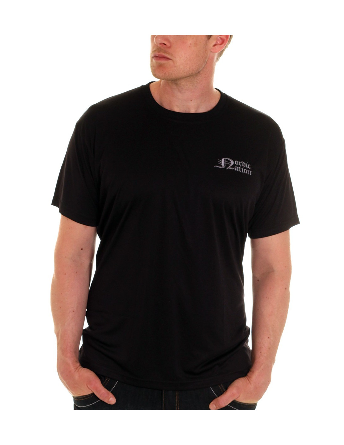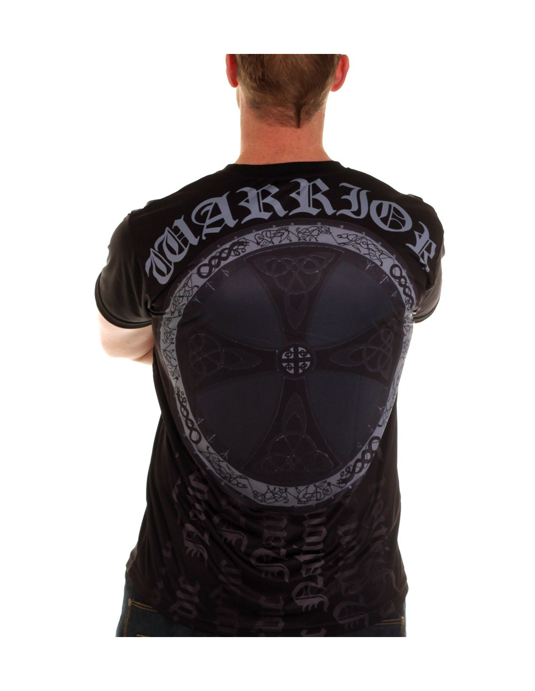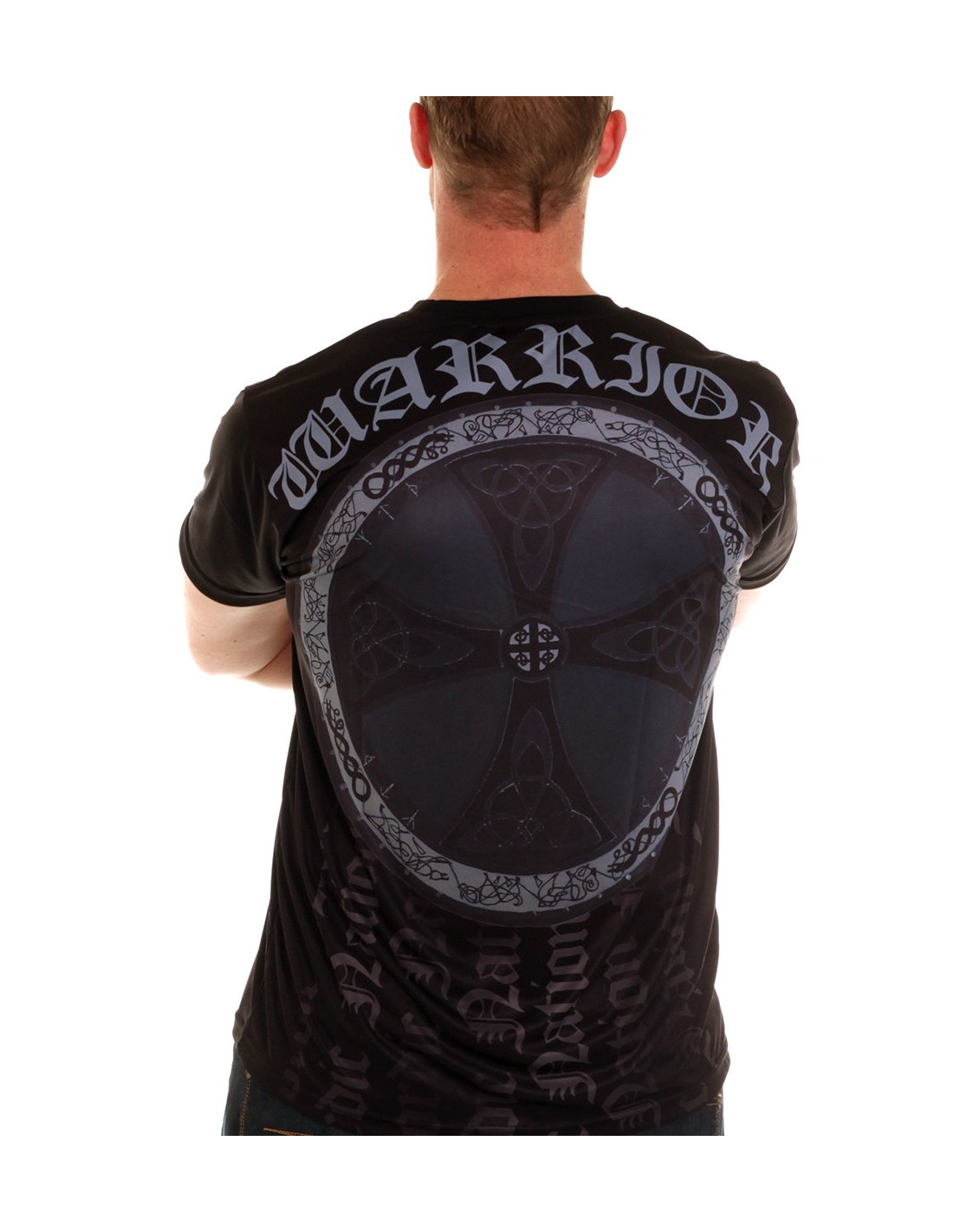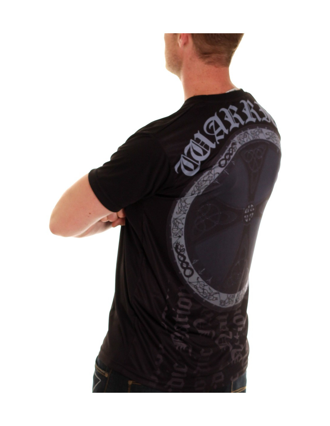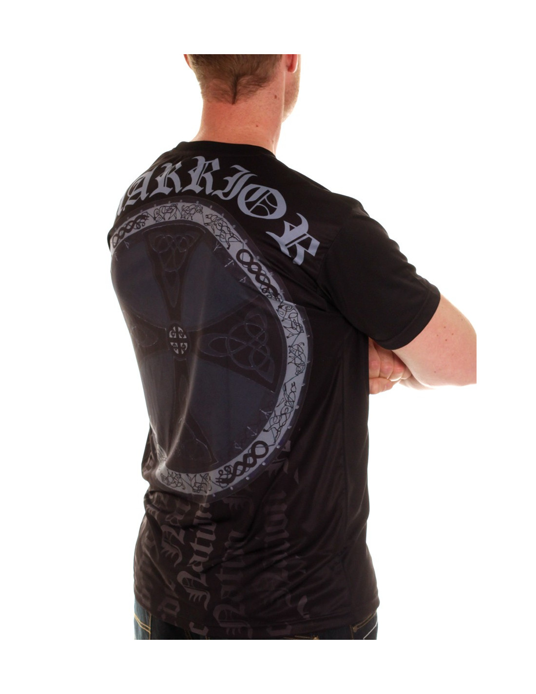 Warrior Shield designet er endnu et vildt fascinerende design fra tøjmærket Nordic Worlds. Vikinge Skjoldet troner på hele ryggen og har et bevidst slidt mønster i blålige og grå nuancer. På brystet er broderet et sort brandlogo. Designet spejler perfekt Brandets DNA. Nordic Worlds er nemlig et tøjmærke, som rykker den maskuline urkraft fra vikingetiden ind i moderne trendy designs. Brandet anvender ligeledes keltiske symboler og elementer fra Nordisk Mytologi i deres designs. Warrior Shield T-Shirten er maskulin, stærk og sporty. T-Shirten er fremstillet i et cool og ultralet polyester materiale, som minder meget om det, de fleste kender fra sportswear.