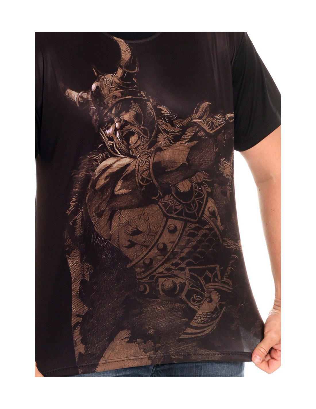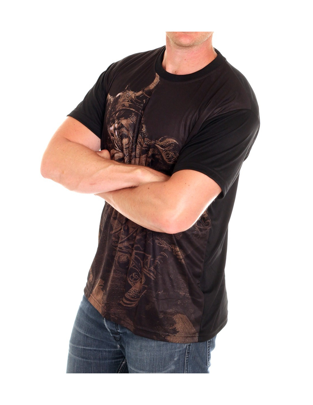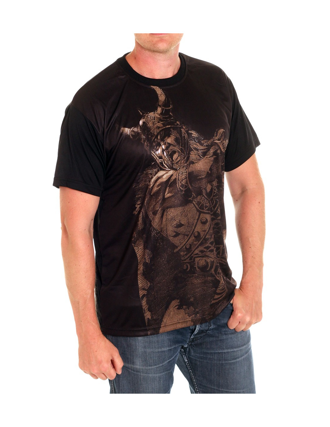 Viking Warrior T-Shirten fra Nordic Worlds har et stærkt brystdesign, inspireret af Vikingetiden: en muskuløs viking kriger fylder hele brystet, holdt i brandets karakteristiske afdæmpede farver. Designet spejler Brandets DNA. Nordic Worlds er nemlig et tøjmærke, som rykker den maskuline urkraft fra vikingetiden ind i moderne trendy designs. Viking Warrior T-Shirten er maskulin, stærk og sporty. Pasformen er customfit og den er fremstillet i et cool og ultralet polyester materiale, som minder meget om det, de fleste kender fra sportswear.