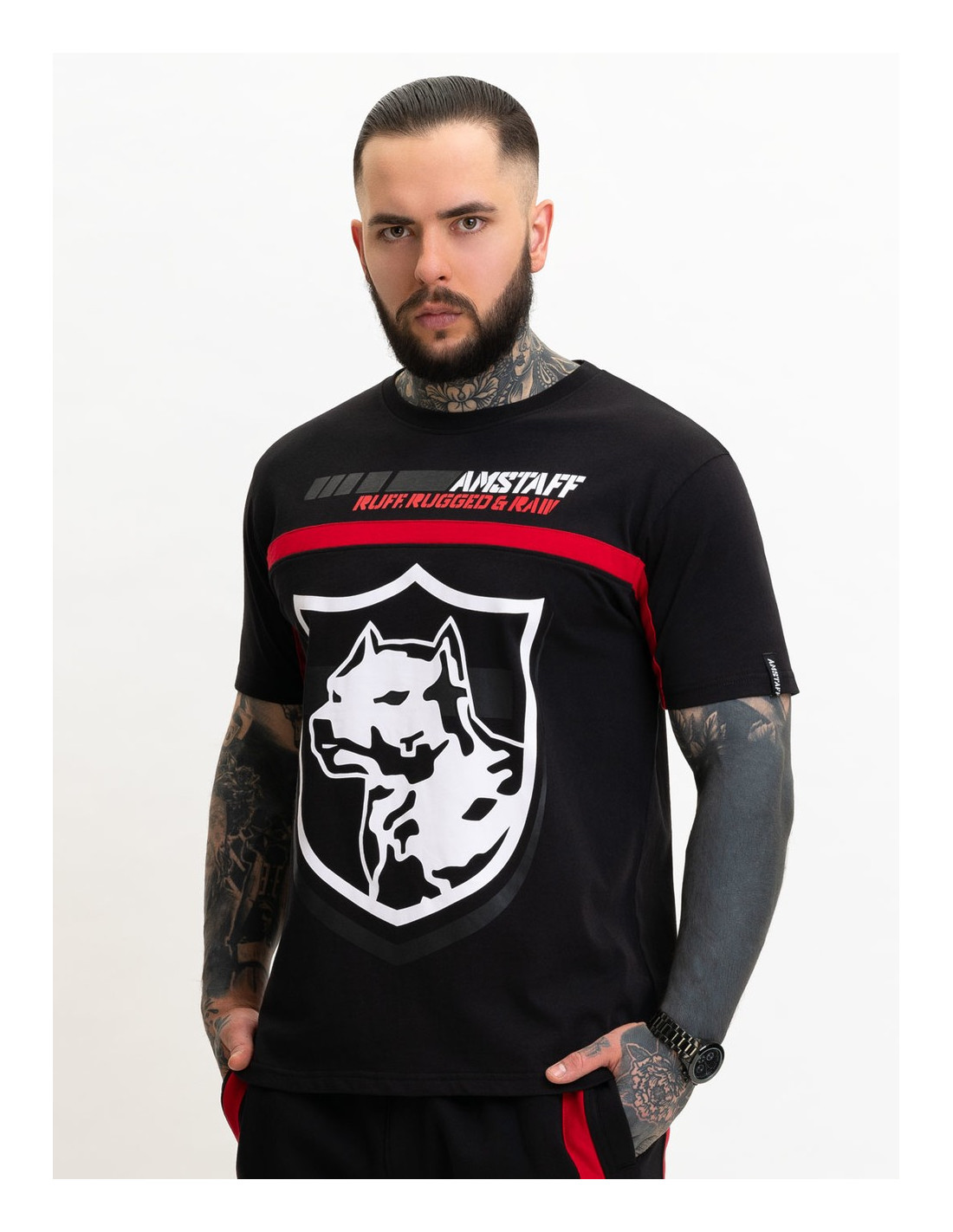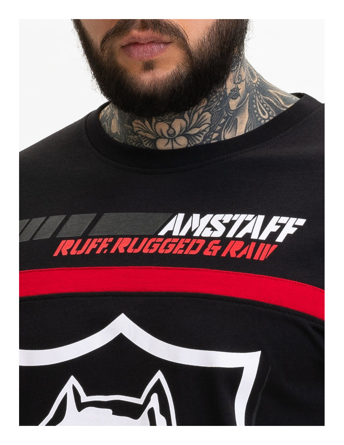 Ruff Rugged Raw T- Shirten er en sporty dog logo T-Shirt fra Amstaff Wear. Ruff Rugged Raw passer perfekt til T-Shirtens look. T-Shirten har en komfortabel pasform og er produceret i 100% bomuld.
