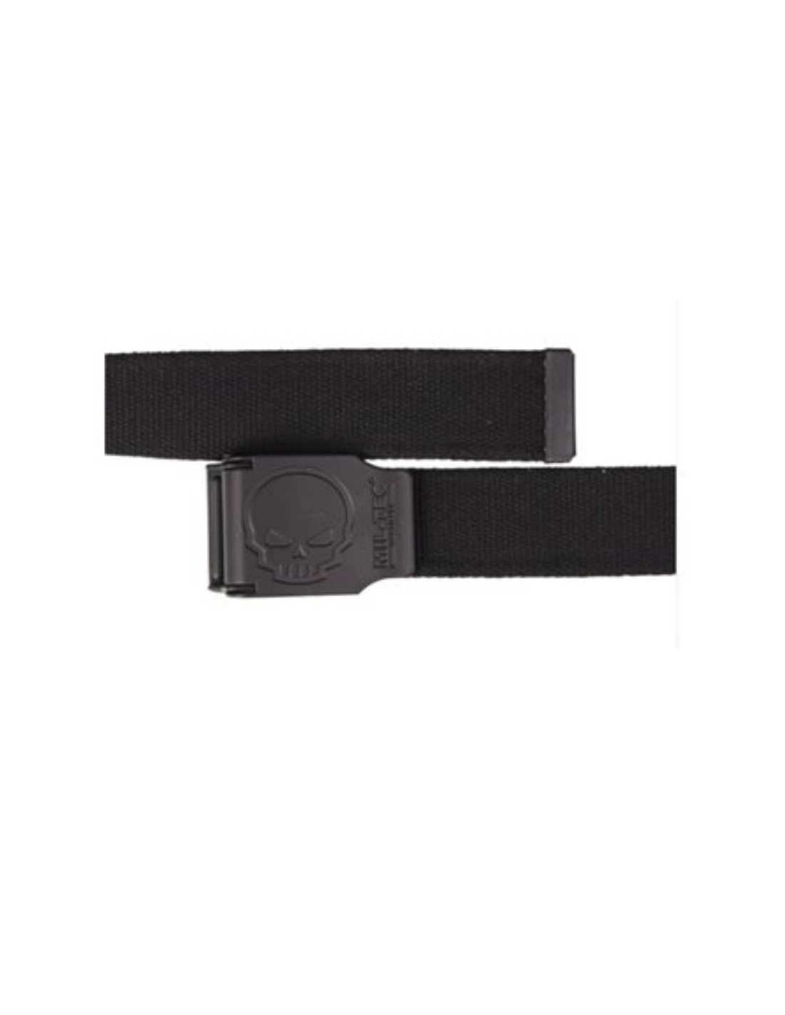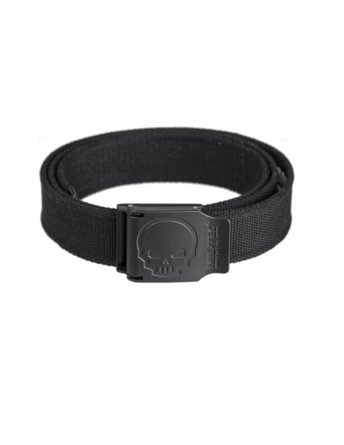 TechWear bomuldsbælte i sort med et skull afbildet på bæltespændet. Bæltet er 40 mm bred og 130cm lang.