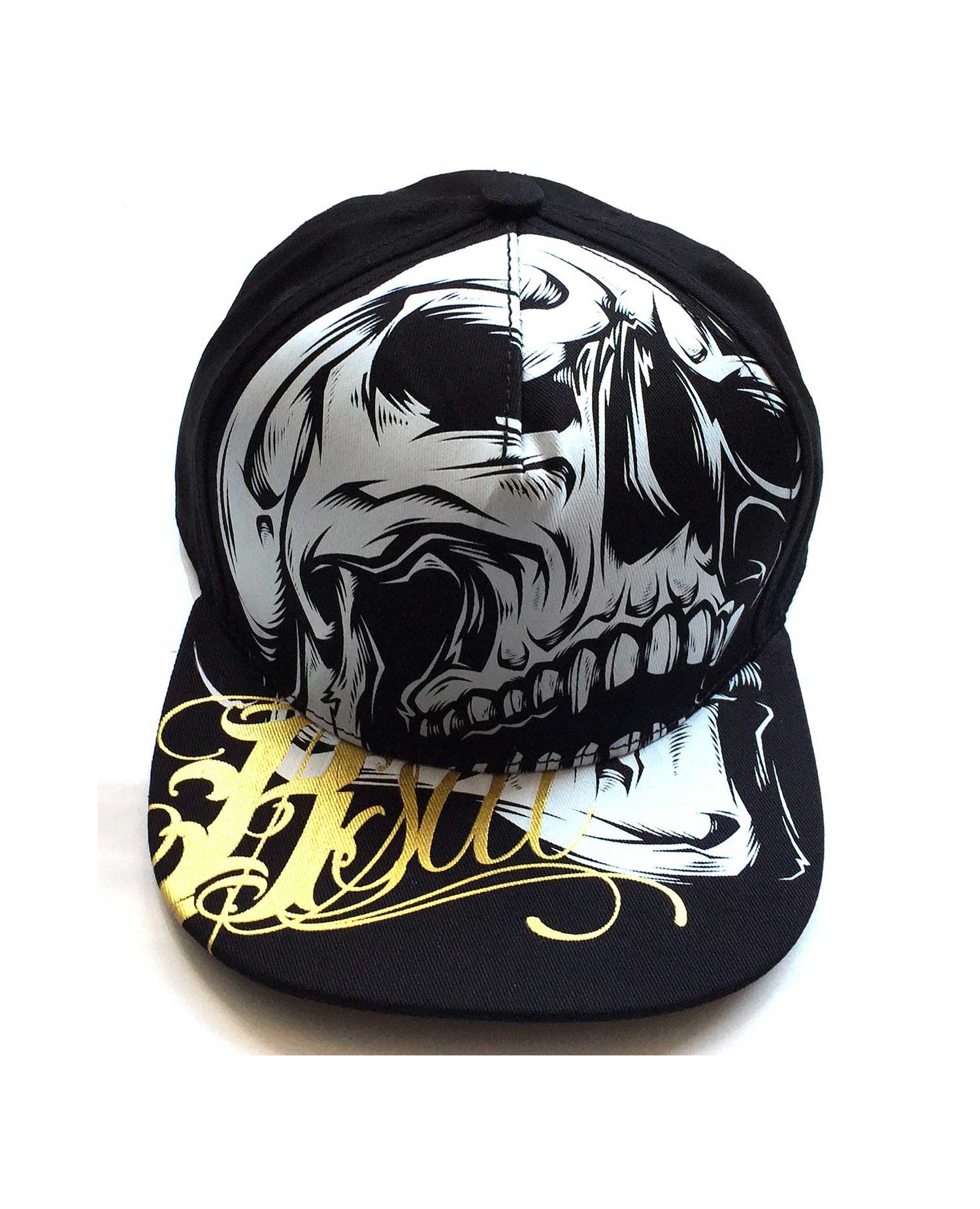 Den sorte Cap med det store agressive Skull er fra BSAT's La Onda linje. BSAT er et tøjbrand med stærke og solide rødder i HipHop Kulturen. Chicano Art Kulturen, Gangsta Rap og Bronx Hip Hoppen er brandets DNA. Det er BSAT - Blood Sweat and Tears. Big Skull designet er stort, det er stærkt, det er hiphop med kant. Vi er nede med det og designet har max streetattitude. Big Skull Cappen er one-size med justerbar snapback lukning.