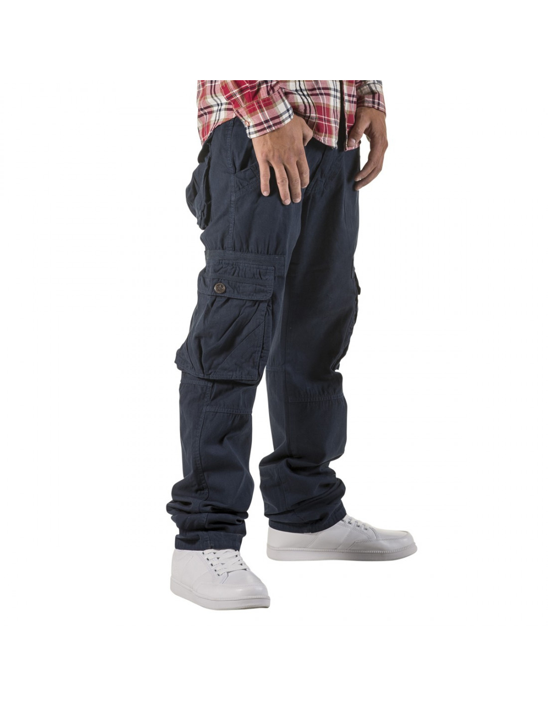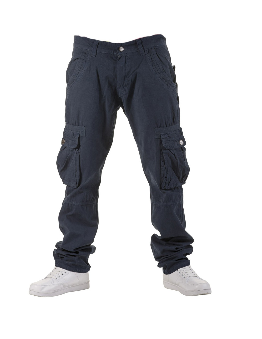 Cargo pants from Escobar. Colour: Navy blue. Material: 100% cotton. The fittins is Slim Fit. The model in the picture is wearing a size 34.