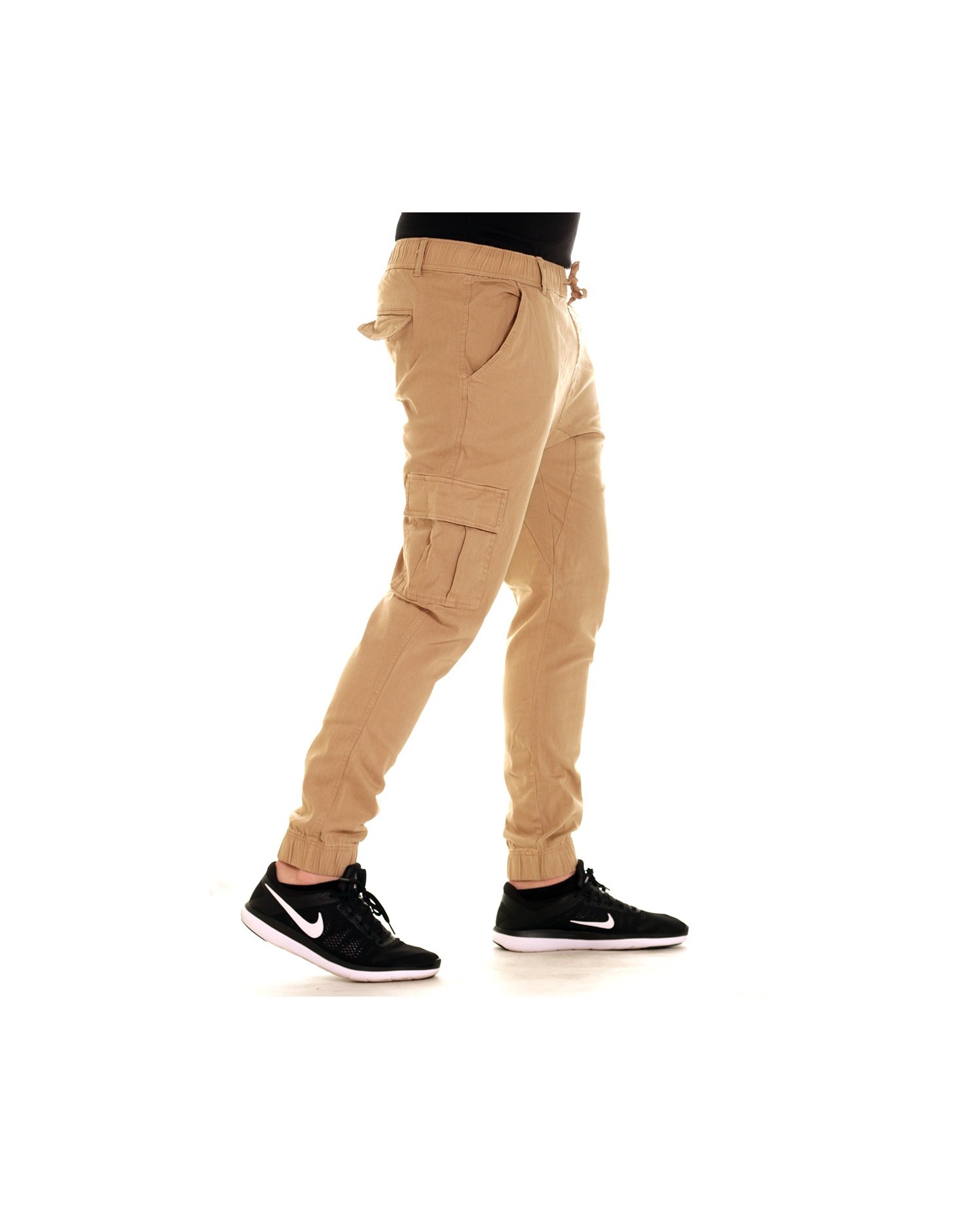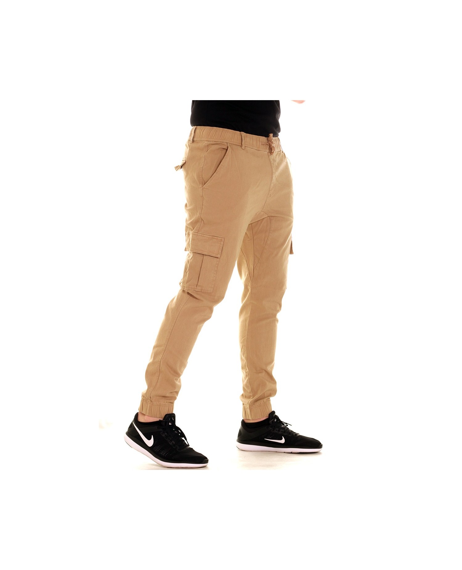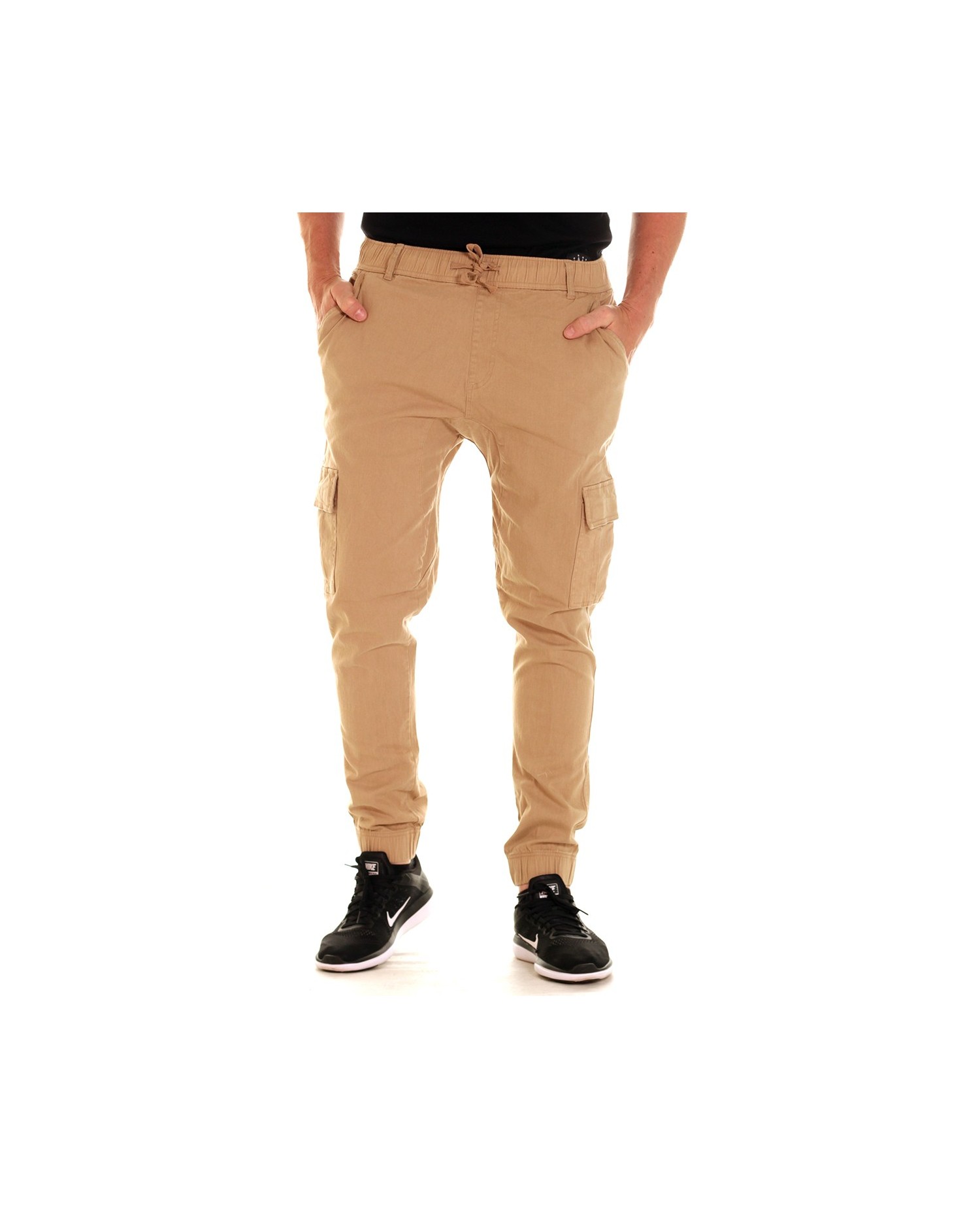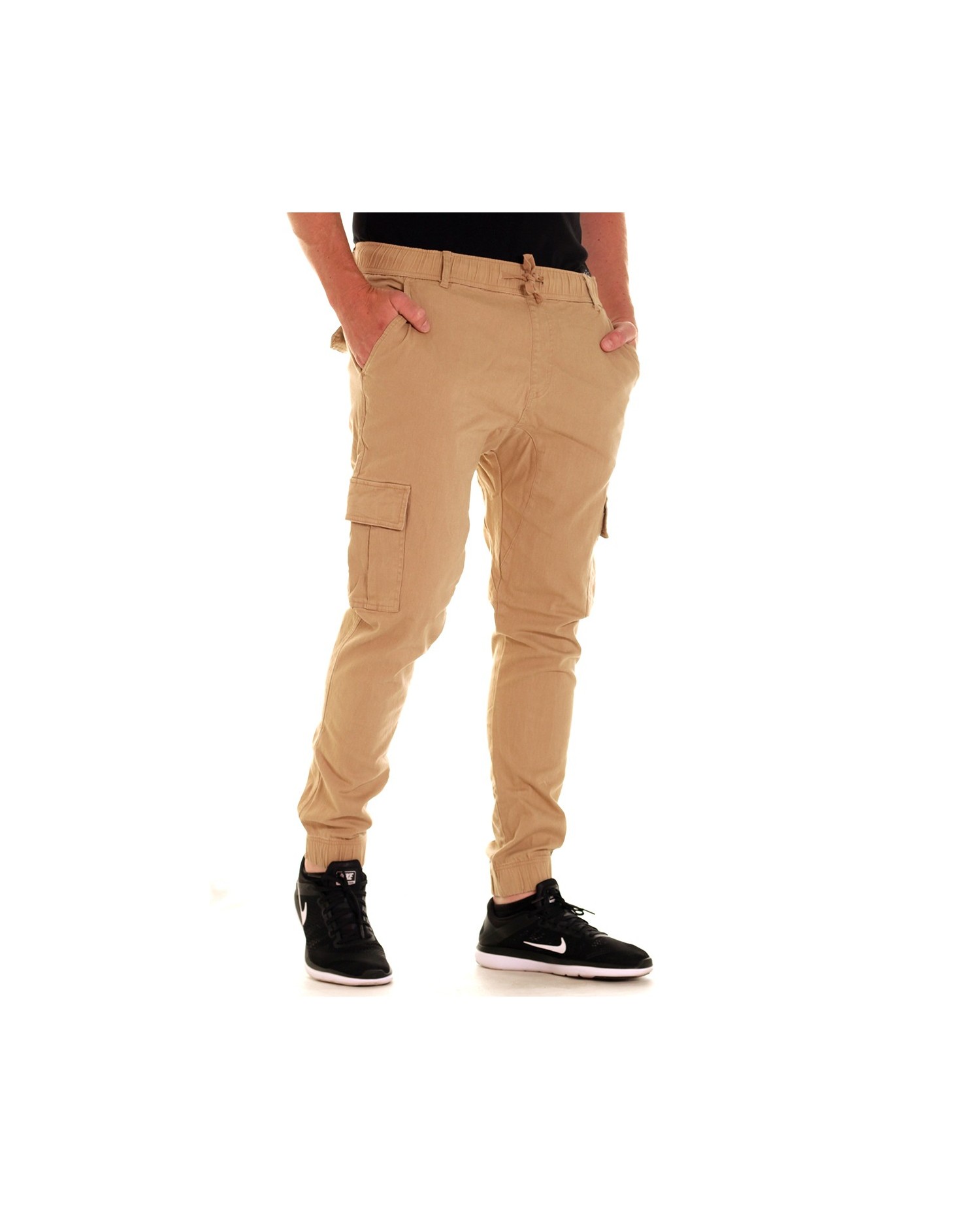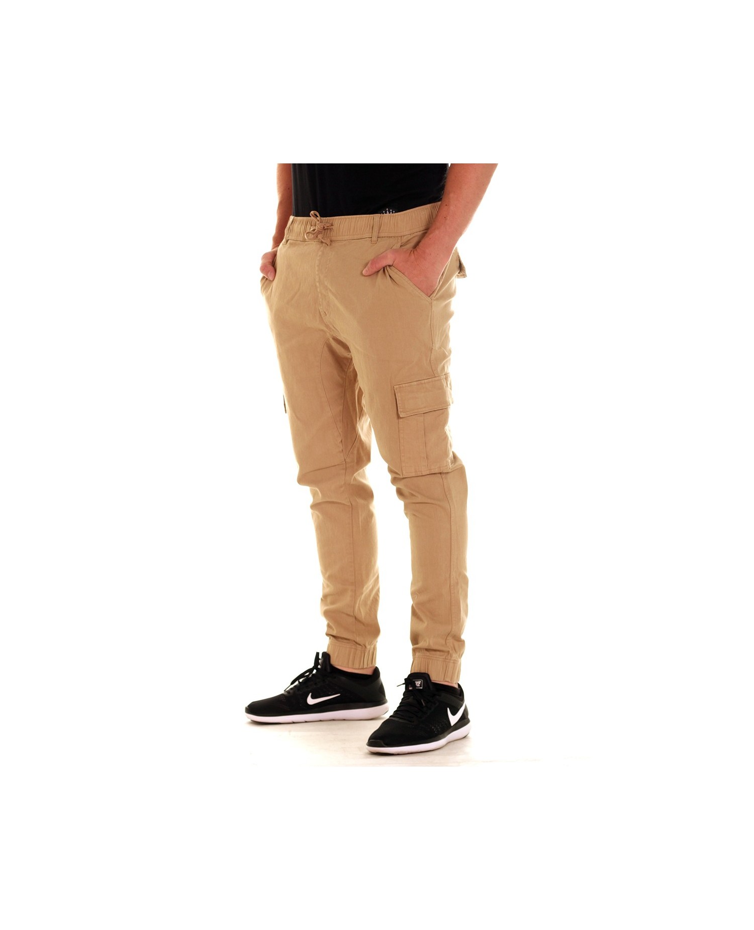 Khakifarvede Twill Jogger bukser med praktiske taskelommer fra US brandet Access Apparel. Brandet står for cool casual streetwear.