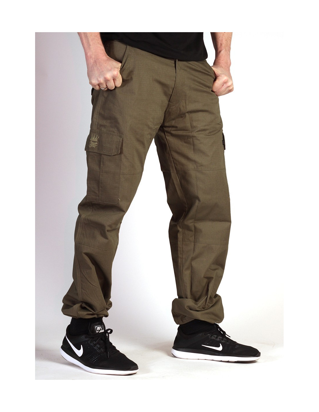BSAT Regular Fit Combat Cargo Pants har en super god maskulin pasform og er helt perfekte til en sporty og street tøjstil. Buksen er lavet i BSAT's karakteristiske småternede stof i olivengrøn. Buksen har en elastik forneden til at justere pasformen med. Combat Regular Fit bukser passer til det meste: til vilde T-Shirt og Hoodies og til en minimalisisk streetwearstil uden print. Læg dertil, at de er yderst behagelige at have på. Så bliver det helt selvfølgeligt, at de er et hit blandt mænd.