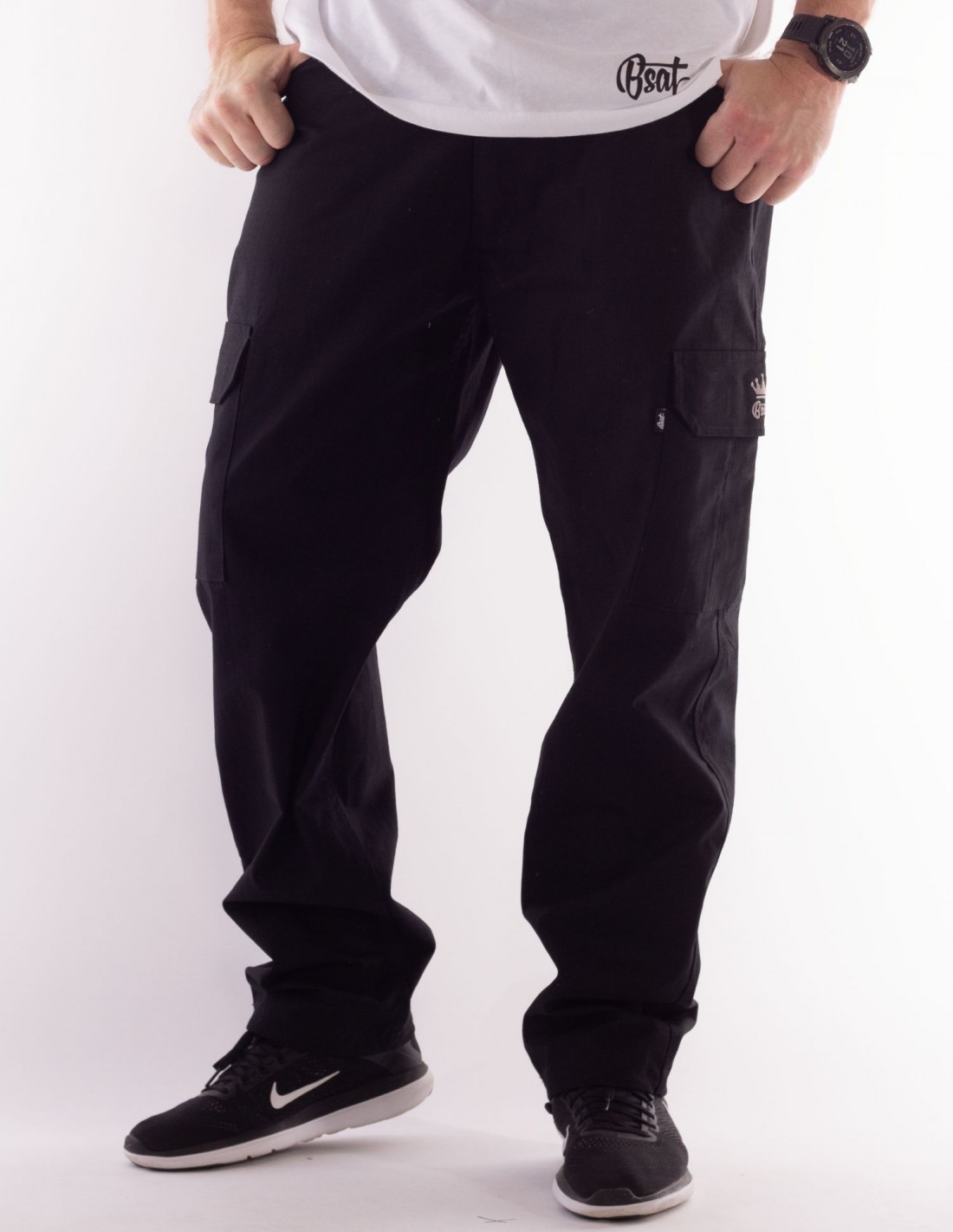 BSAT Heavy Weight Regular Fit Cargo Pants Black *Stretch Waist™*