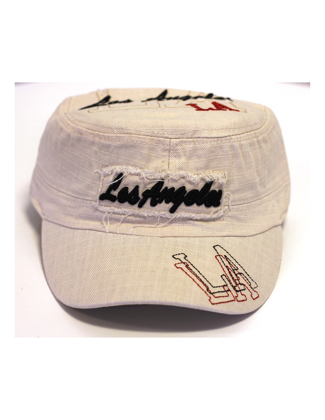 Svedig Fashion Cap fra det amerikanske Identity i vintage denim stil. Cappen er beige, draperet med sort og rød syning. One-Size med justerbar lukning bagpå.