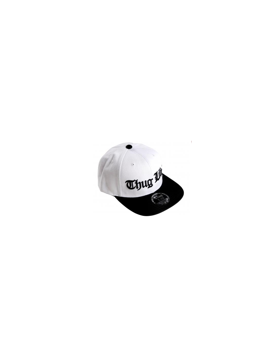 Hvid Thug Life brandlogo Cap med sort stitchet logo og sort skygge. Cool og stilet cap til alle HipHopper og fans af Tupac.