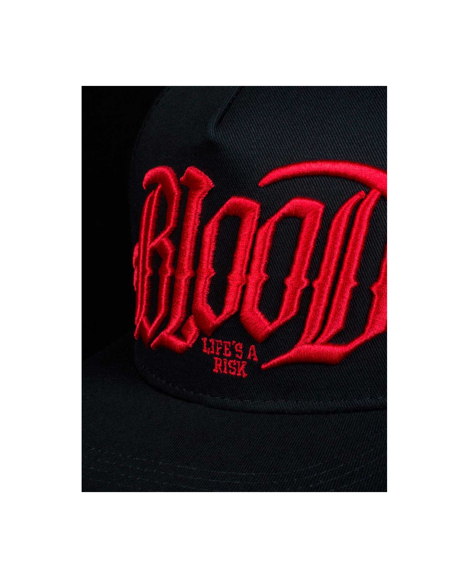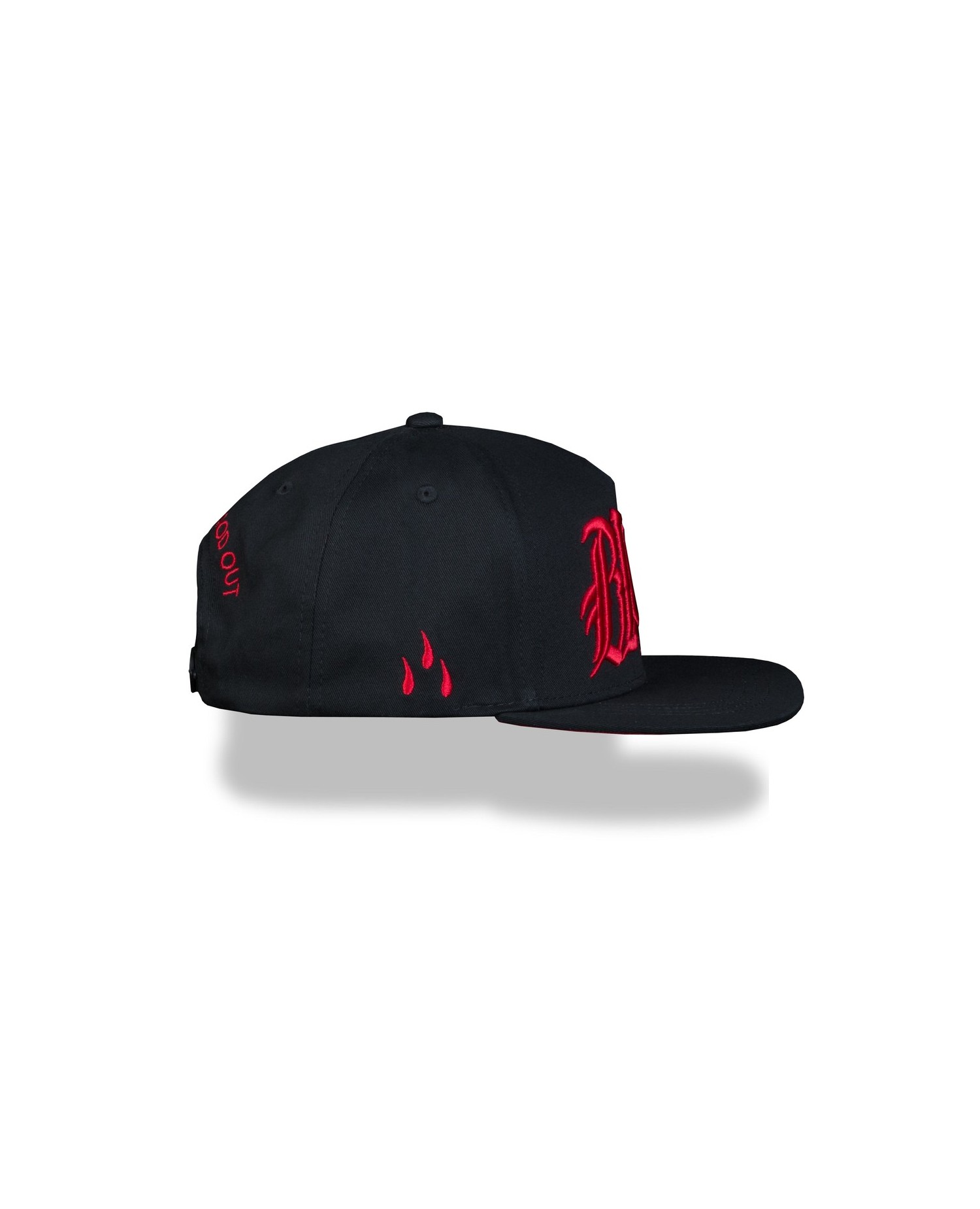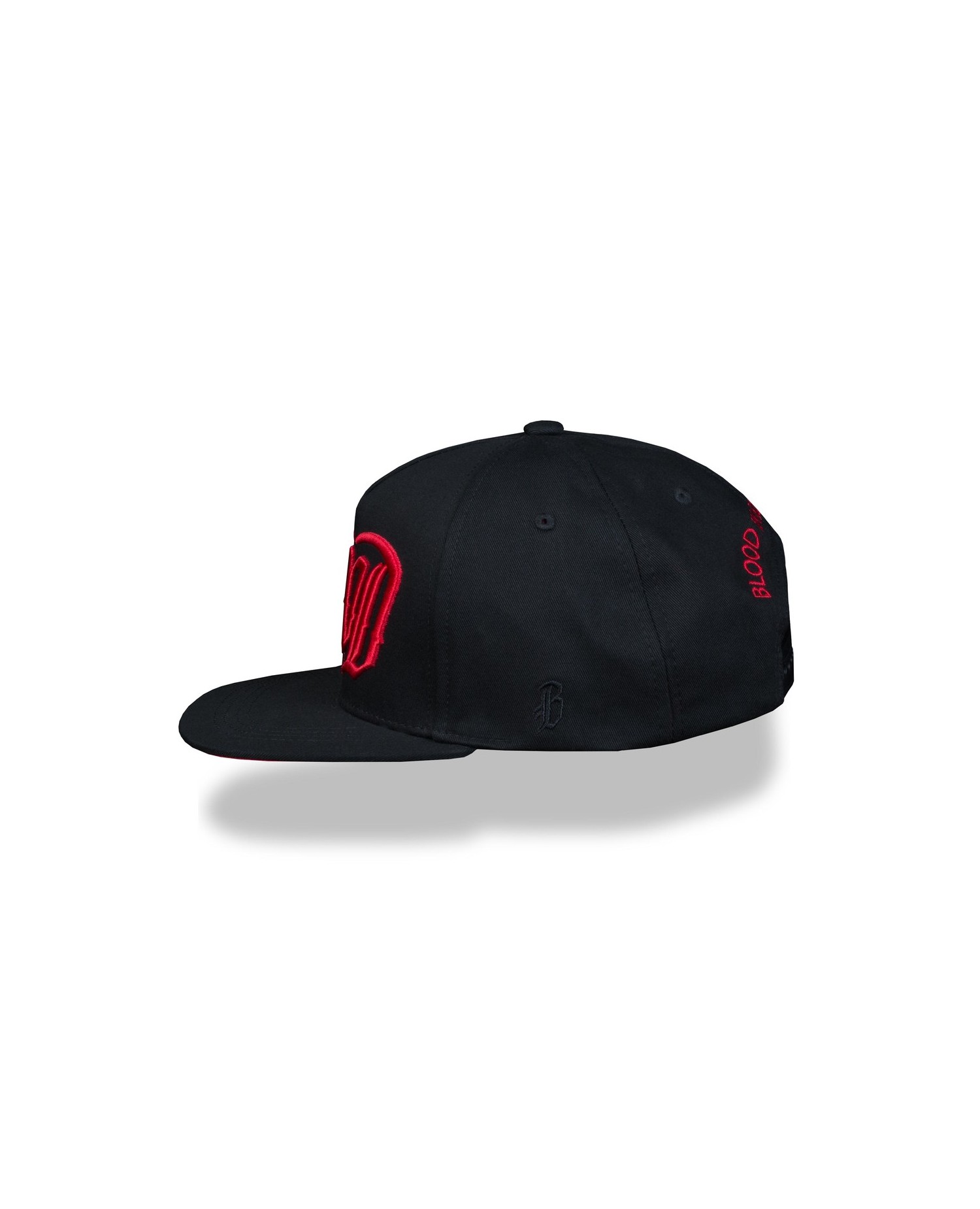Cool sort Snapback Cap med broderet Logo foran og bagpå i blodrødt. Cappen er fra Blood In Blood Out. Blood In Blood Out er et rebel streetwear brand opkaldt efter kultfilmen af samme navn. Filmen handler om blodsbrødre fra gruppen Vatos Locos og bygger på virkelige begivenheder i digteren Jimmy Santiago Baca’s liv. Filmen fik premiere i USA i 1993 og fik verdensomstændende succes og inspirerede urban kulturen på mange måder. Tøjmærket Blood In Blood Out indfanger kultfilmens ånd. De direkte referancer til filmen brænder igennem. Brandets designs er unikke og blødende rå. Farveuniverset er overvejende holdt i sort, blodrødt og i grå nuancer. Materiale: 100 % bomuld. Størrelse: One-Size. Cappen passer til de allerfleste med justerbar lukning bagpå.