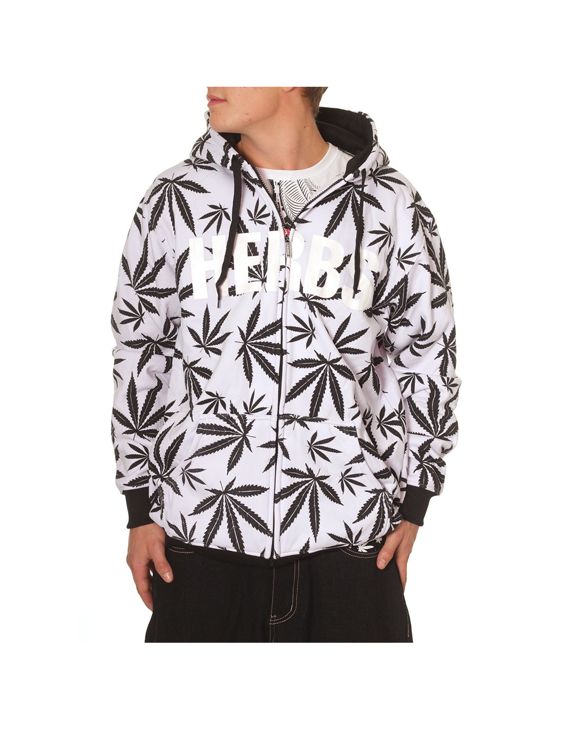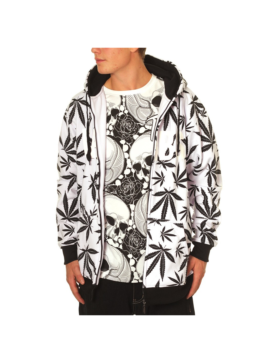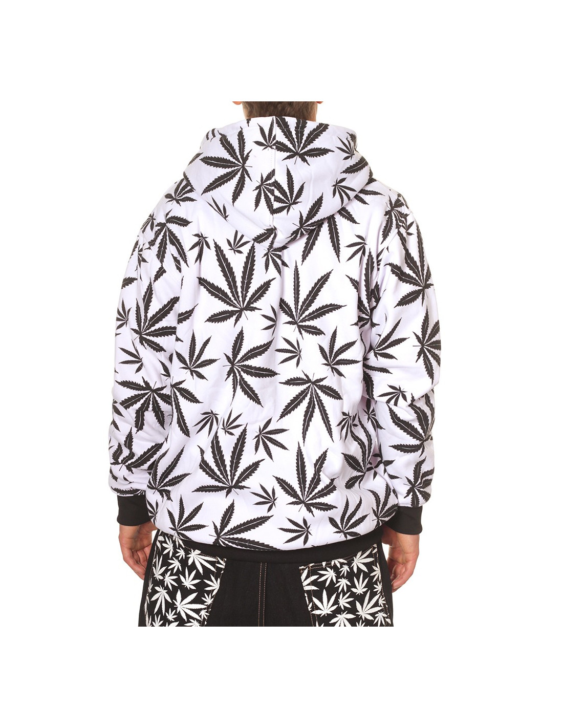 Cool Zip hoody fra Townz Brand. Med hamp planter trykt all-over. Materiale: 100% polyester. Modellen på billedet er ca. 181cm høj, vejer 78kg, og bruger str. XL på billedet.