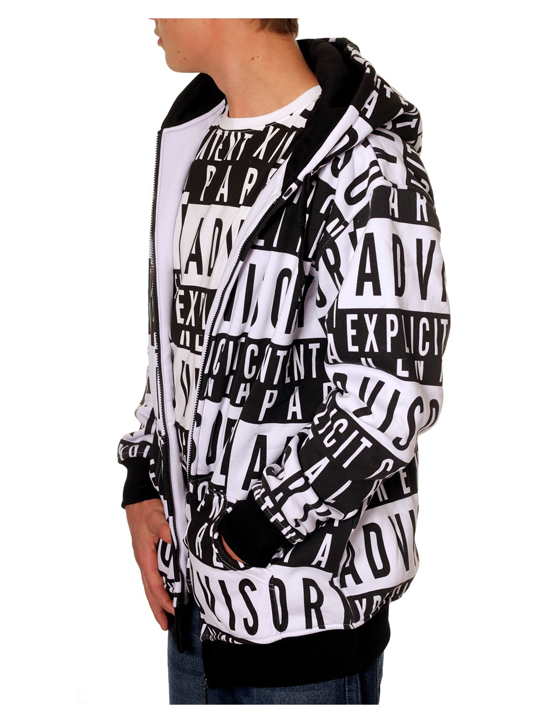 Cool zip hoody fra Townz brand med den klassiske explicit lyrics tryk. Tjek sko der matcher i shopen. Fra den nye Townz Kollektion. 100% polyester. Modellen på billedet er ca. 181cm høj, vejer 78kg, og bruger str. XL på billedet.