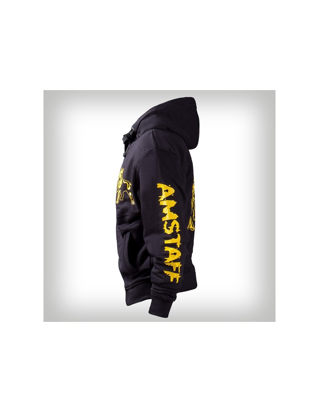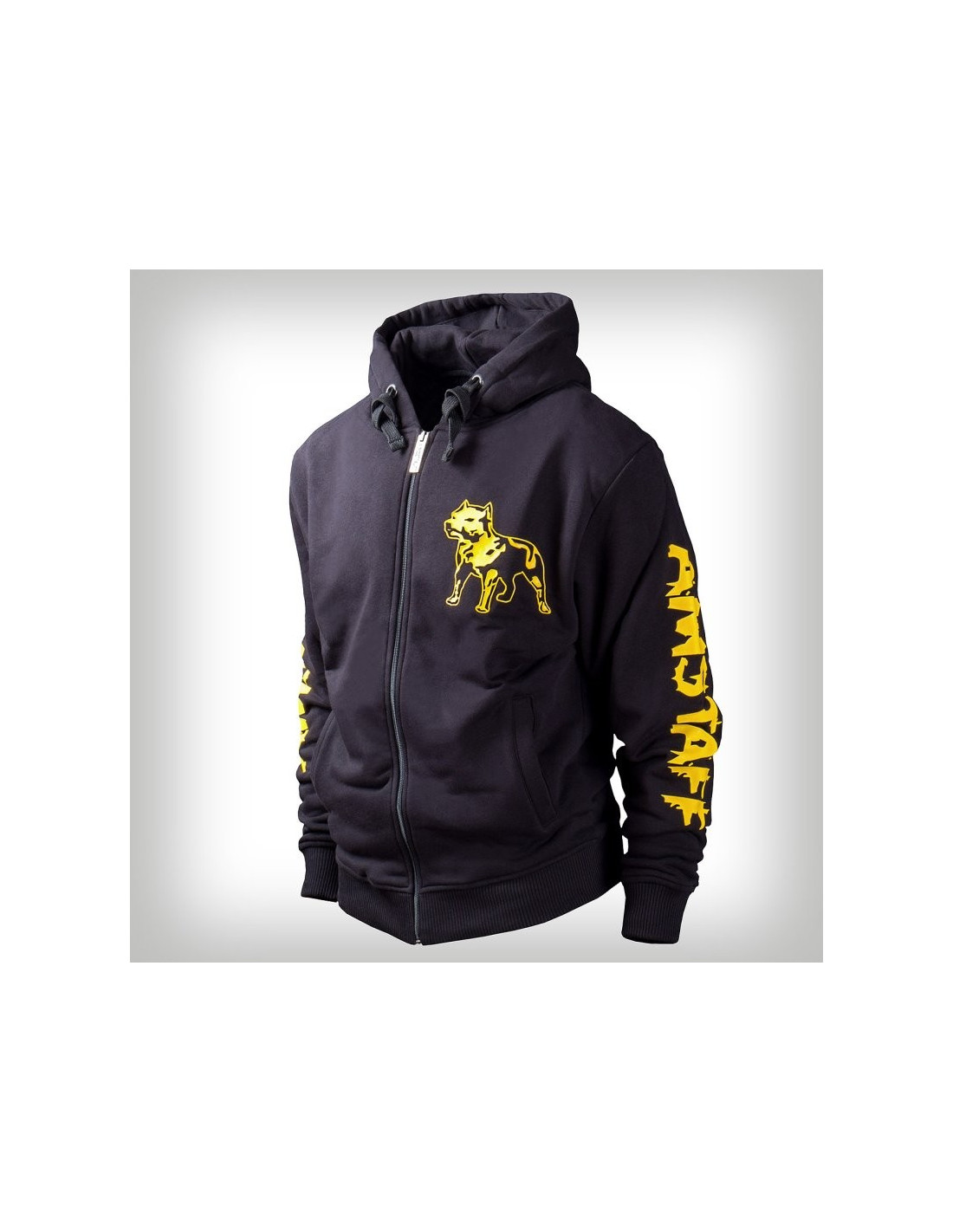 Mega blæret logo lynlås hættetrøje fra Amstaff. Kraftig hoody i god kvalitet. Vær opmærksom på Amstaff størrelserne. De er mindre i størrelsen end meget andet streetwear. Vi anbefaler at du går et nummer op.
