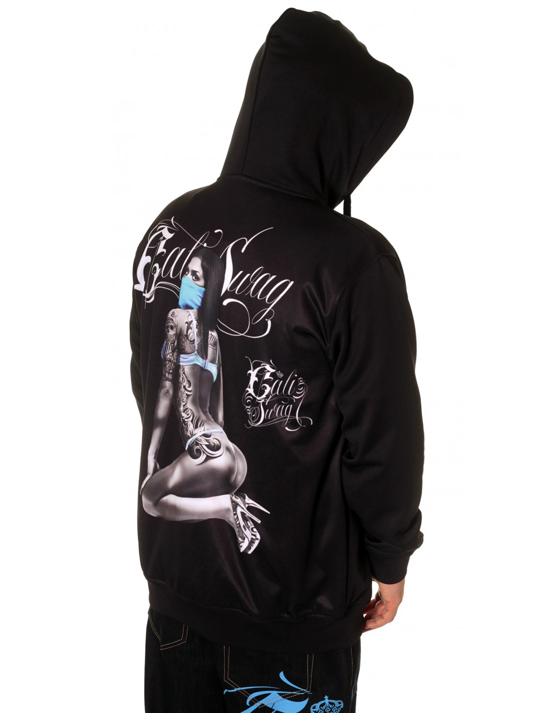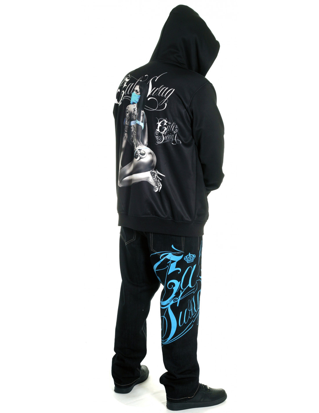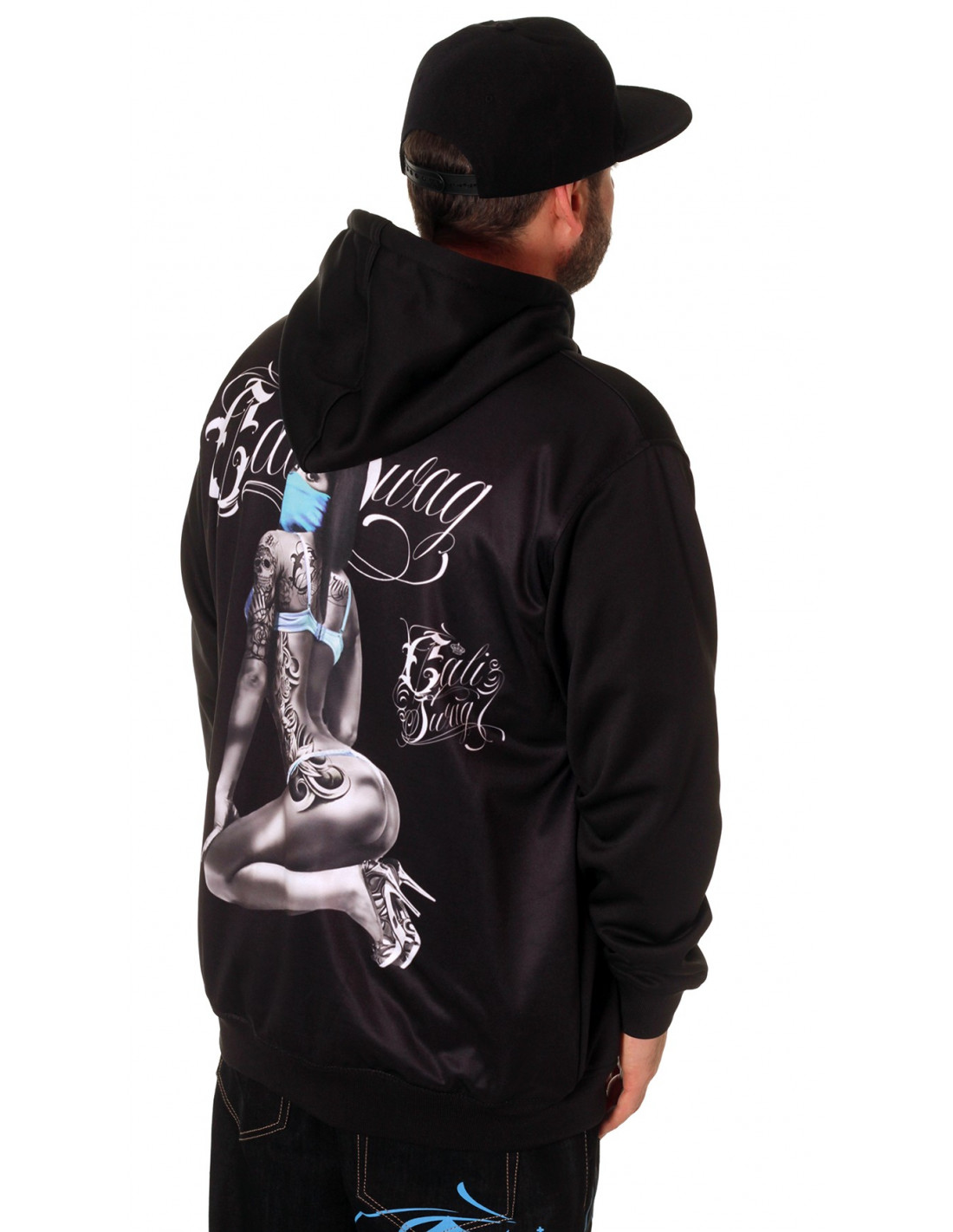 Den sorte Cali Swag Hoodie har et cool full print på bagsiden: Cali Swag er skrevet med kunstnerisk skrift og en hot Chica med skyblue bandana ser supersej ud. På forsiden har Hoodien et stort skyblue Cali Swag print. T-Shirten er fra BSAT's La Onda Kollektion og er tegnet af brandets kunstner, med tydelige rødder fra Chicano Art Kulturen: Chicano Kulturens favorit symboler er skeletter, våben og chicas og fuld af detaljer. Vi er vilde med La Onda kollektionen og kvaliteten er i top. I RudeCru er vi derfor stolte over, at det er lykkedes os at få landet en deal med BSAT om at forhandle deres mega coole produkter.