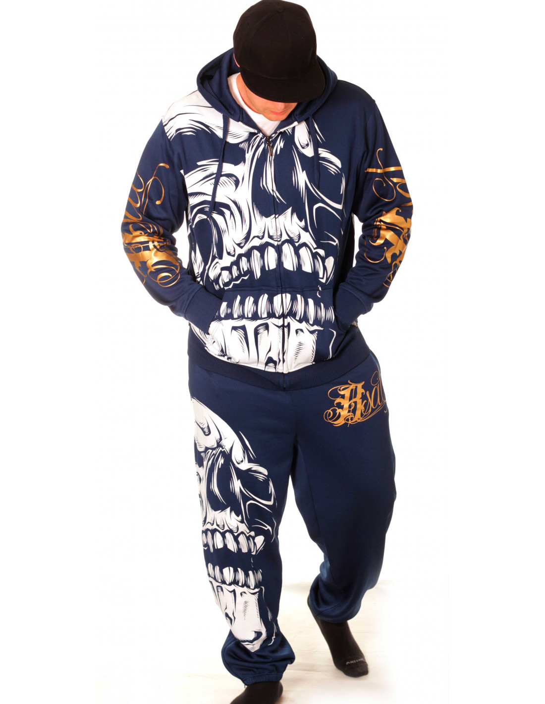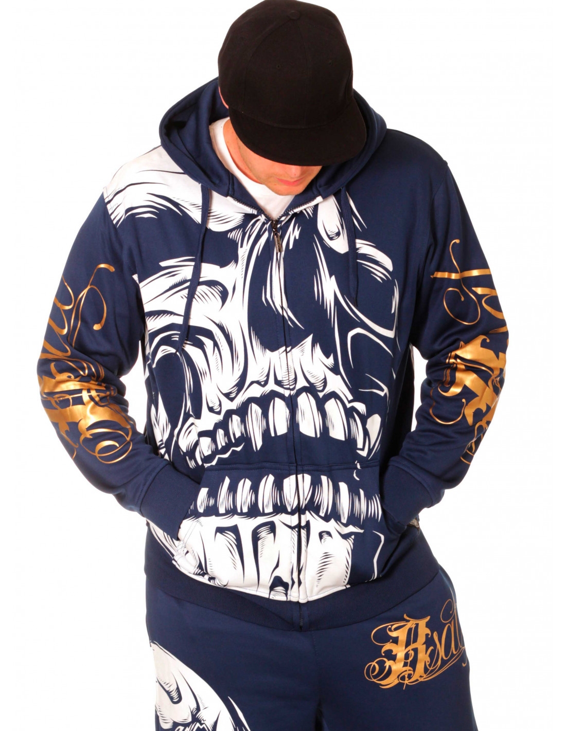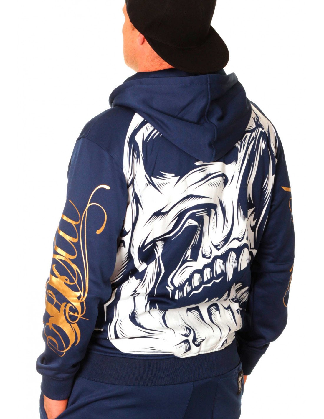 Den kongeblå ZipHoodie med det store agressive Skull er fra BSAT's La Onda linje. BSAT er et tøjbrand med stærke og solide rødder i HipHop Kulturen. Chicano Art Kulturen, Gangsta Rap og Bronx Hip Hoppen er brandets DNA. Det er BSAT - Blood Sweat and Tears. Big Skull Hoodien har et stort håndmalet hvidt print på for- og bagside, guldprintet brandlogo på ærmerne og et lille logobatch nederst på venstre side. Big Skull designet er stort, det er stærkt, det er hiphop med kant og max streetattitude. I Big Skull serien indgår desuden en sort Tee, sort ZipHoodie, kongeblå og sorte Sweatpants, samt et par sorte HiTop Sneakers.