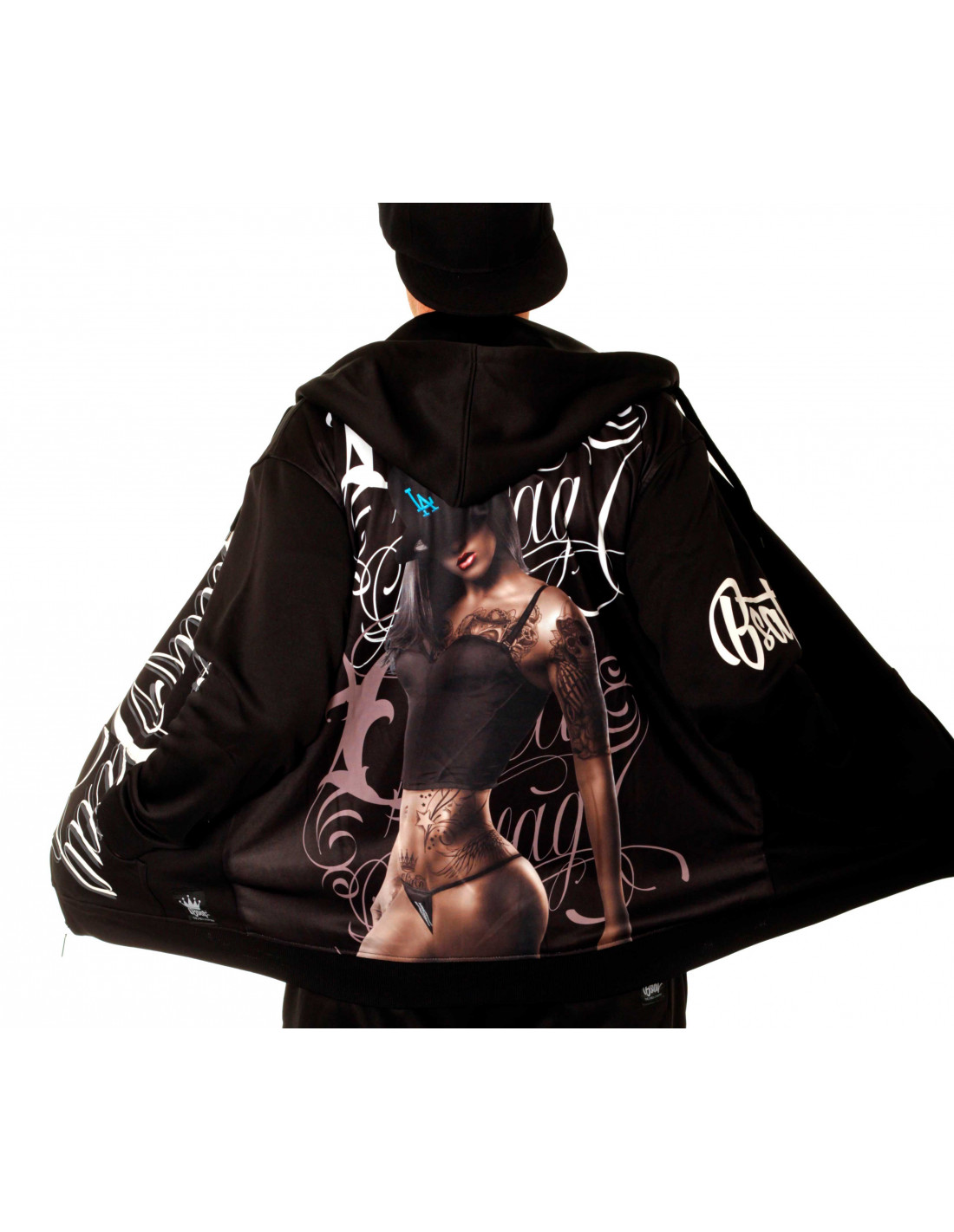 TAK. Vi bøjer os for et nyt mesterværk fra BSAT's designteam. LA Cali Swag Hoodien er fra brandets LA Onda linje, som er håndtegnet designs. BSAT's La Onda linje har dybe rødder i Chicano kulturen, hvis favoritsymboler er Chicas, skeletter og våben. Og dette Chica Design er vanvittig flot. Placeret oven på håndskreven Cali Swag i hvidt og gråt, skinner Chicaen i et dunkelt skær med sensuelle læber, øjnene tildækket af en sort Cap og tatoos på den smukke krrop. LA Cali Swag designet fylder hele bagsiden. På højre ærme er placeret brandets logoprint. Forsiden er dekoreret med kunstnerisk håndskrevet CALI SWAG ned langs hele venstre side i hvidt med grå skygge. Et lille gråt brandlogo batch sidder forneden til venstre for de klassiske kængurulommer. Et must-have for alle, der er nede med BSAT's La Onda linje. Og hvem siger HipHop kun skal høres eller ses på vægge. Det her er ren kunst, et sandt mesterværk. Tag den på og læg gaden ned:)