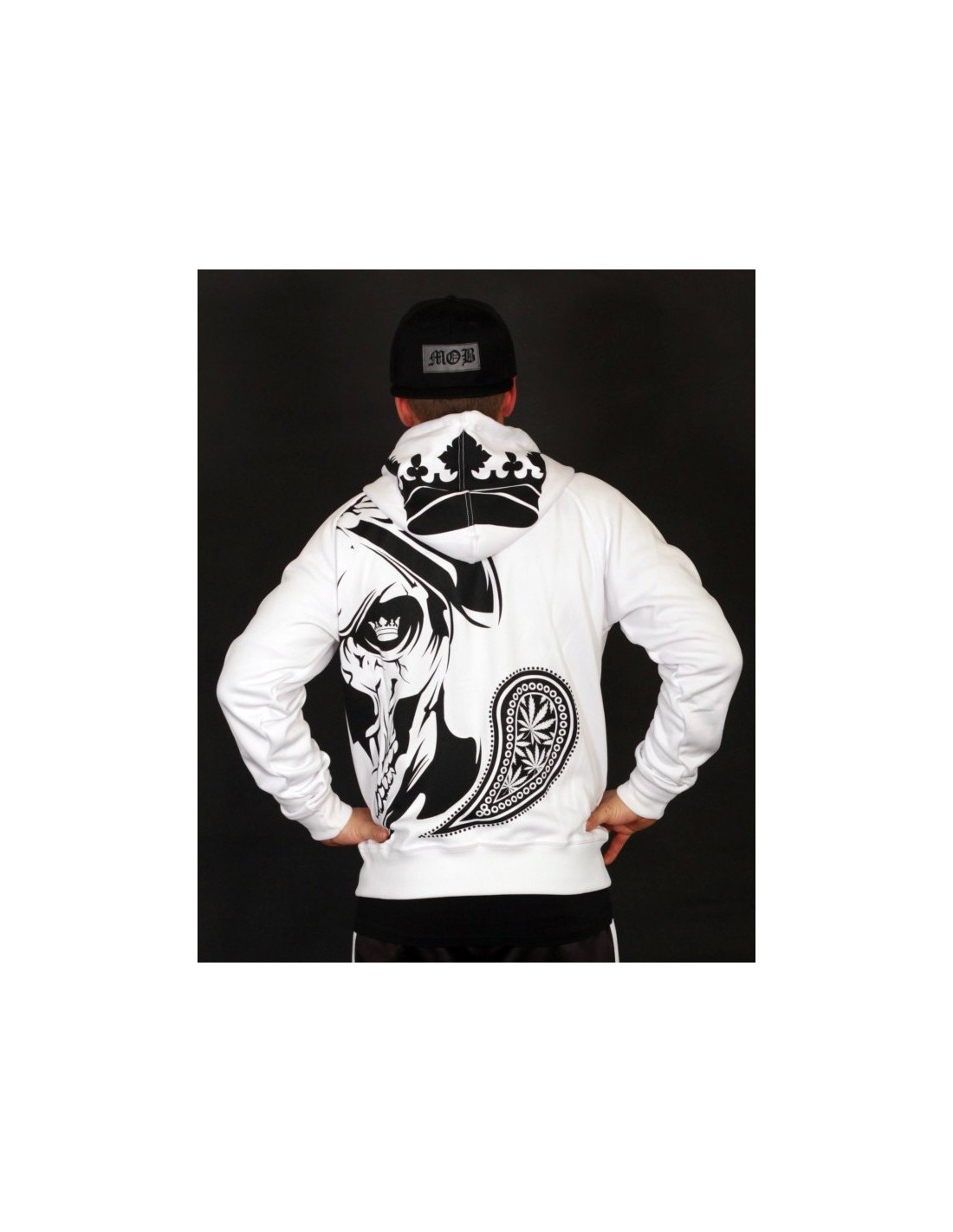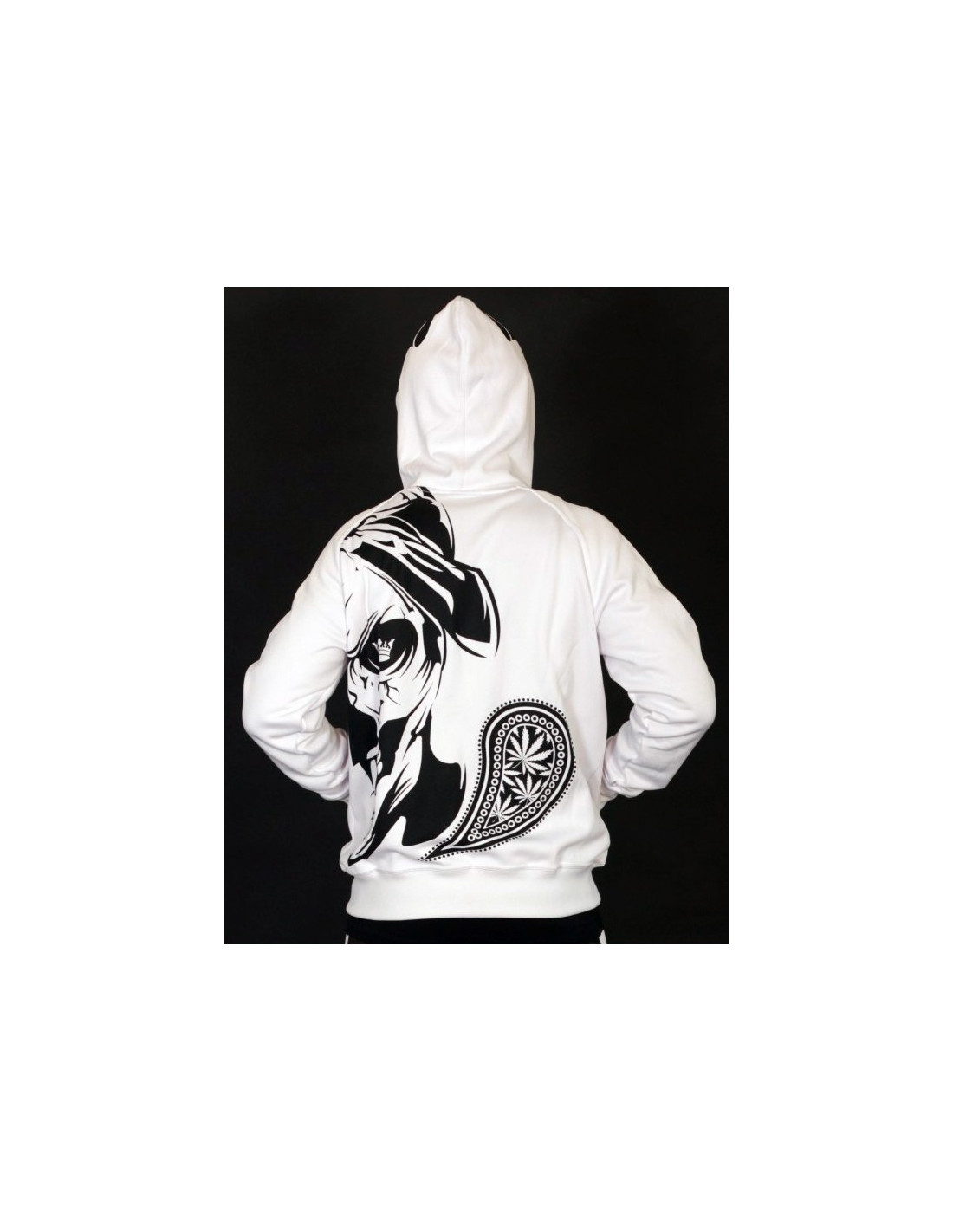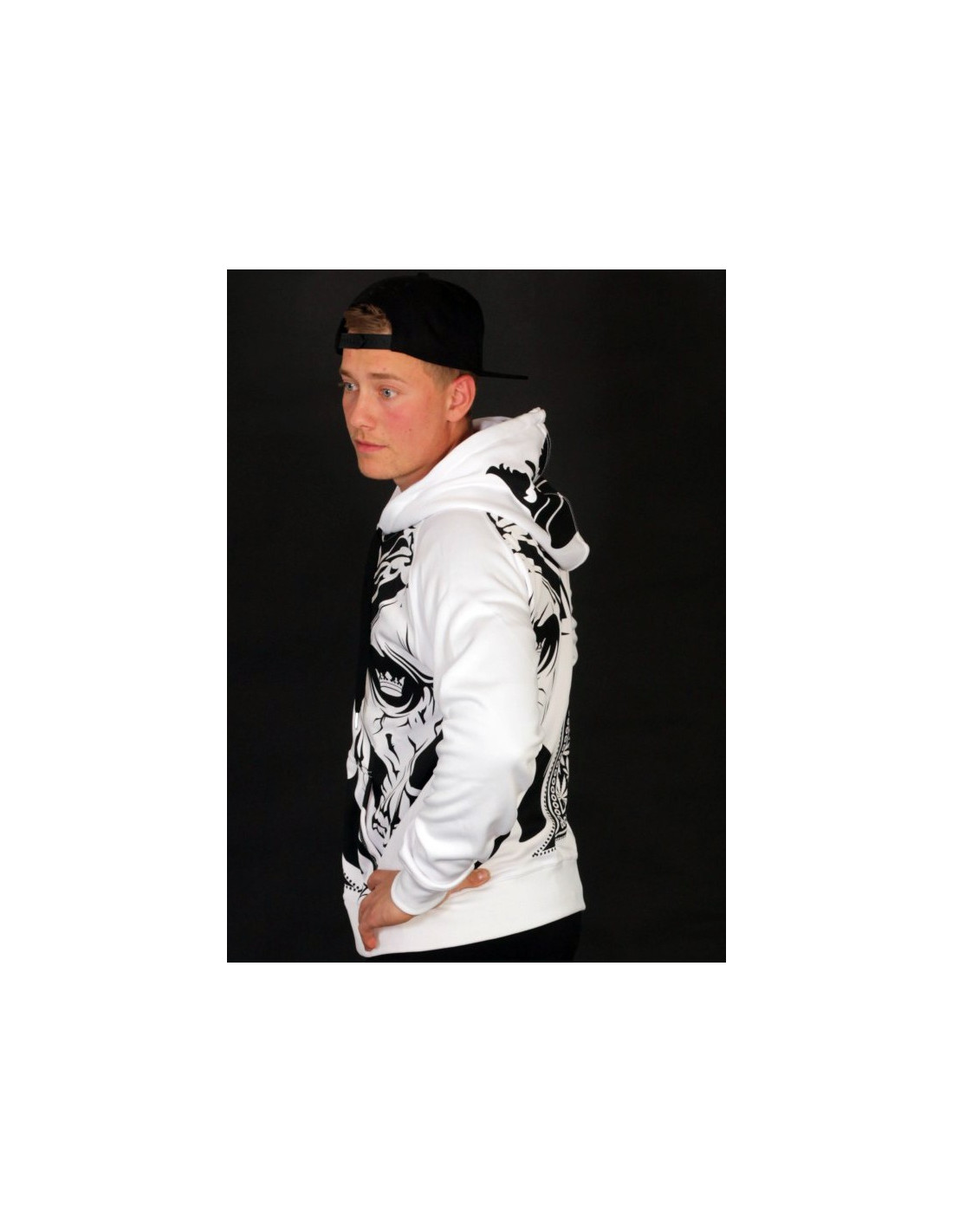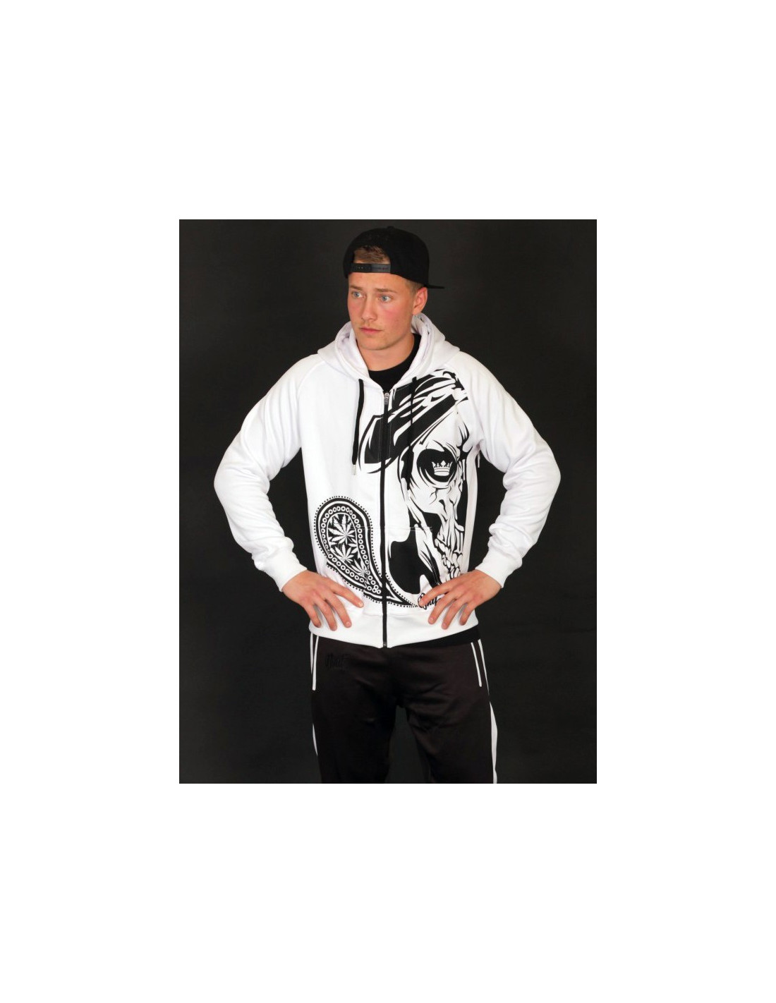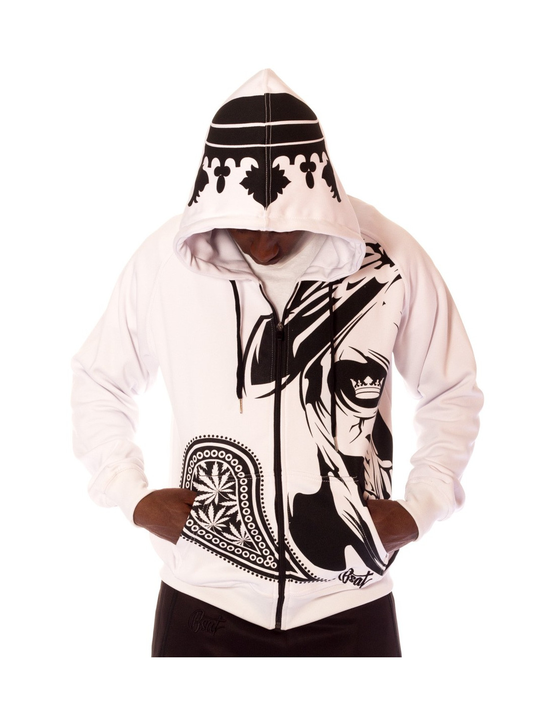 De har gjort det igen! Navnet er BSAT! BSAT Clothing brand er et hip hop tøjmærke med stærke rødder i Hip Hop kulturen. Smokin' Skull Hoodien er fra BSAT's LA Onda linje,. La Onda linjen er forankret i Chicano kulturen, hvis favoritsymboler er skeletter, våben og Chicas. BSAT's Skull designs er imponerende og kunstneriske. De er håndtegnede designs i absolut særklasse. Smokin Skull designet er ingen undtagelse. I Rudecru jubler vi i kor med alle tilhængere af BSAT's La Onda kollektioner, for Smokin Skull er et nyt outstanding kongedesign. Sådan! Hoodien er hvid med sort print, har 2 praktiske kængurulommer og lynlås.