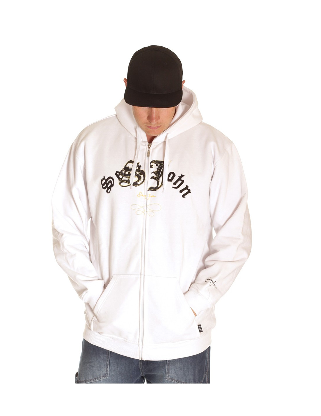 Cool hvid brand logo Hoodie med lynlås fra Sean John. Det legendariske HipHop label Sean John blev startet af den lige så legendariske rapmusiker Jean Combs. Jean Combs var nok den første, der kombinerede HipHop musikken med svedigt HipHop Design. Sean John blev en mega succes på alle områder, ikke kun økonomisk. Fra 2000-2005 blev Sean John prisnomineret ved CFDA (Council of Fashion Designers of America). I 2004 vandt Sean John prisen som bedste designer af mandetøj. (Men's Designer of the Year). Og det forstår vi godt her på RudeCru. Sean John Designs er i absolut særklasse. Direktøren for RudeCru har på sin seneste rejse til USA købt flotte Old School Sean John HipHop tøj, som du nu kan købe her i shoppen.