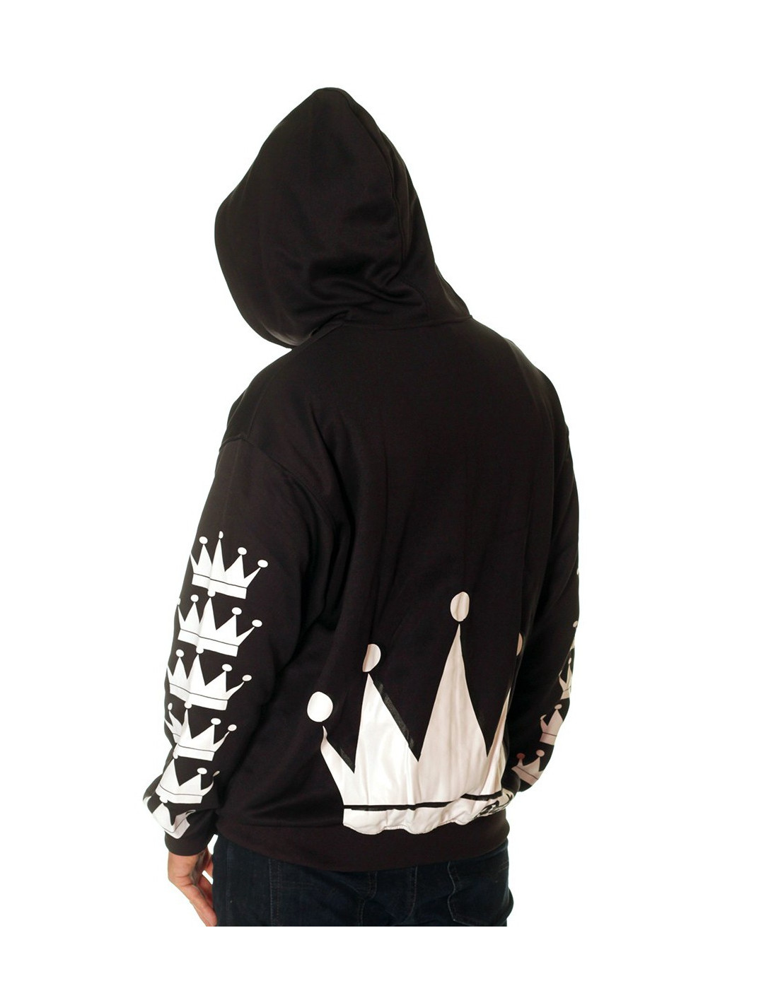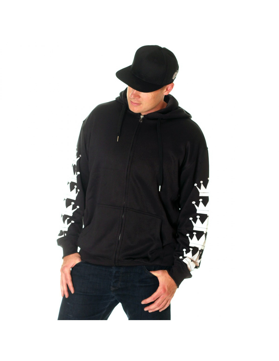 Den sorte Hoodie med hvide kroner ned langs ærmerne og en stor hvid krone bagpå er stilet og afslappet HipHop Design. Crown Hoodien er fra BSAT's Bronx Kollektion.
