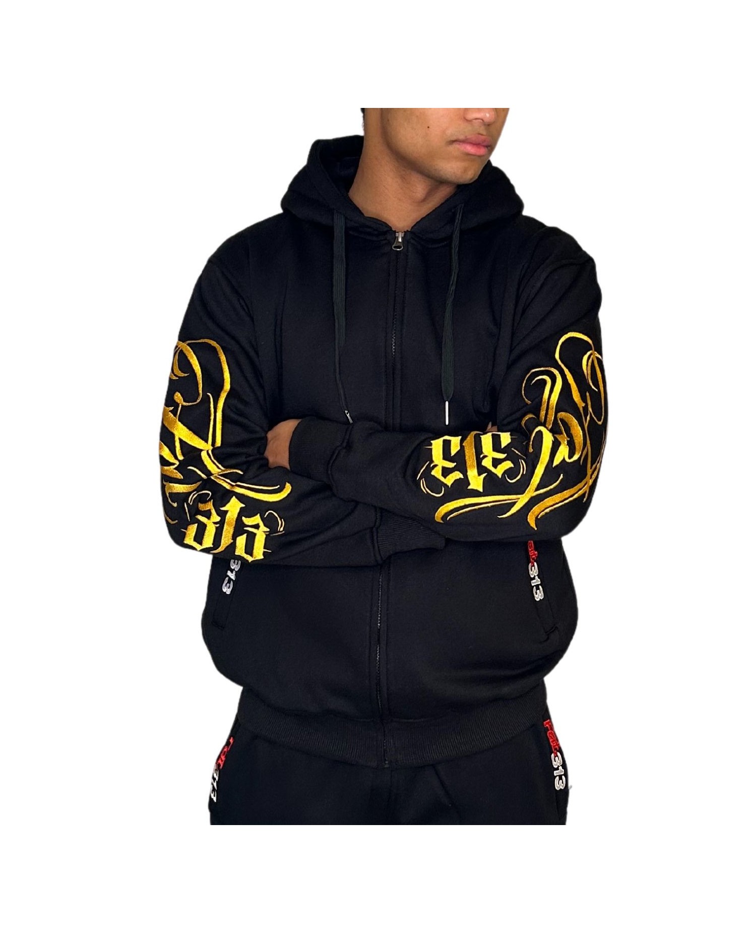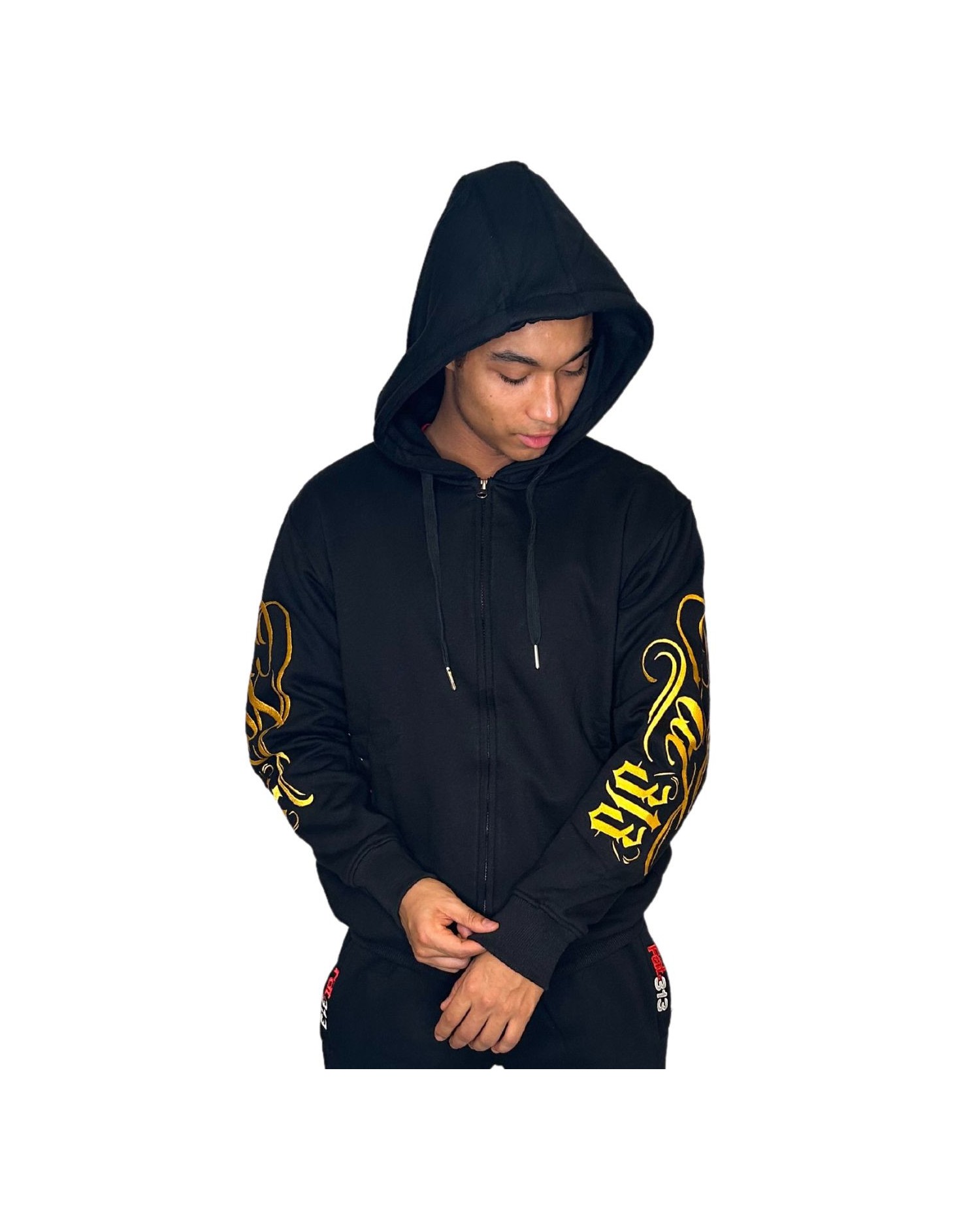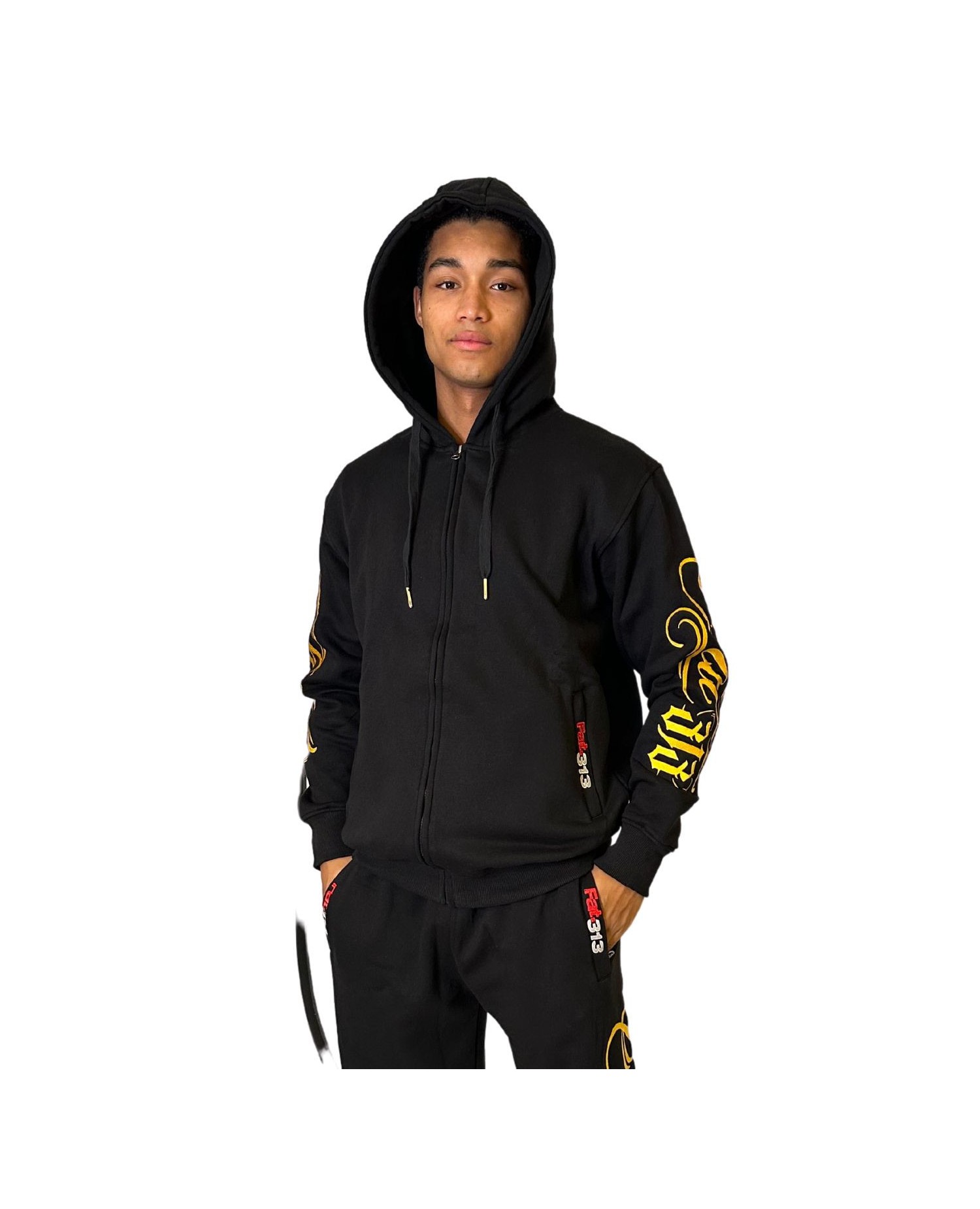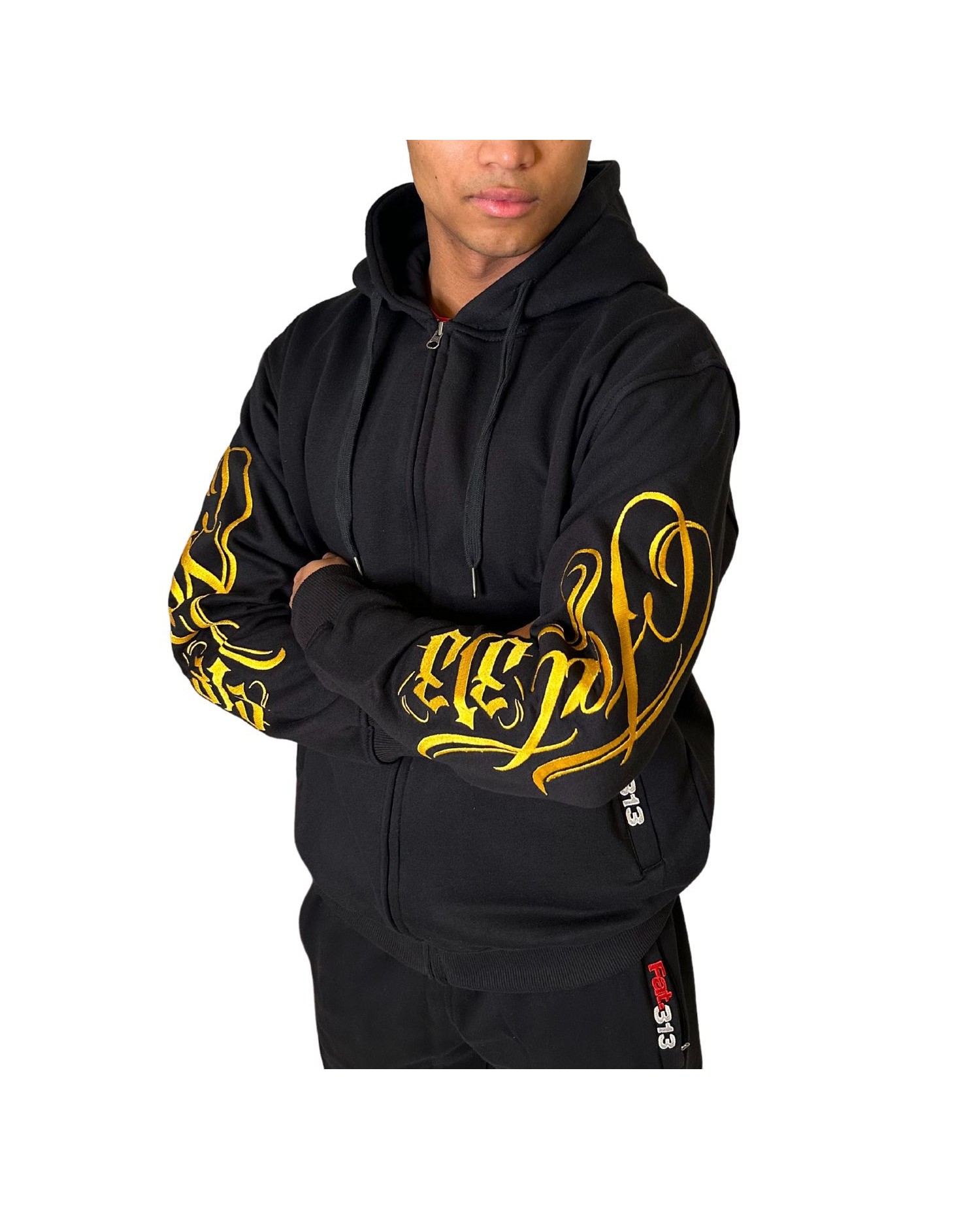 FAT313 Script Logo ZipHoodie Golden Embroidered