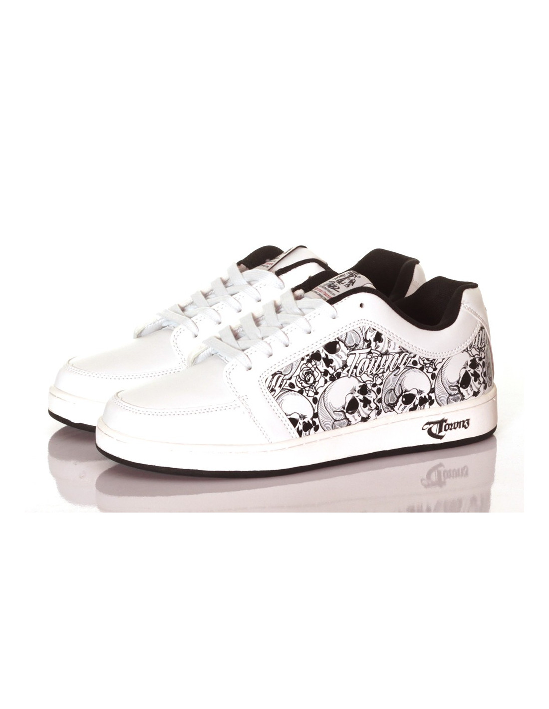 Sej sko fra Townz Brand i hvidt kunstlæder med TZ Skulls Deep designet trykt på siderne. Fed sko til en skarp pris.