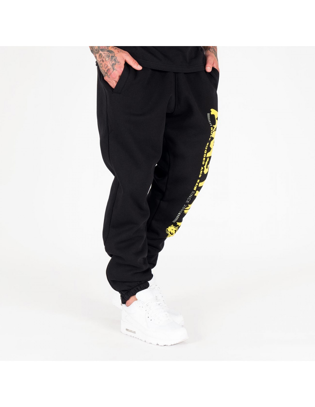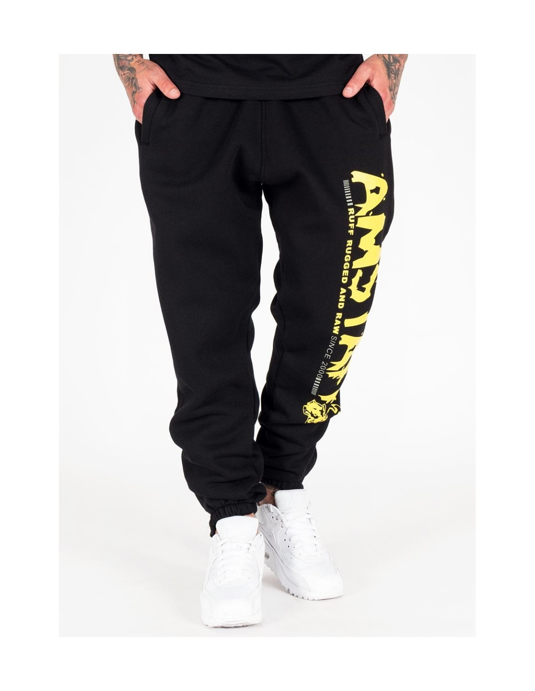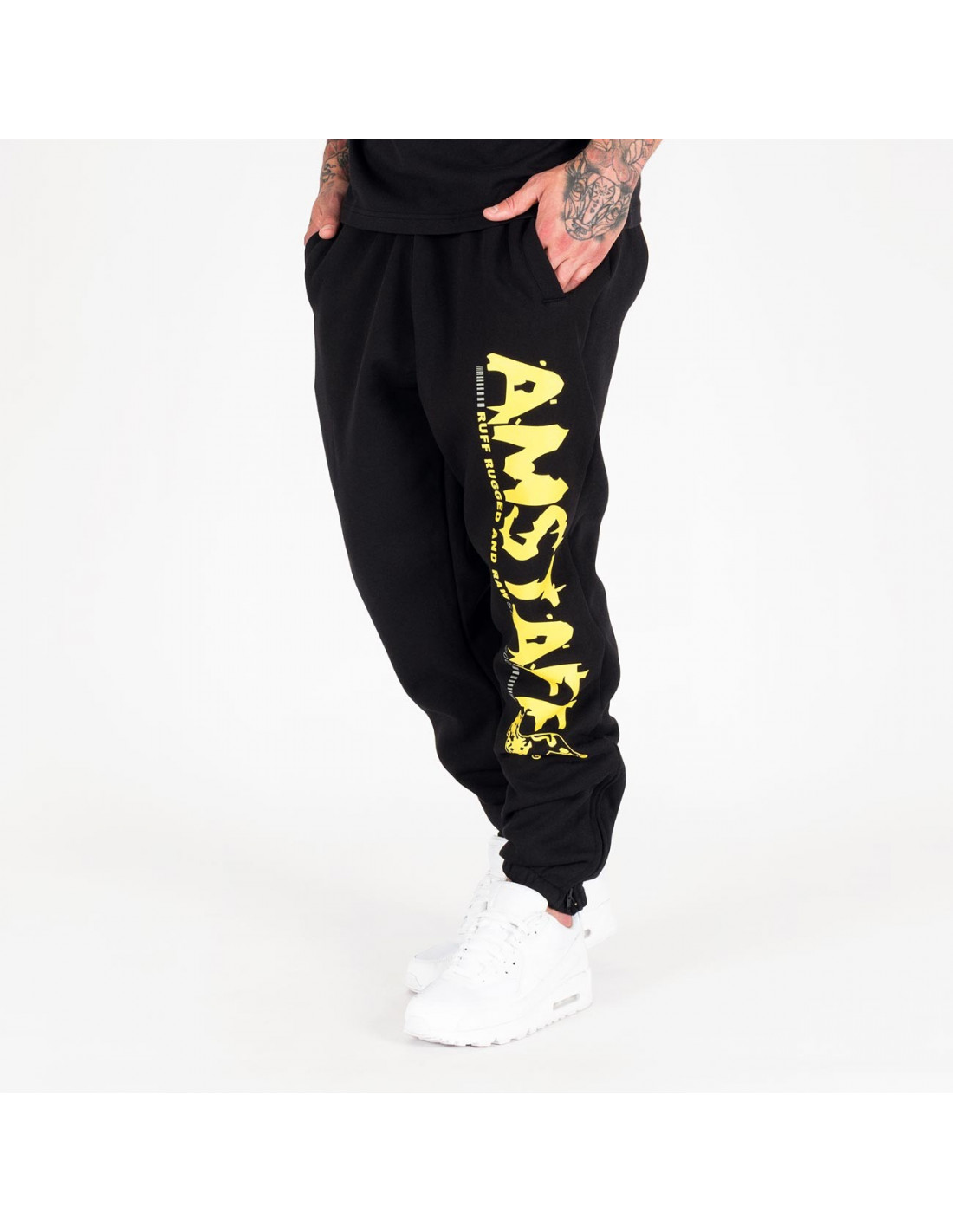 Super lækre Amstaff Wear Streetwear Sweatpants. Fede klassiske sweatpants i den kendte gode Amstaff kvalitet. Bukserne er lavet her med fedt gult print, med det velkendte og populære Amstaff logo ned af benet. Find matchende t-shirt fra Amstaff her i shoppen.
