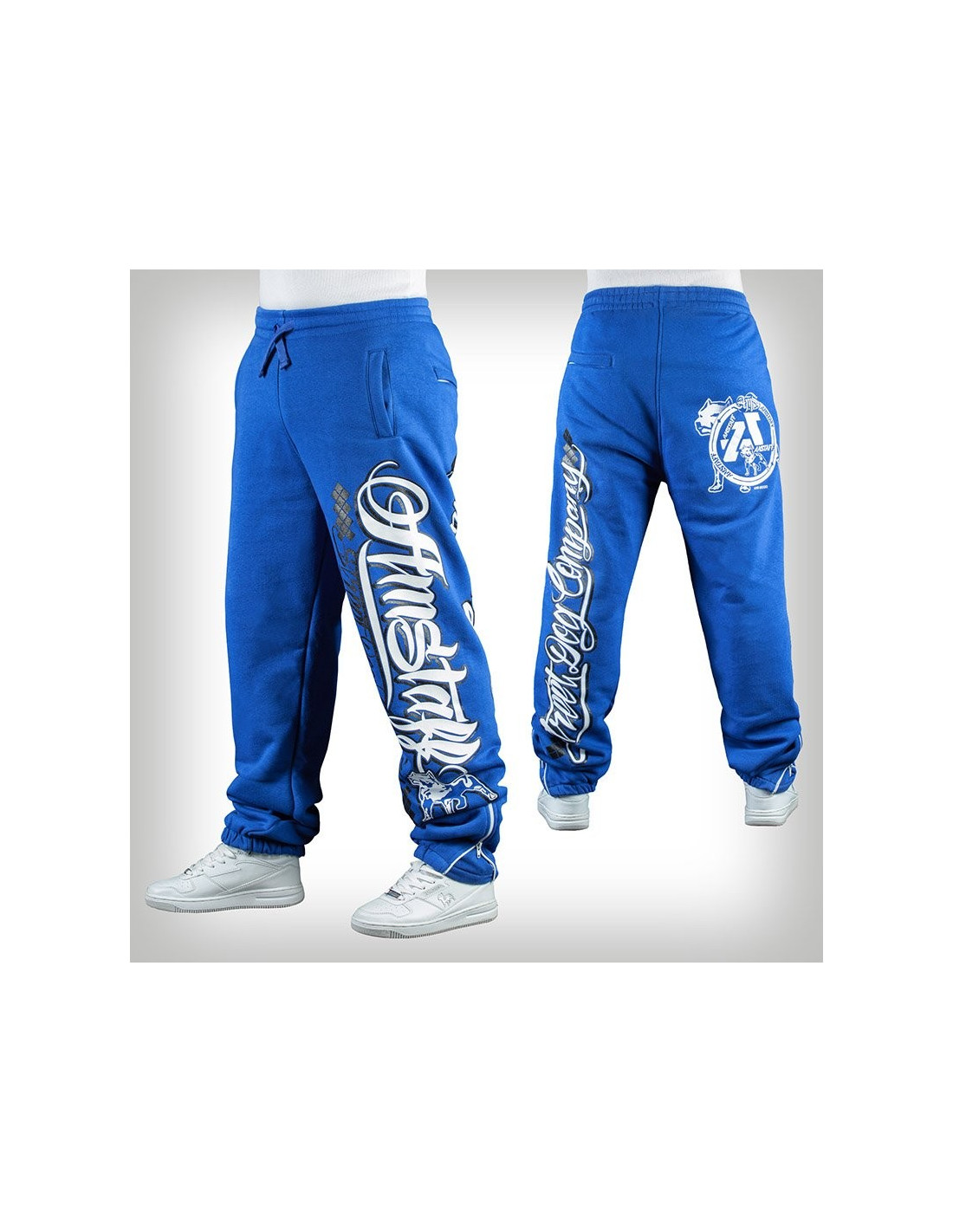 Svedige blå Amstaff Sweat Pants med hund og logo print. Super coolt og unikt design - som altid, når der er nyt gear fra Amstaff. Praktisk baglomme med lynlås.