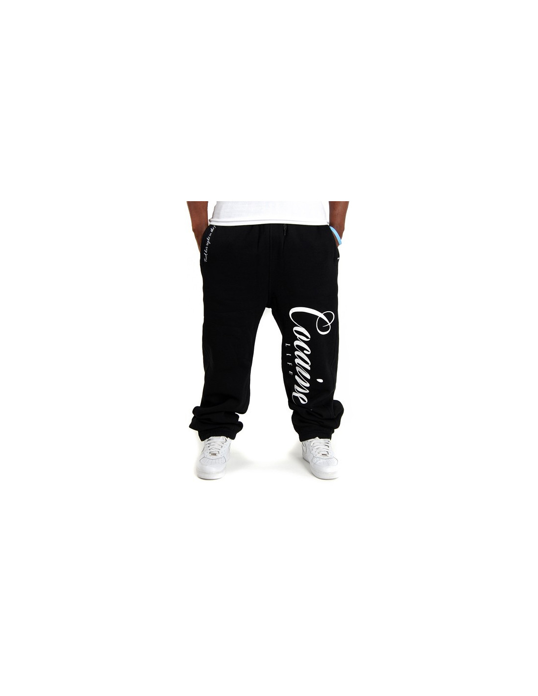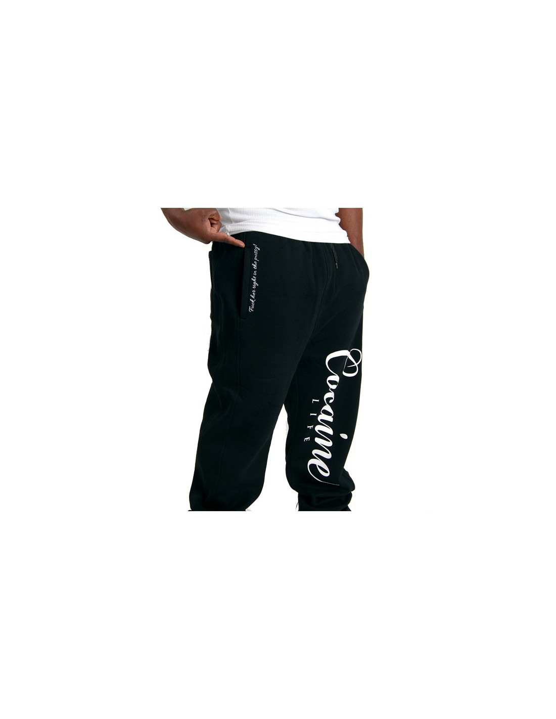 Klassisk Cocaine Life stil, høj på testerone. Sorte Sweatpants med hvidt logo print og et 'Fuck her right in the pussy' broderet på lommen. Fed pasform. Materiale: 65% bomuld, 35% polyester. Vaskes ved svar varme på vrangen.