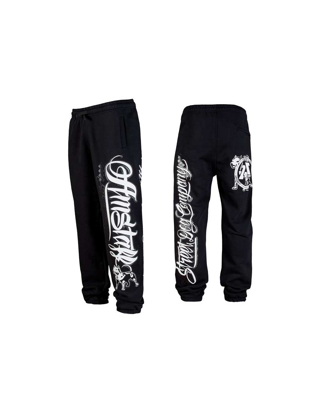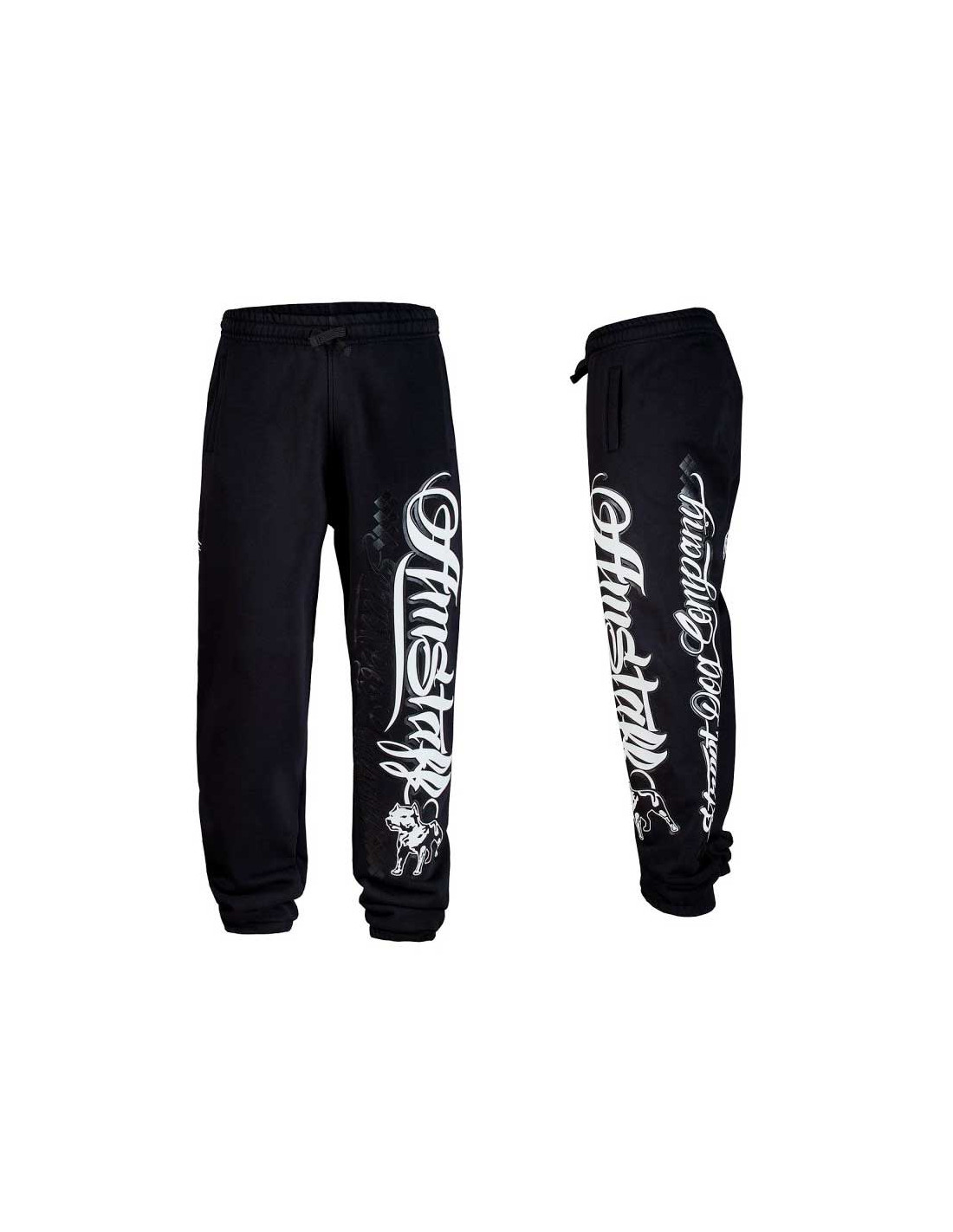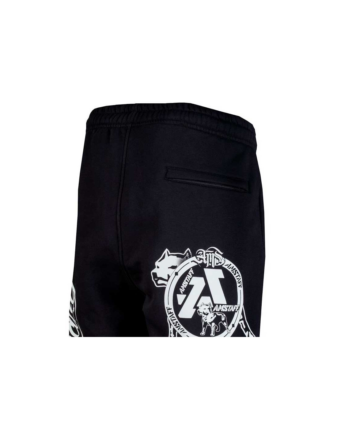 Coole sorte SweatPants fra Amstaff med hunden og bandlogo print. Sporty, maskulin streetwear med rå attitude og i høj kvalitet. Amstaff har en god pasform og er forsynet med en praktisk baglomme med lynlås. 80%bomuld, 20%polyester.