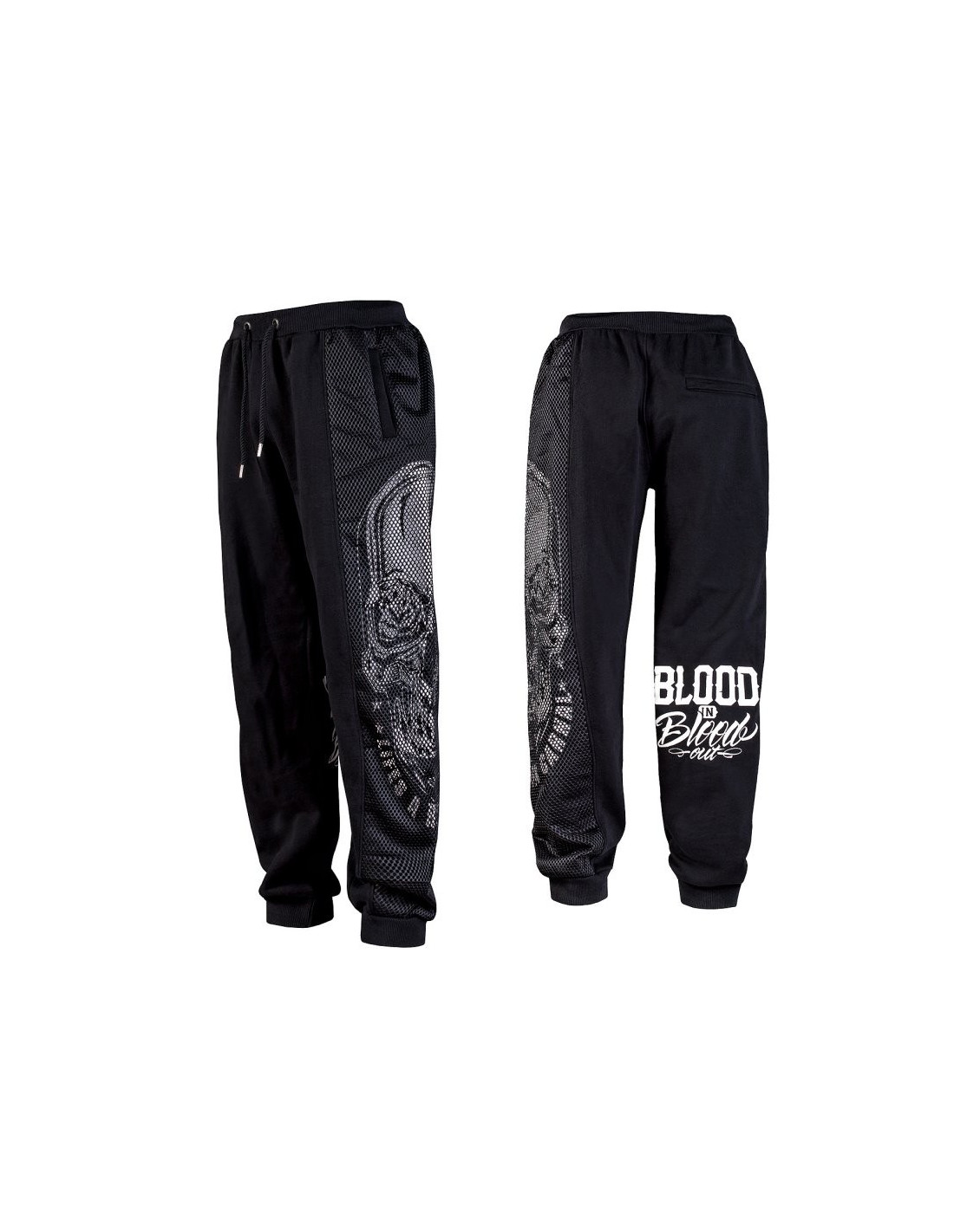 Coole sorte Sweatpants fra Blood in Blood out med stort skull print på venstre bukseben i. Blood In Blood Out er stilet og unik streetwear med stærk attitude.