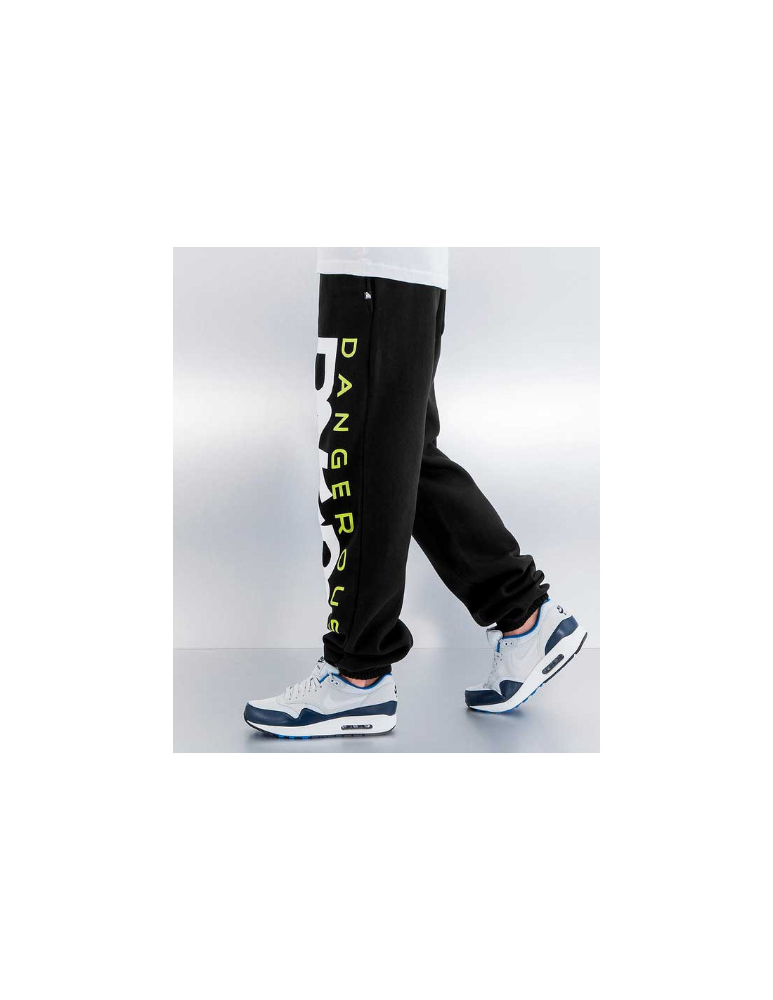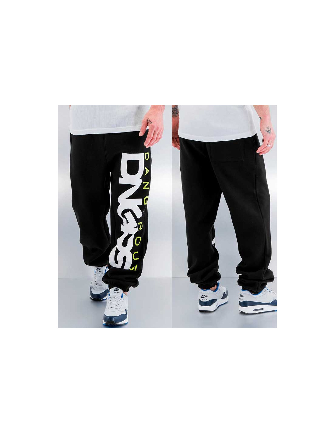Coole sorte Sweatpants fra DGNRS med stort hvidt og grønt brand logo. Super behagelig pasform.