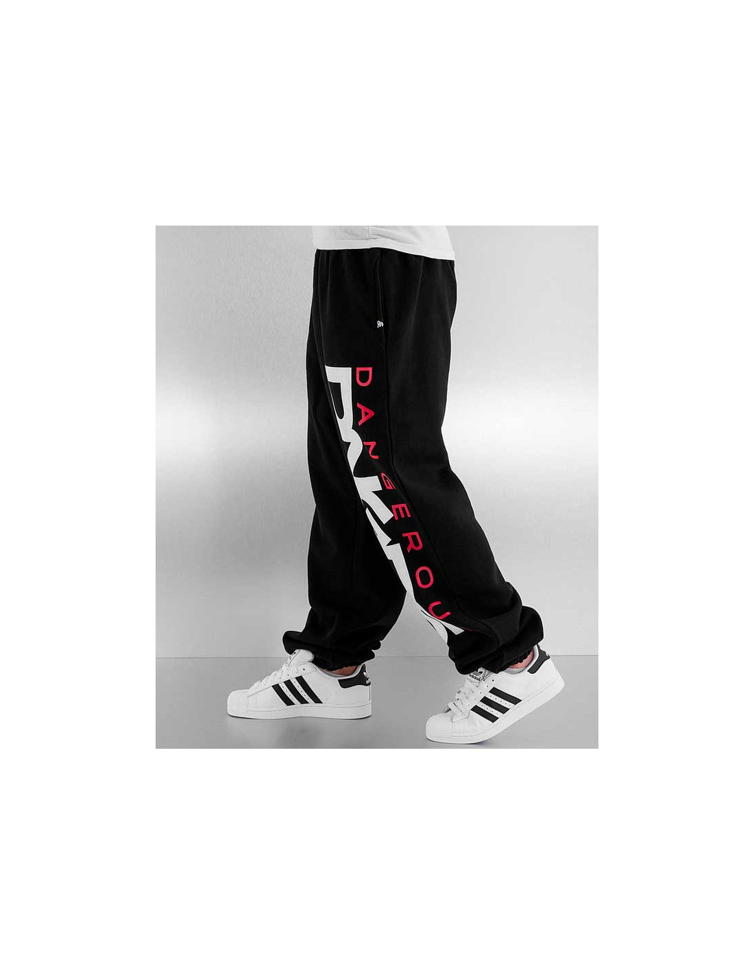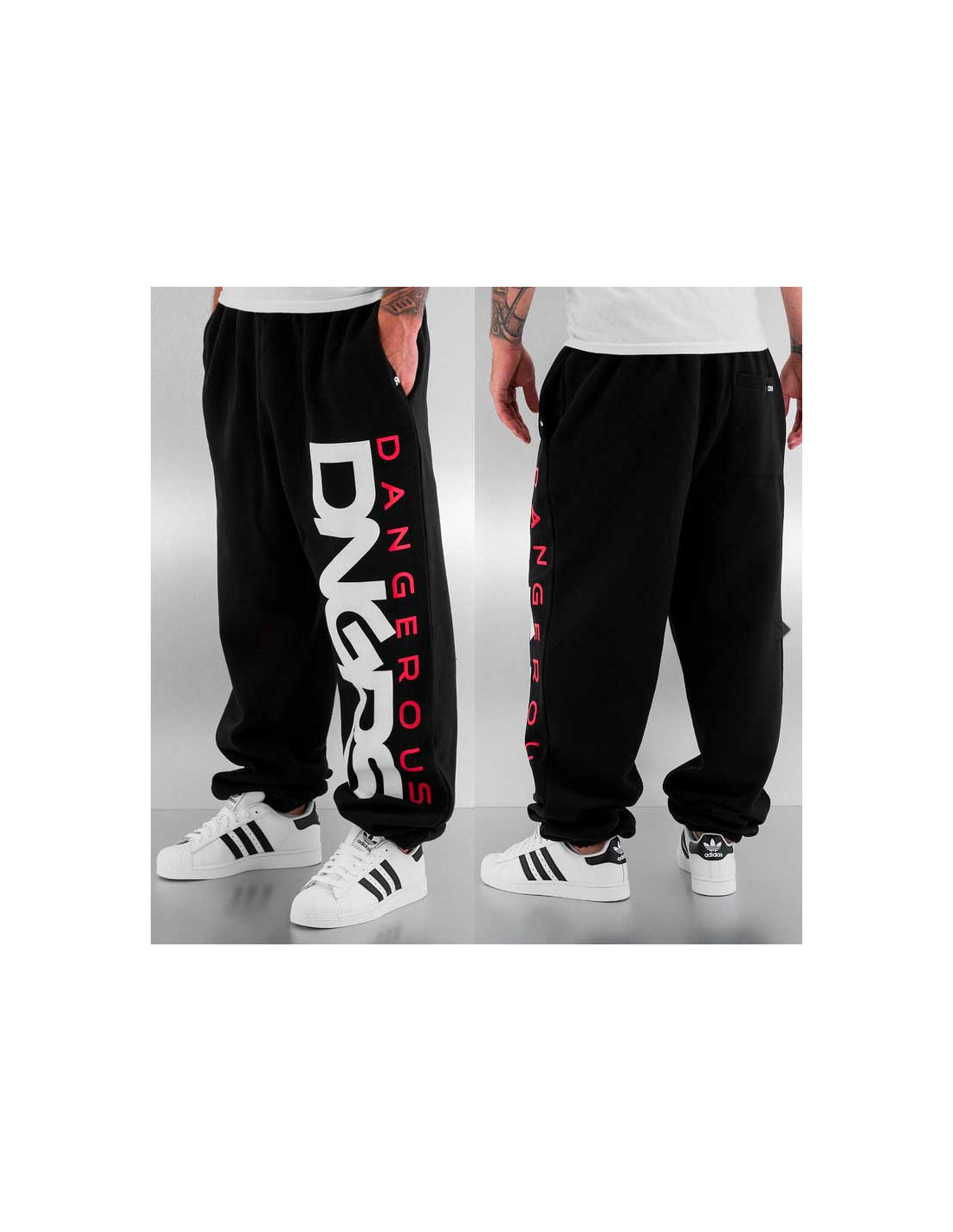 Coole sorte Sweatpants fra DGNRS med stort hvidt og rødt brand logo. Super behagelig pasform.