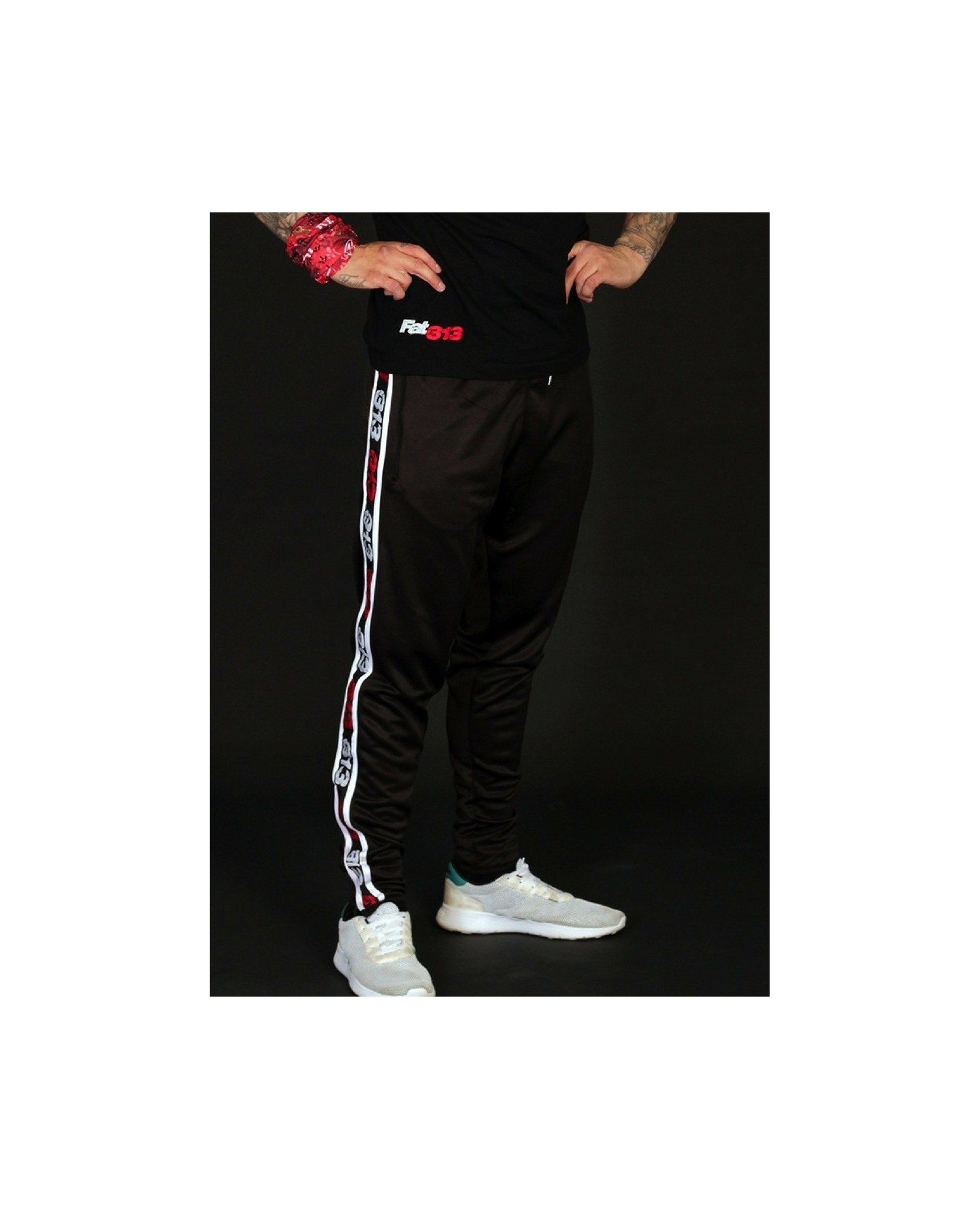 Sådan! Premium Fashion brandet FAT313 åbner ENDURANCE linjen, som er en stærk og sporty streetwear linje. Endurance linjen udfolder sig i det spændende grænseland mellem fashion streetwear og sportswear. Endurance er perfekt til at udforske og nyde det urbane byliv og til streetsport eller i studiet. Endurance Track Pants er sorte med en rød/hvid vævet 313 stribe ned langs begge ydersider, som giver et trendy og brand unikt design. Der er 2 lynlåslommer foran og lynlås ved anklerne. Pasformen er lige dele hamrende sporty og behagelig. Bukserne er lette og lavet i 100% polyester Speedo. FAT313 Endurance Track Pants findes også i sort med en hvid vævet stribe og en gul/hvid vævet stribe.