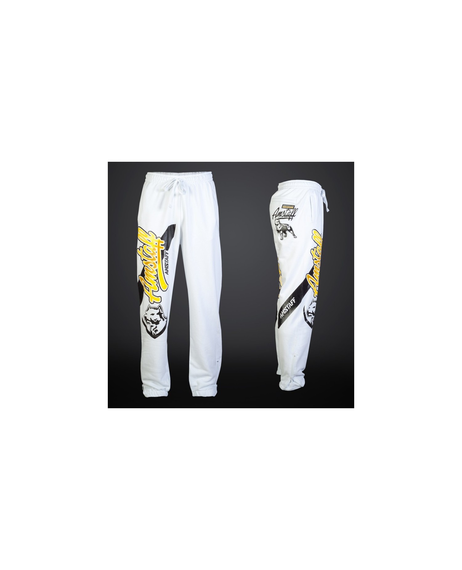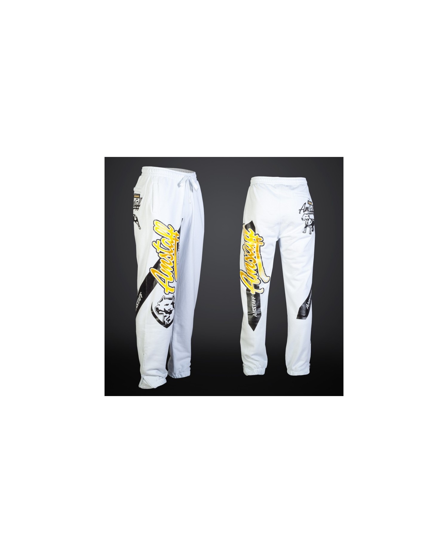Iøjnefaldende og sporty hvide Sweatpants fra Amstaff med cool brandlogo og praktisk lynlåsbaglomme.