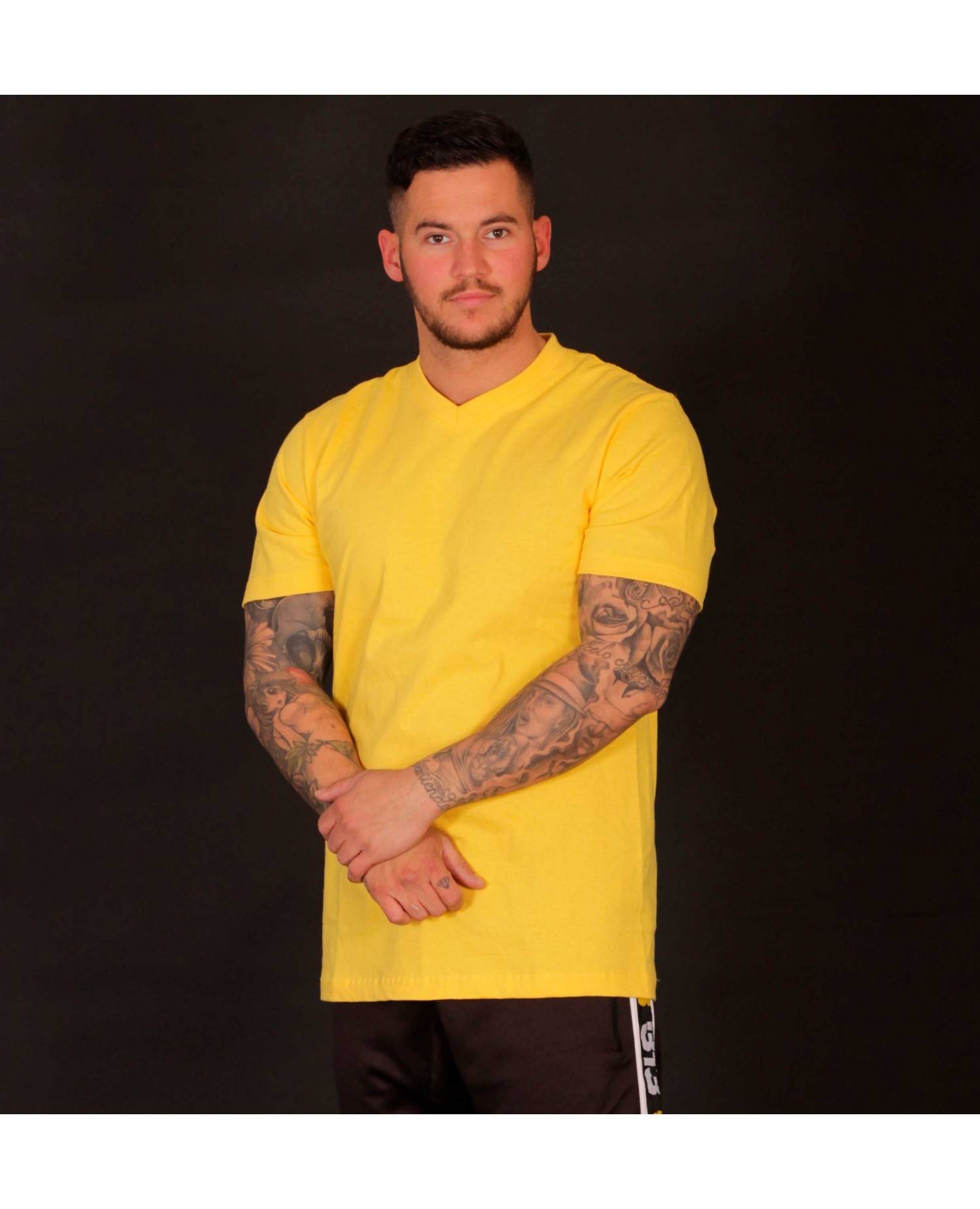 Basic sværvægts, gul V-Neck T-Shirt fra det amerikanske streetwear brand Access Apparel. Pasformen er regular fit.