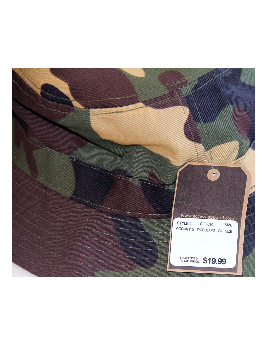 Fed Woodland Camo Bucket fra US mærket Access Apparel. One-size.