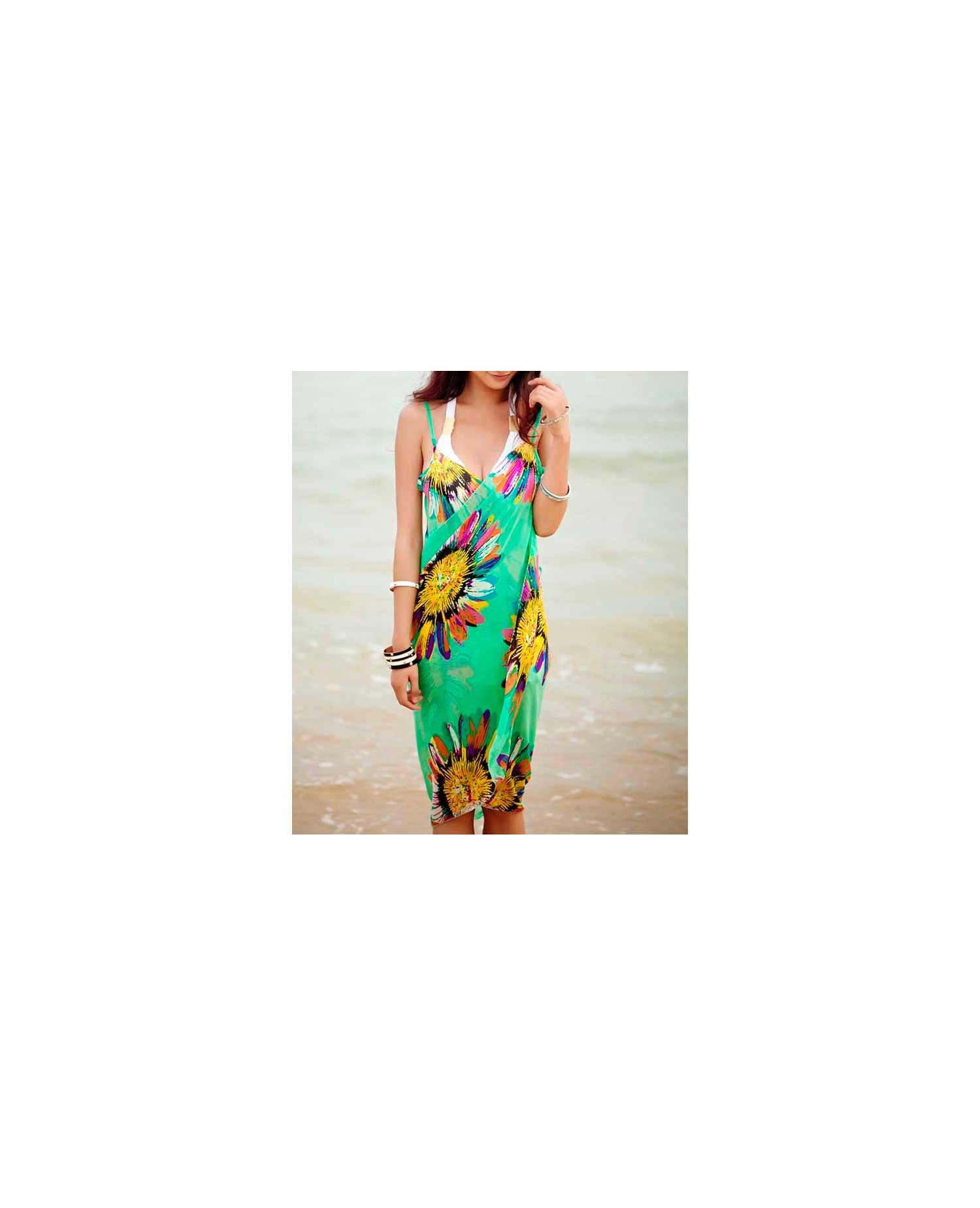 Florlet Beach Cover i grøn med store flerfarvede blomster. Sommerligt, praktisk og smukt. OneSize.