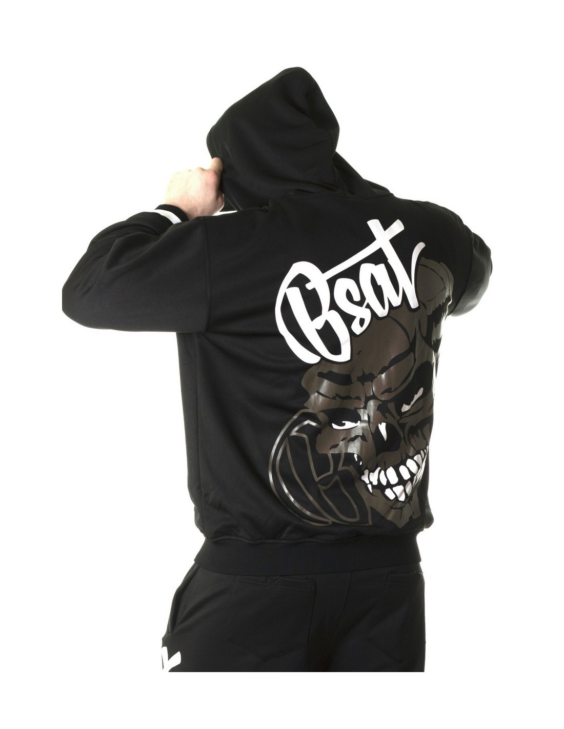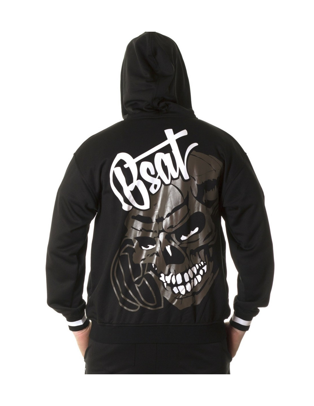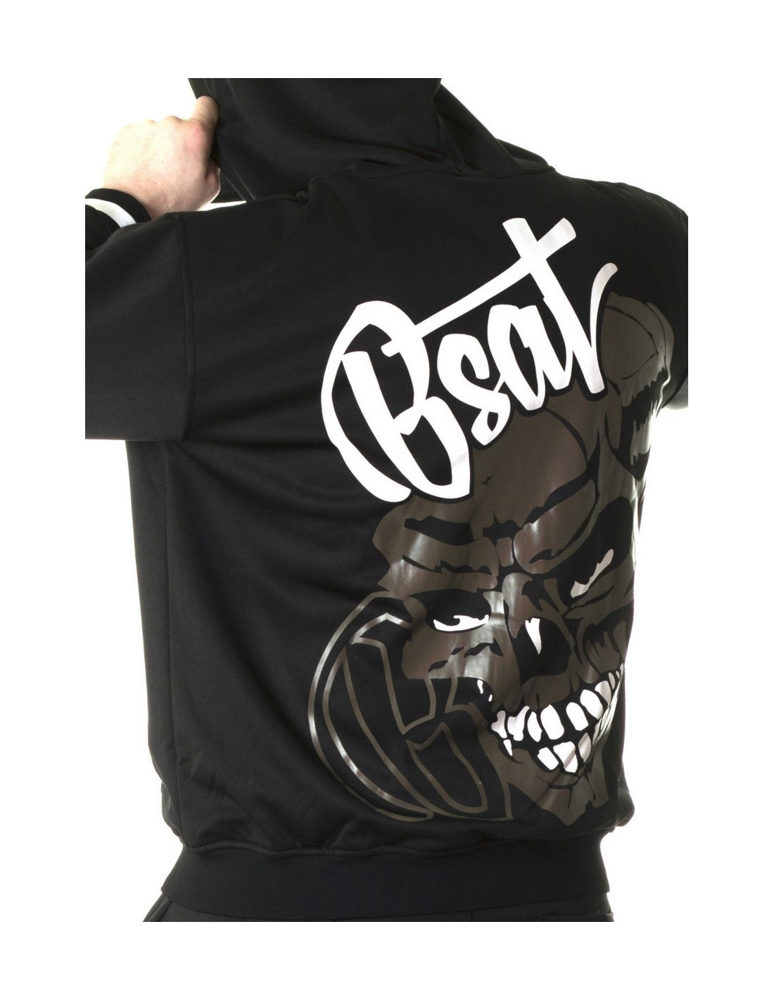 BSAT Dominator Skull designet har et stærkt farvet skull motiv, som troner på hele ryggen. Hoodien har stribede ribkante på ærmerne, som farvemæssigt matcher skull motivet. Ribkanten forneden er holdt i sort. BSAT er et hip-hop og Urban Art streetwear mærke, som især er slået igennem med originale skull produkter og usædvanige chica designs. Dominator Skull er klar til at kræve sin plads blandt de populære BSAT designs.