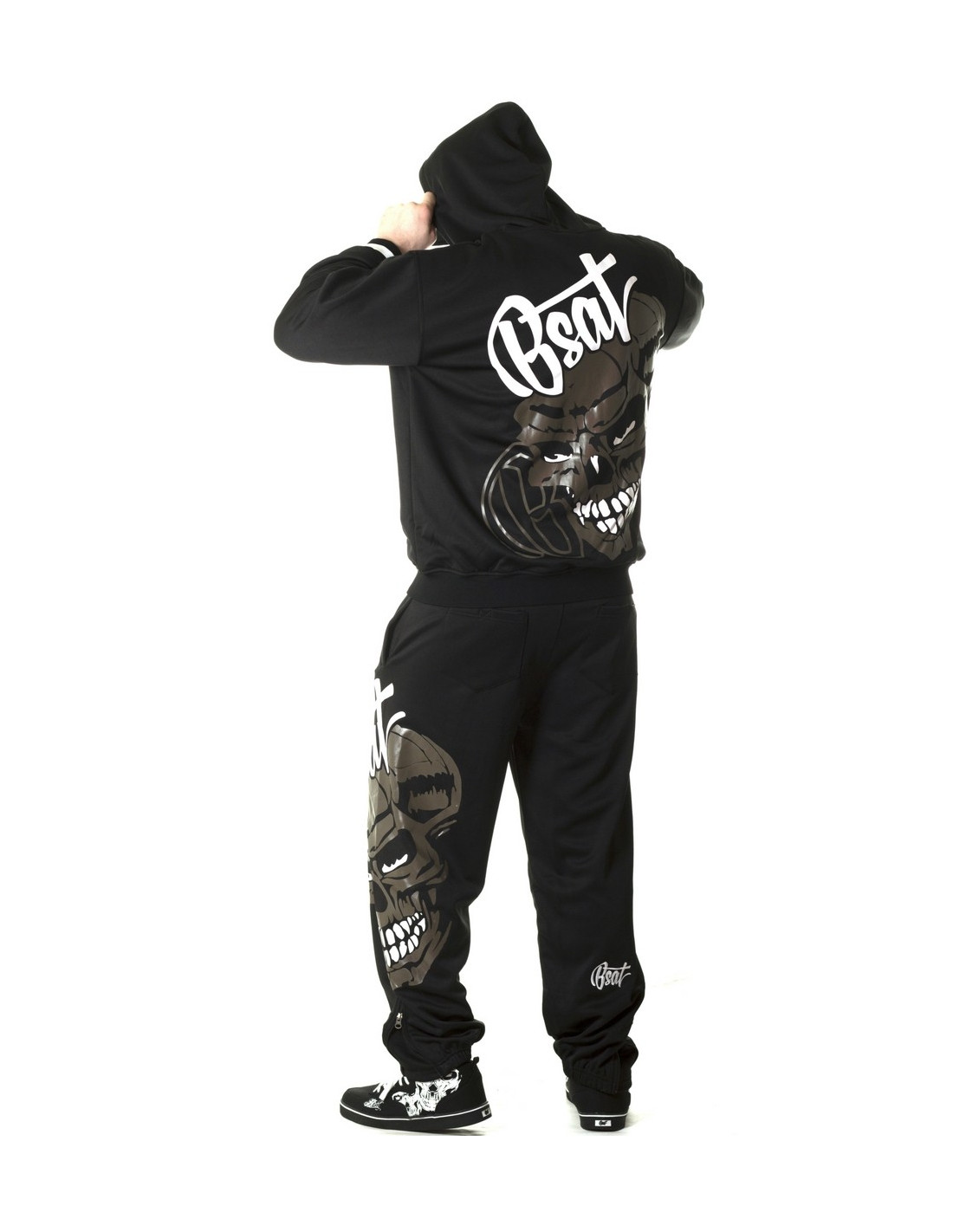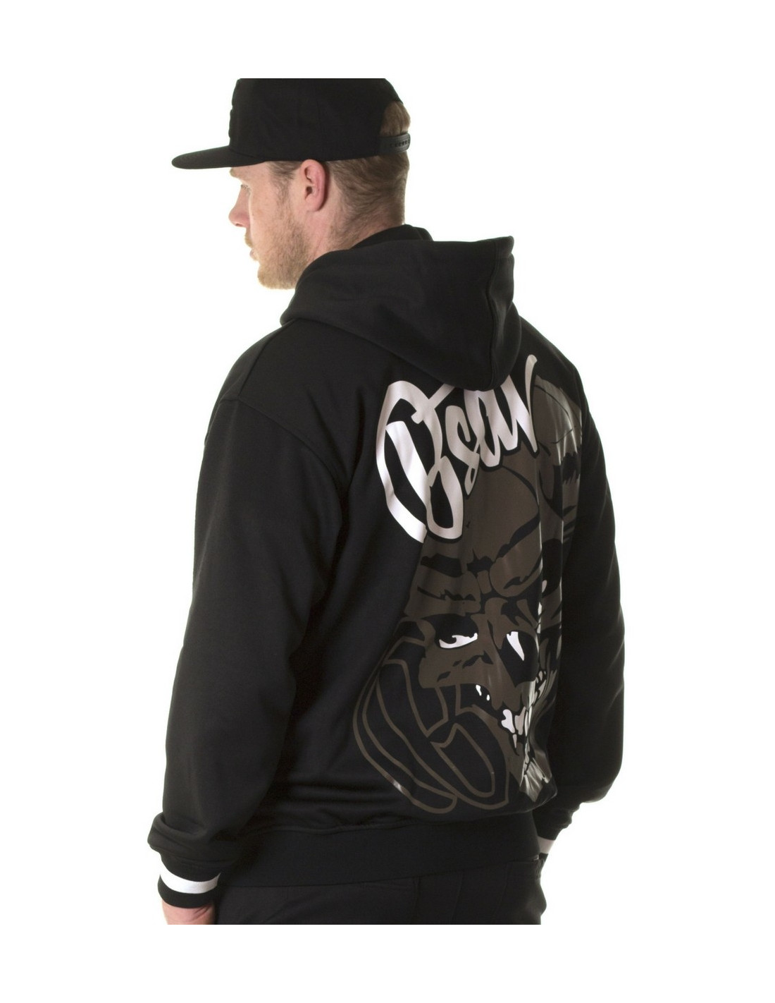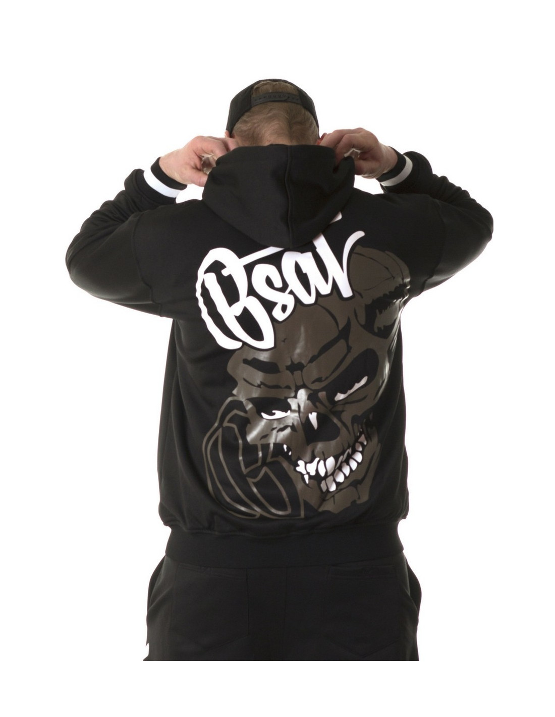 BSAT Dominator Skull designet har et stærkt farvet skull motiv, som troner på hele ryggen. Hoodien har stribede ribkante på ærmerne, som farvemæssigt matcher skull motivet. Ribkanten forneden er holdt i sort. BSAT er et hip-hop og Urban Art streetwear mærke, som især er slået igennem med originale skull produkter og usædvanige chica designs. Dominator Skull er klar til at kræve sin plads blandt de populære BSAT designs.