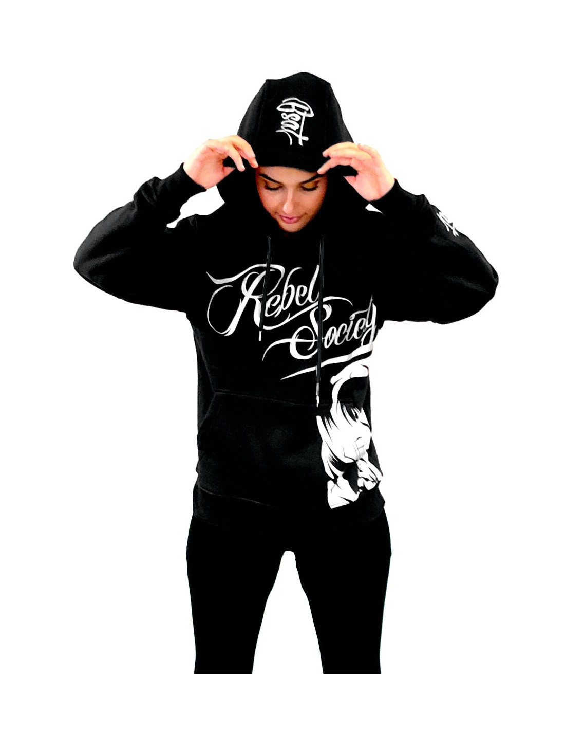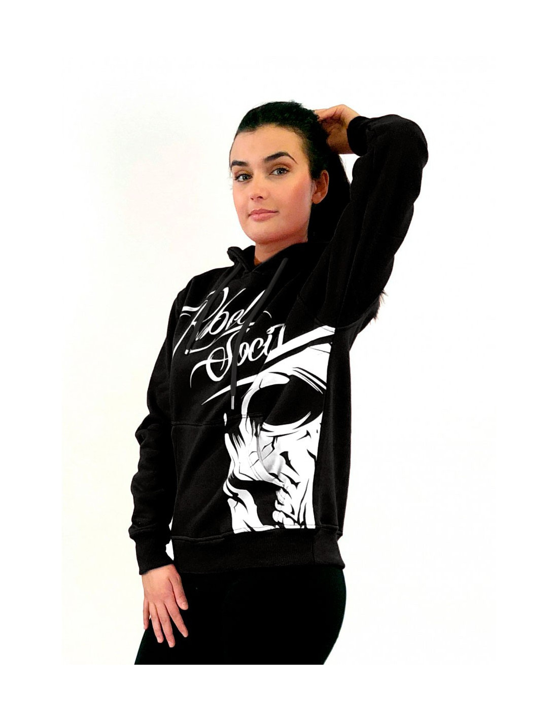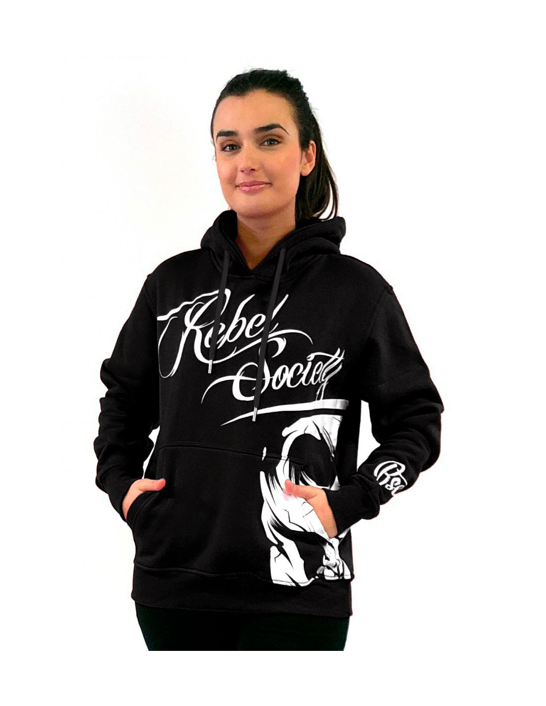 Den blå Rebel Society Skull Hoodie er fra BSAT. Rebel Society er skrevet med en hvid kunstnerisk skrift oven over BSAT's vanvittigt populære Cali Skull. Hoodien har en fed hætte med indvendig blå jersey inlining og BSAT brodering. Logoet er ligeledes broderet på højre underarm. Rebel Society er en stilet og lækker Hoodie til RebelBabes, som er vilde med SkullArt, BSAT og en urban livsstil.