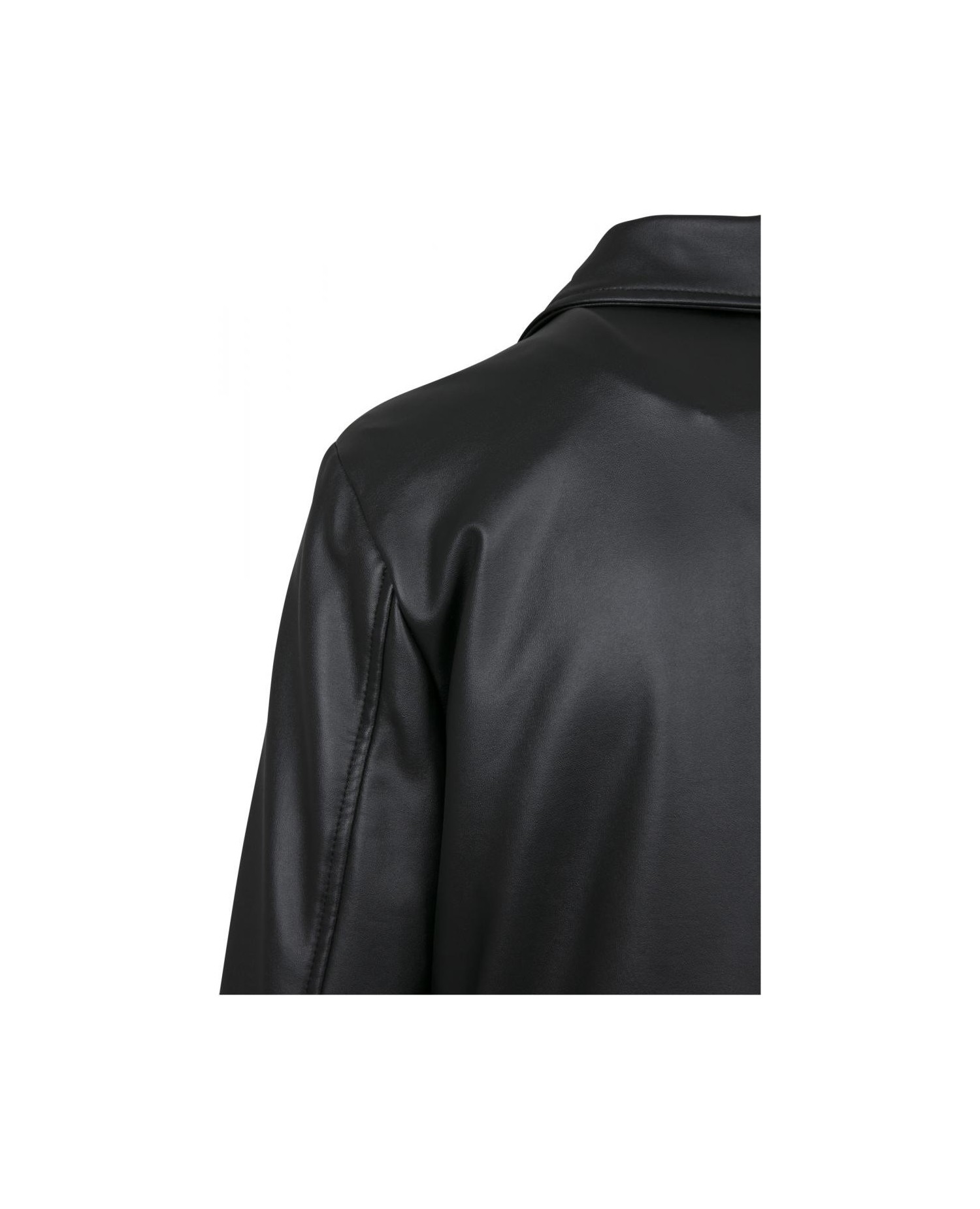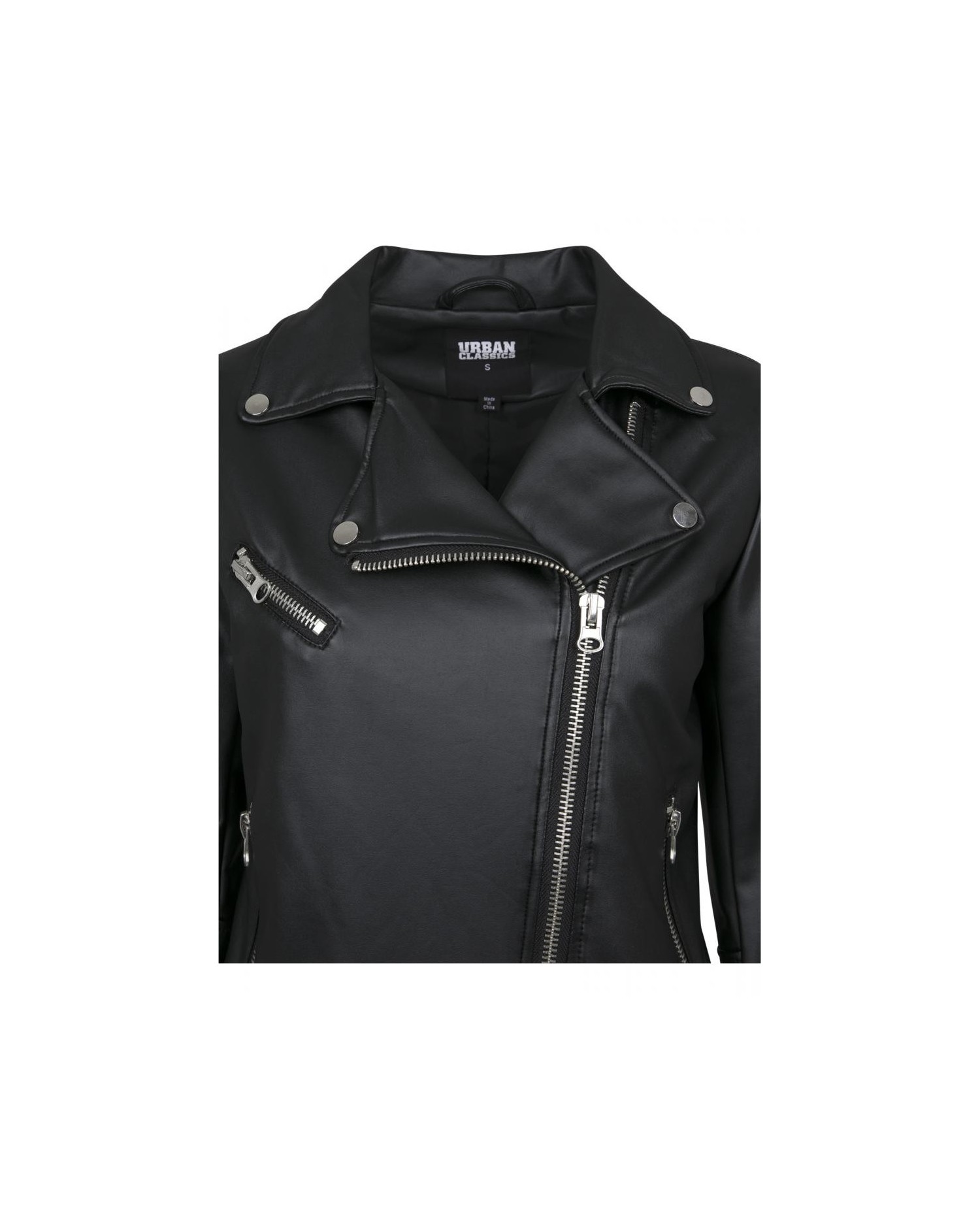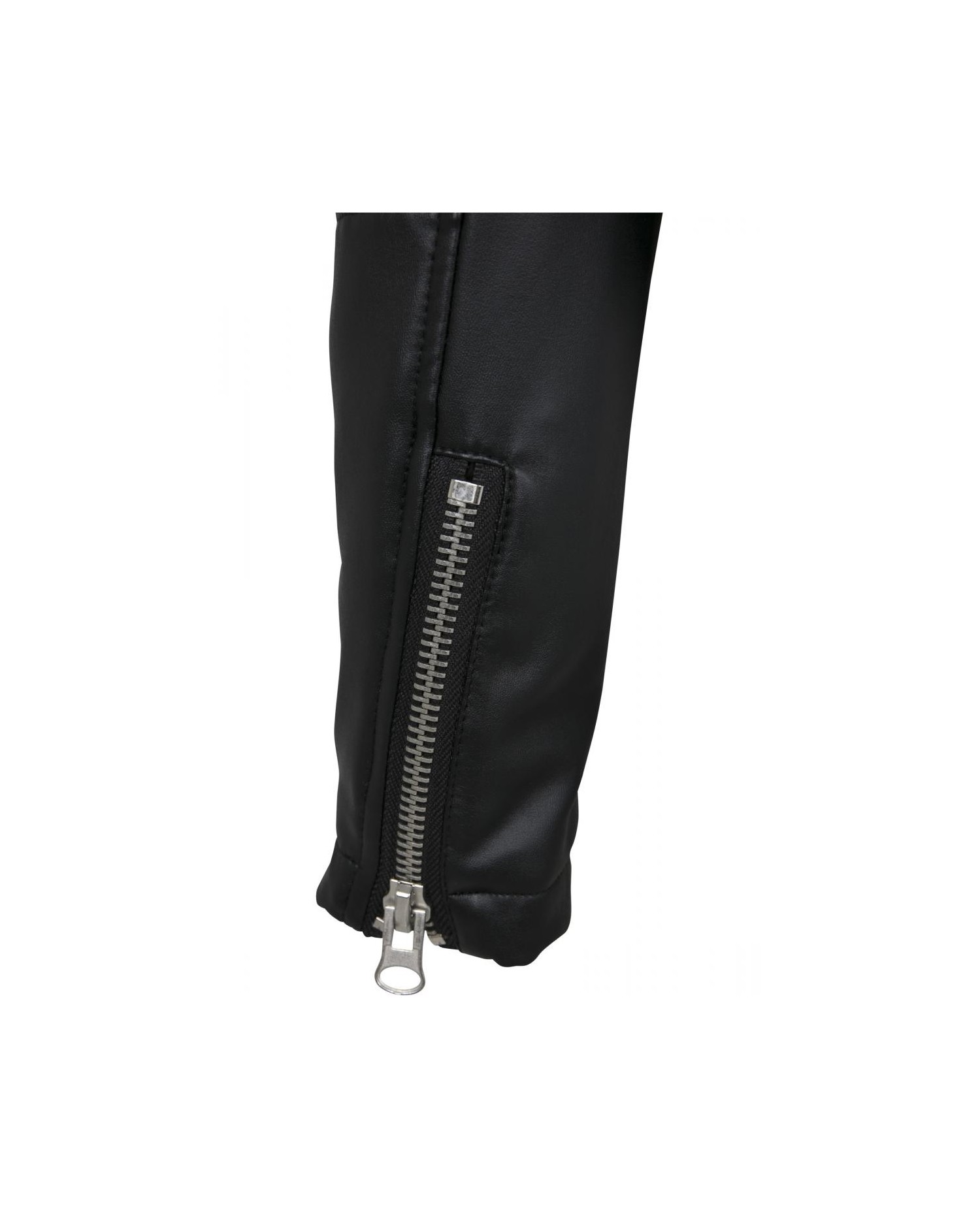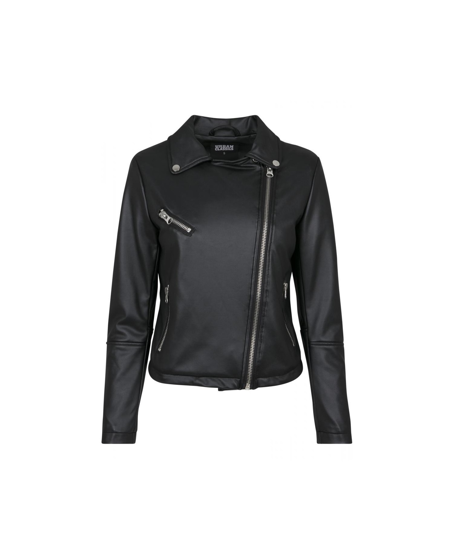 Kort rå Biker Jacket med solide lynlåse i sort kunstlæder. #RockOn. Jakken er fra Urban Classics.