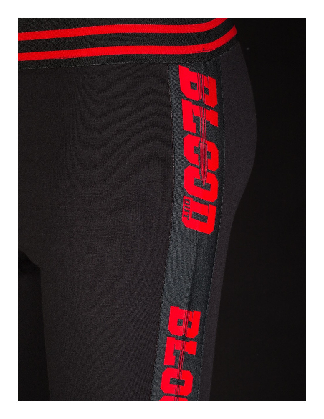 Coole sorte leggings til en urban livsstil med en flot brandlogo stribe i blodrød farve ned af begge ben. De er behagelig at have på og har et sporty look, hvilket understøtttes af de sort/røde striber i taljen. Leggings er fra Blood In Blood Out. Blood In Blood Out er et rebel streetwear brand opkaldt efter kultfilmen af samme navn. Filmen handler om blodsbrødre fra gruppen Vatos Locos og bygger på virkelige begivenheder i digteren Jimmy Santiago Baca’s liv. Filmen fik premiere i USA i 1993 og fik verdensomstændende succes og inspirerede urban kulturen på mange måder. Tøjmærket Blood In Blood Out indfanger kultfilmens ånd. De direkte referancer til filmen brænder igennem. Brandets designs er unikke og blødende rå. Farveuniverset er overvejende holdt i sort, blodrødt og i grå nuancer. Materiale: 95% bomuld og 5% elastan.