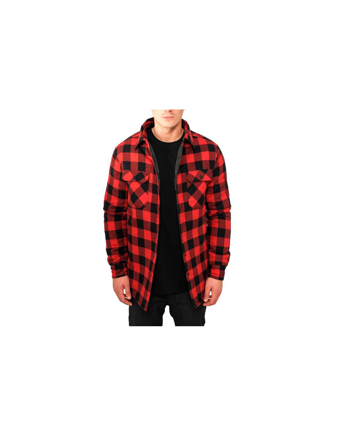Cool og street Jacket i sort og rød tern fra streetwear brandet Urban Classics. Den er sporty og behagelig i 100% bomuld flanell stof.