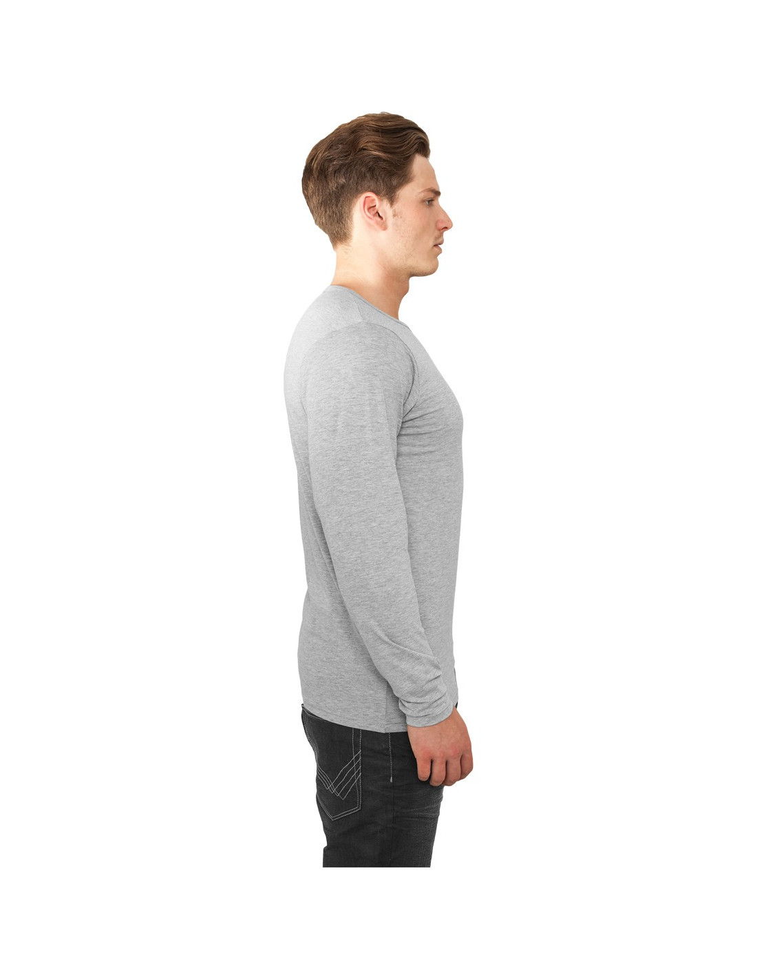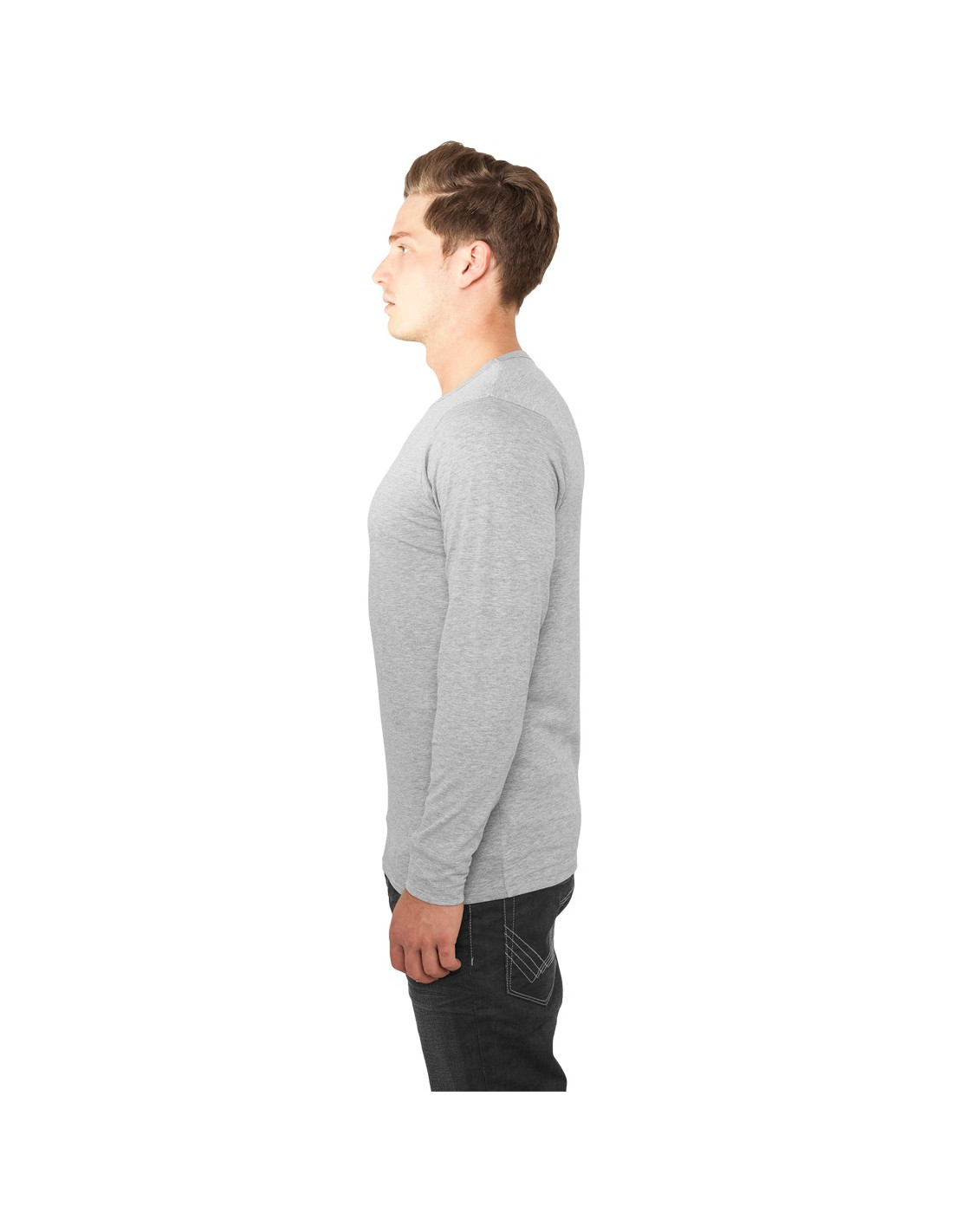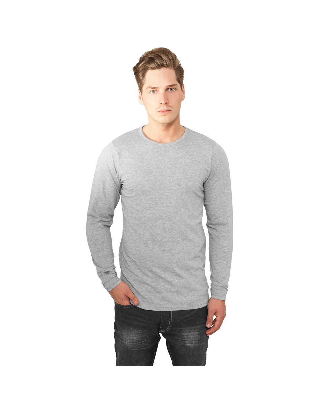 Langærmet fittet grå T-Shirt. Cool afslappet og stilet streetwear, super til både jeans og sweatpants.