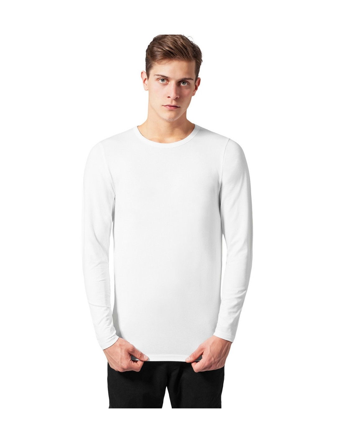 Langærmet fittet hvid TShirt fra det populære streetwear brand Urban Classics. Cool og stilet Tee, perfekt til både Jeans og Sweatpants.