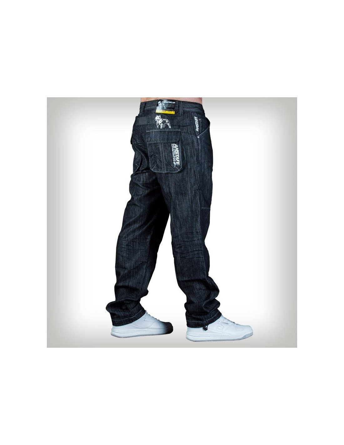 De sorte Loose Fit Jeans fra Amstaff er kort sagt et Scoop. Jeansene har lidt stretch og er derfor ekstra beghagelige at have på. Jeansene har et mega flot og gennemført stilet design med brandlogo og Amstaff hunden bagpå. Jeansene er seje med udsøgte detaljer som justerbare ankelelastikker og udsøgte detaljer helt ned til valg af træfsikre flotte syninger. I RudeCru har vi på fornemmelsen, at de her jeans kan blive lige så eftertragtede som Amstaff Sweat Pants. Det her er blæret, råt og supergodt.